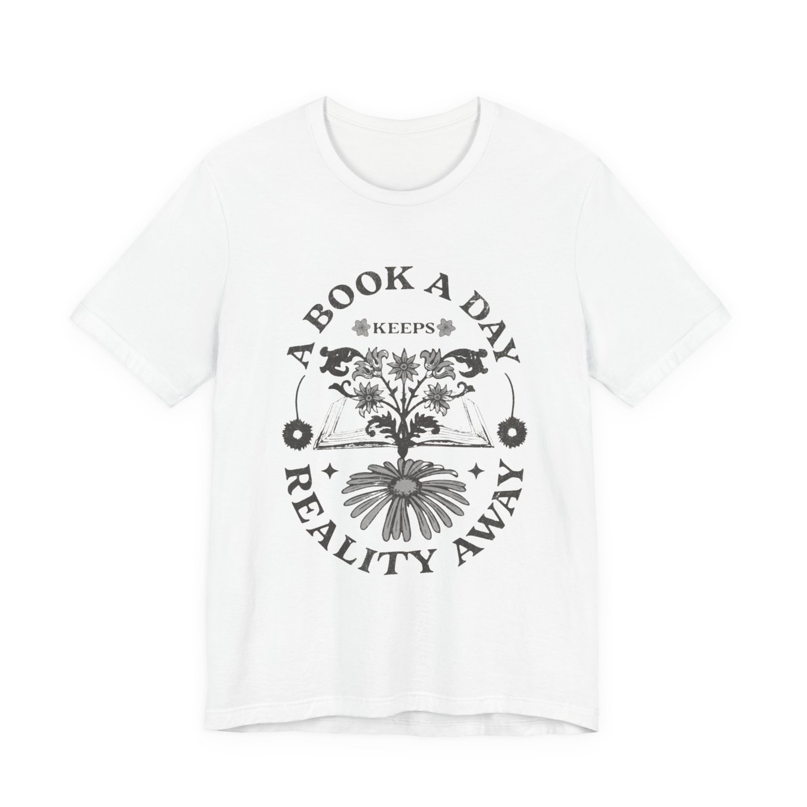 A Book A Day Keeps Reality Away T-Shirt | Reading Floral Illustration