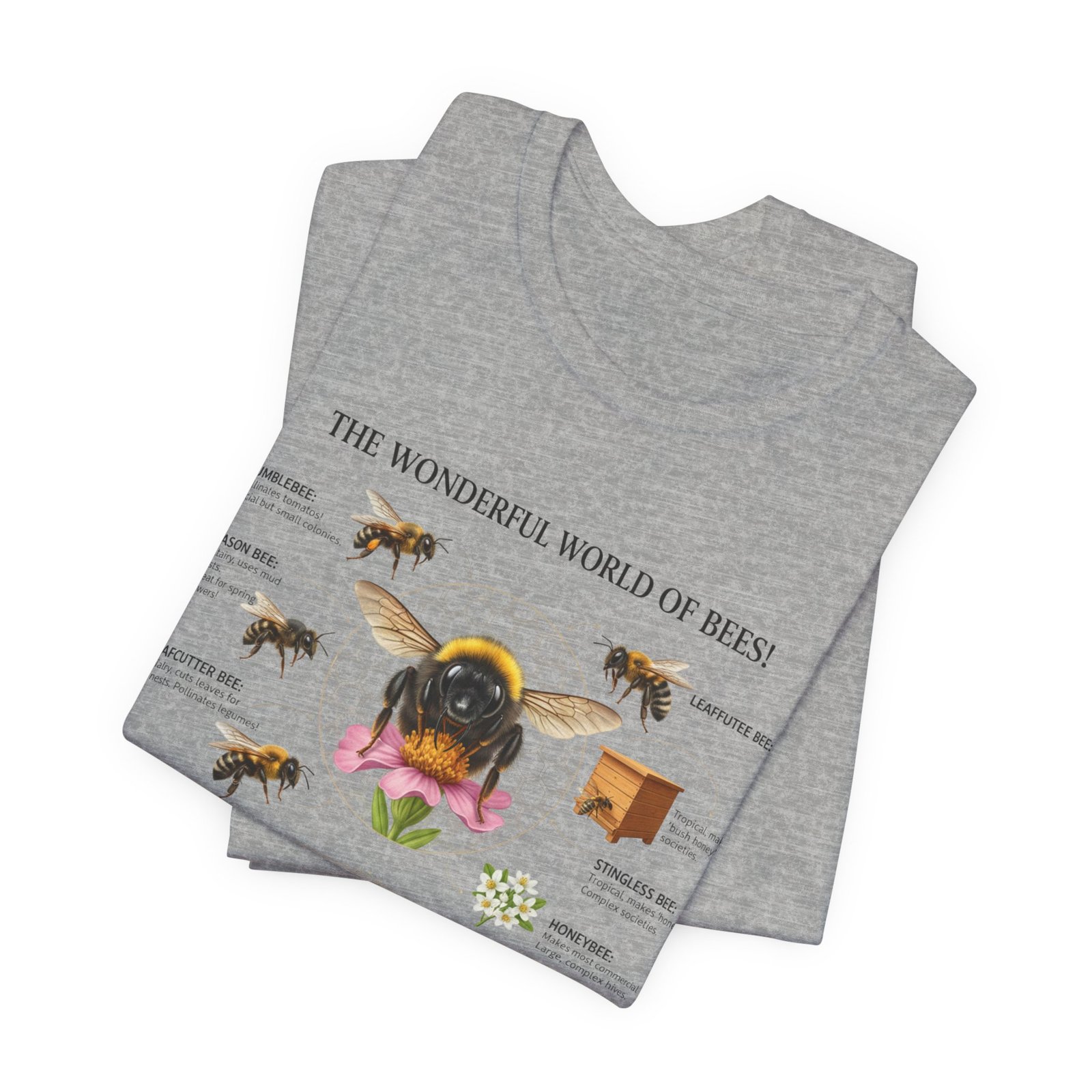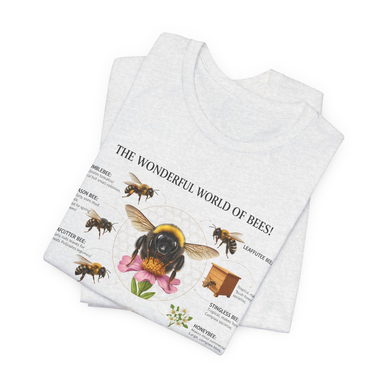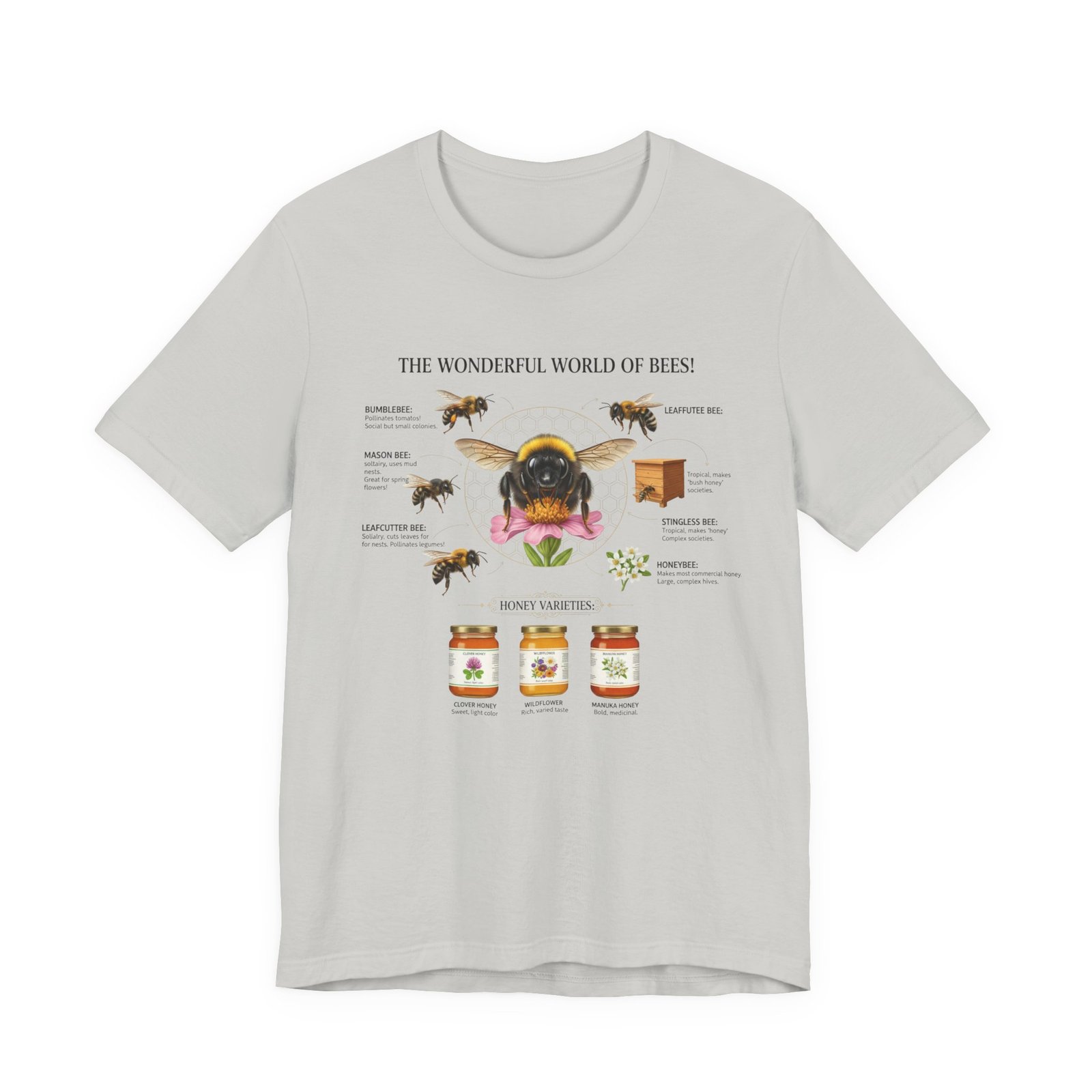 This lightweight tee brings the quiet joy of backyard beekeeping into everyday wear. Soft, breathable cotton rests gently against the skin while a beautifully detailed bee chart sits at the chest — labeled sketches of worker, queen, drone, hive parts and honey jars that invite a closer look. It feels like a warm morning among wildflowers: curious, informed, and quietly proud. Wear it on garden mornings, at farmers’ markets, or during informal meetups with other apiarists. The subtle retail fit and crew neckline make it easy to layer under a chore jacket or pair with jeans and boots for a casual, thoughtful outfit that shows you care about pollinators and craft honey. The artwork speaks the language of hobbyist beekeepers and nature lovers: botanical notes, hive anatomy, and honey varieties presented like a page from a field guide. It’s calm and conversational — wear it to seed swaps, observational hive inspections, or low-key community workshops where people trade tips and jars of seasonal honey. The tee’s responsibly produced fabric and tear-away label keep comfort high during long days outside, and the durable side seams and shoulder tape help it keep shape after repeated wear and washes. Product features – 100% Airlume combed ring-spun cotton (lightweight 4.2 oz) for breathable comfort – Side seams and shoulder tape preserve fit and structure over time – Ribbed knit collar with seam and retail crew neckline for a neat, classic look – DTF/DTG friendly print areas produce crisp, detailed chest and sleeve designs – Tear-away label, REACH certified; responsibly manufactured (Bella+Canvas supply chain) Care instructions – Machine wash: cold (max 30C or 90F) – Non-chlorine: bleach as needed – Tumble dry: low heat – Iron, steam or dry: medium heat – Do not dryclean