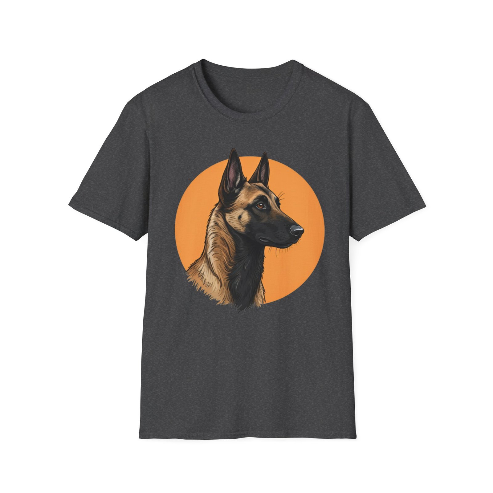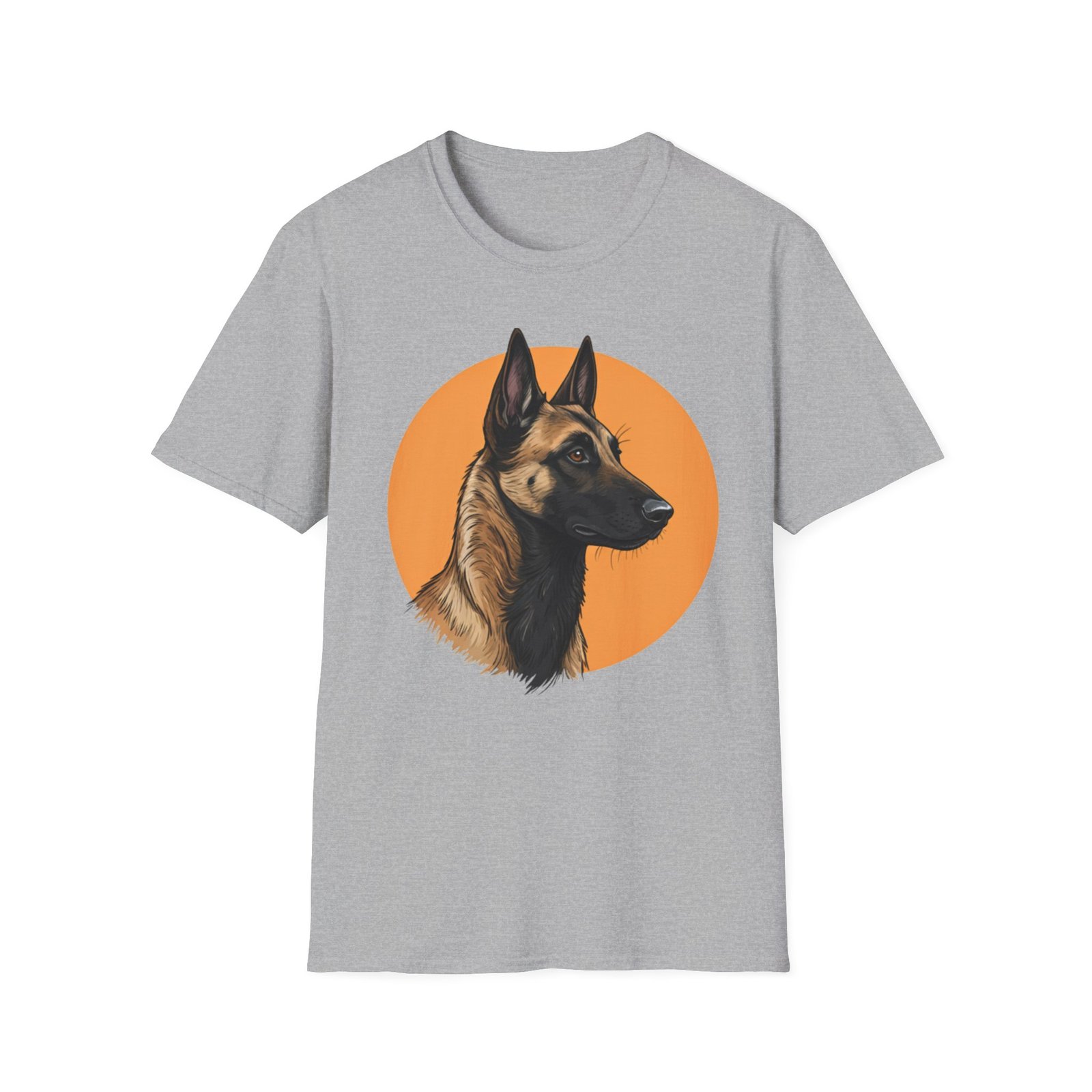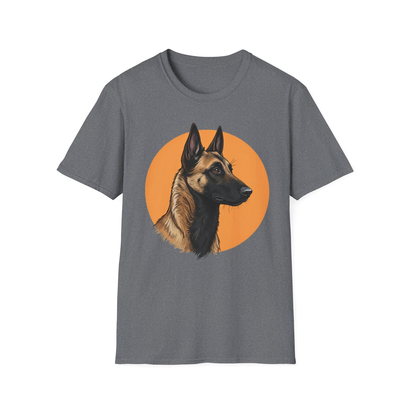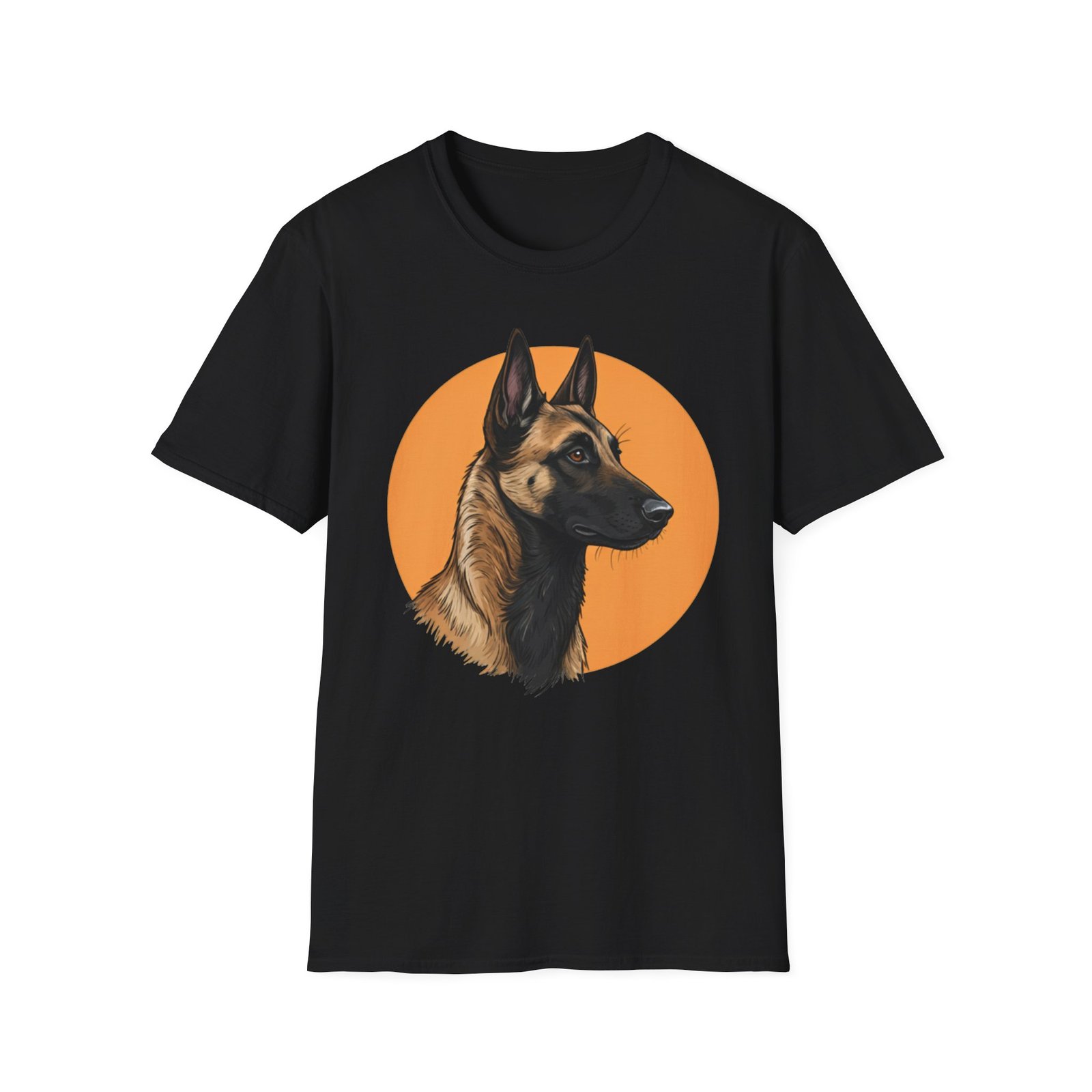 A unisex softstyle T-shirt featuring a profile image of a Belgian Malinois dog. The fabric is made from durable and smooth fibers, making it perfect for printing. This versatile shirt is perfect for adults and can be worn all year round, delivering a clean and versatile style for any occasion.