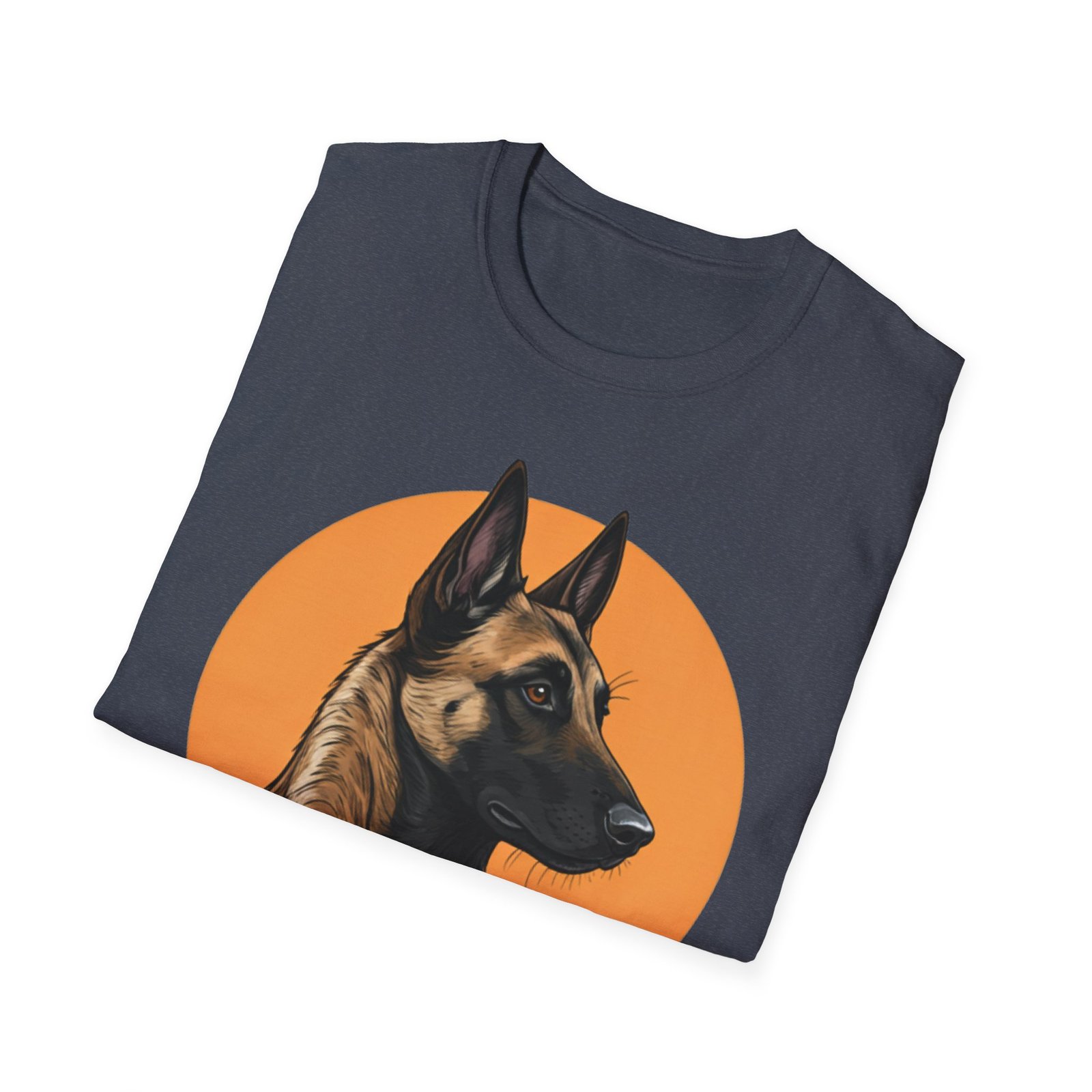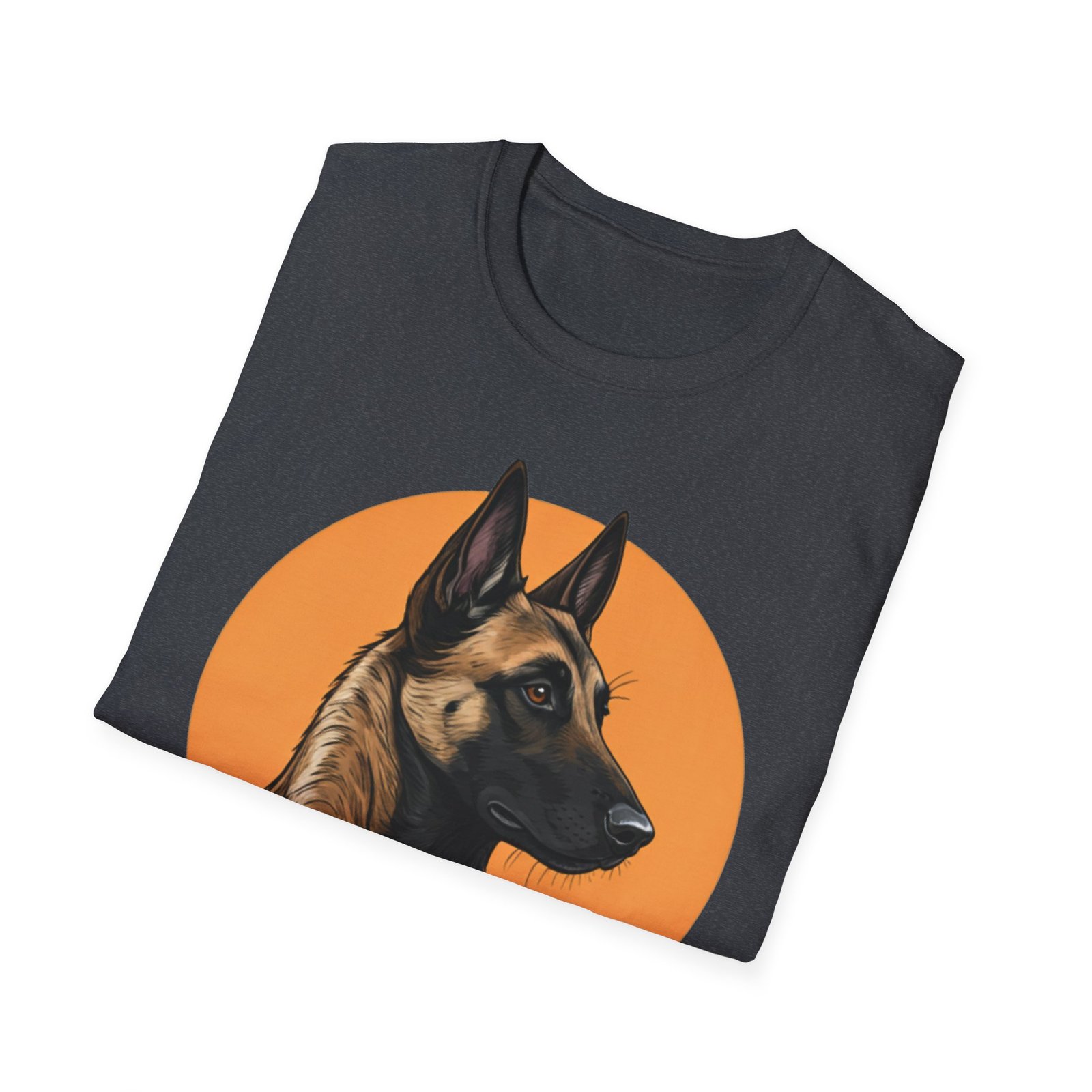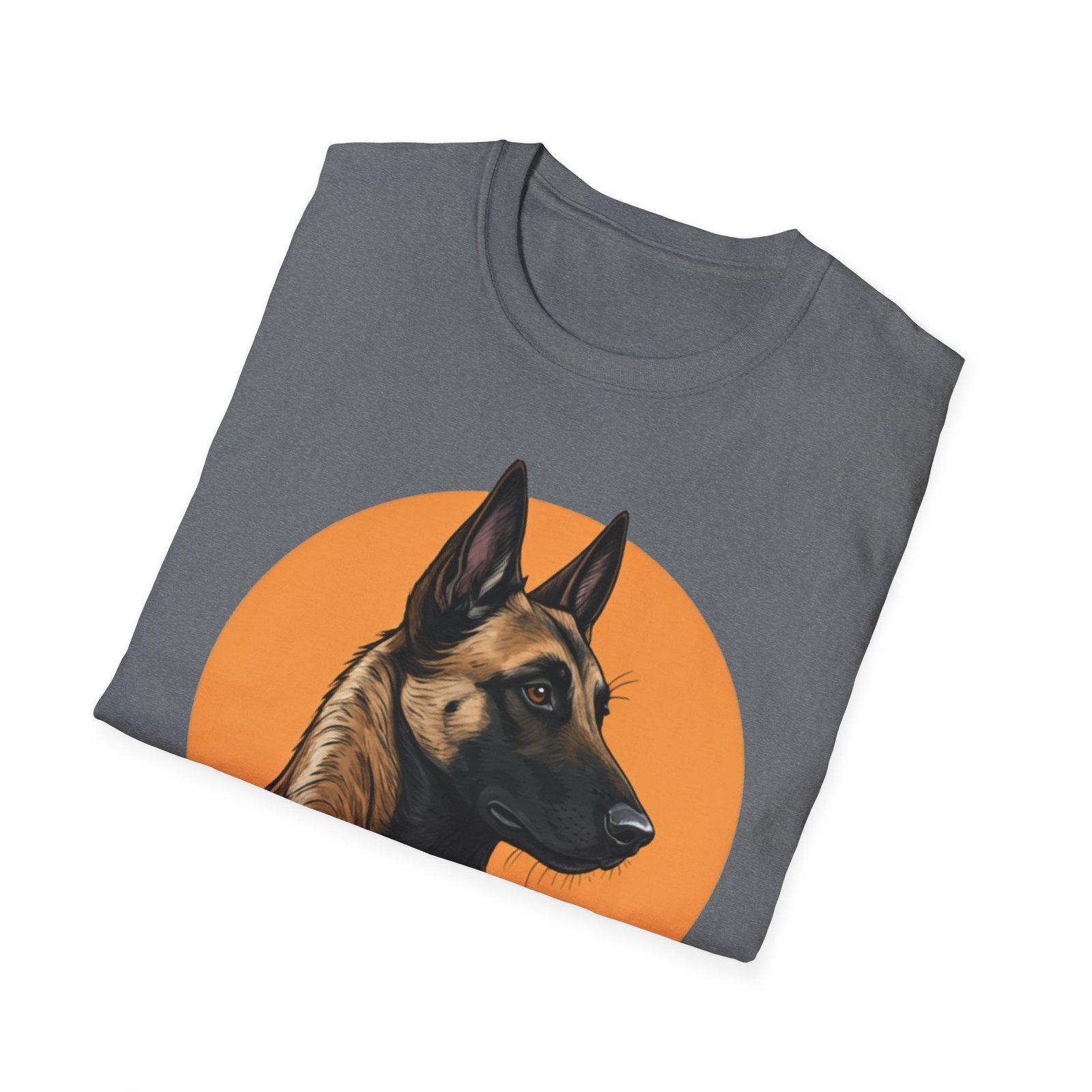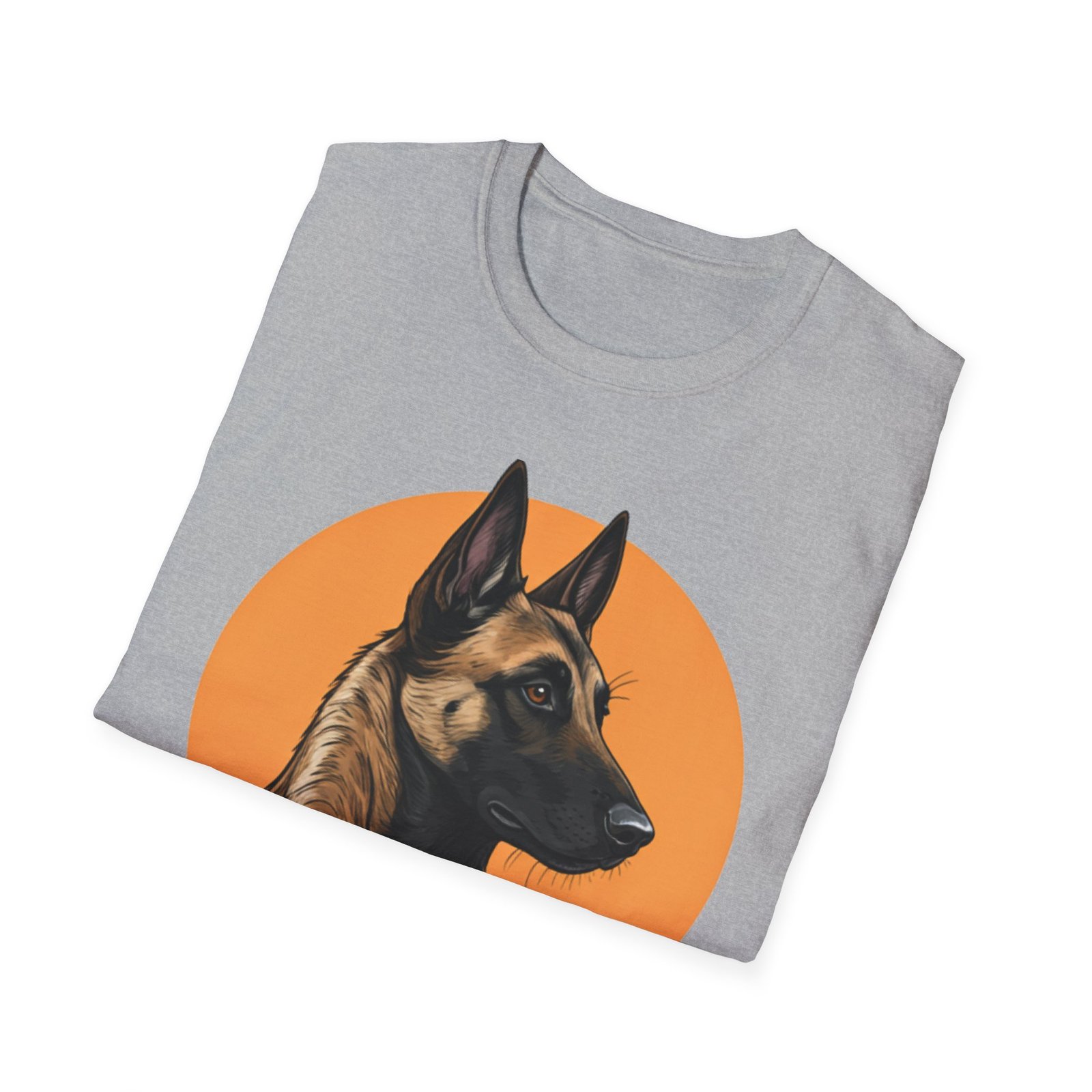 A unisex softstyle T-shirt featuring a profile image of a Belgian Malinois dog. The fabric is made from durable and smooth fibers, making it perfect for printing. This versatile shirt is perfect for adults and can be worn all year round, delivering a clean and versatile style for any occasion.