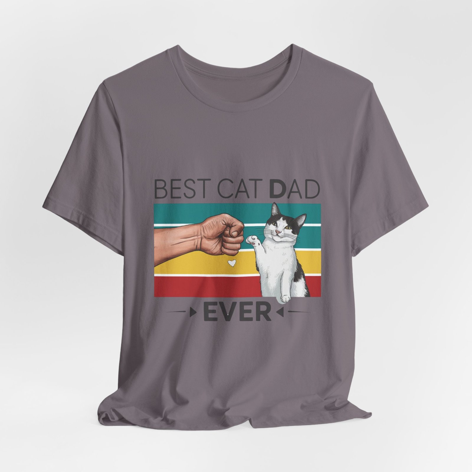Celebrate the special bond between a dad and his feline friend with this stylish Unisex Jersey Short Sleeve Tee. The vibrant design, featuring playful graphics, exudes a fun and lighthearted vibe, perfect for casual outings or relaxed days at home. Made with lightweight, breathable fabric, this tee is ideal for layering or wearing on its own. Whether you’re at a family gathering or simply enjoying a day out, this shirt offers both comfort and style. It’s the perfect gift for cat lovers, especially around Father’s Day, birthdays, or any occasion that celebrates the unique relationship between a cat dad and his furry companion.