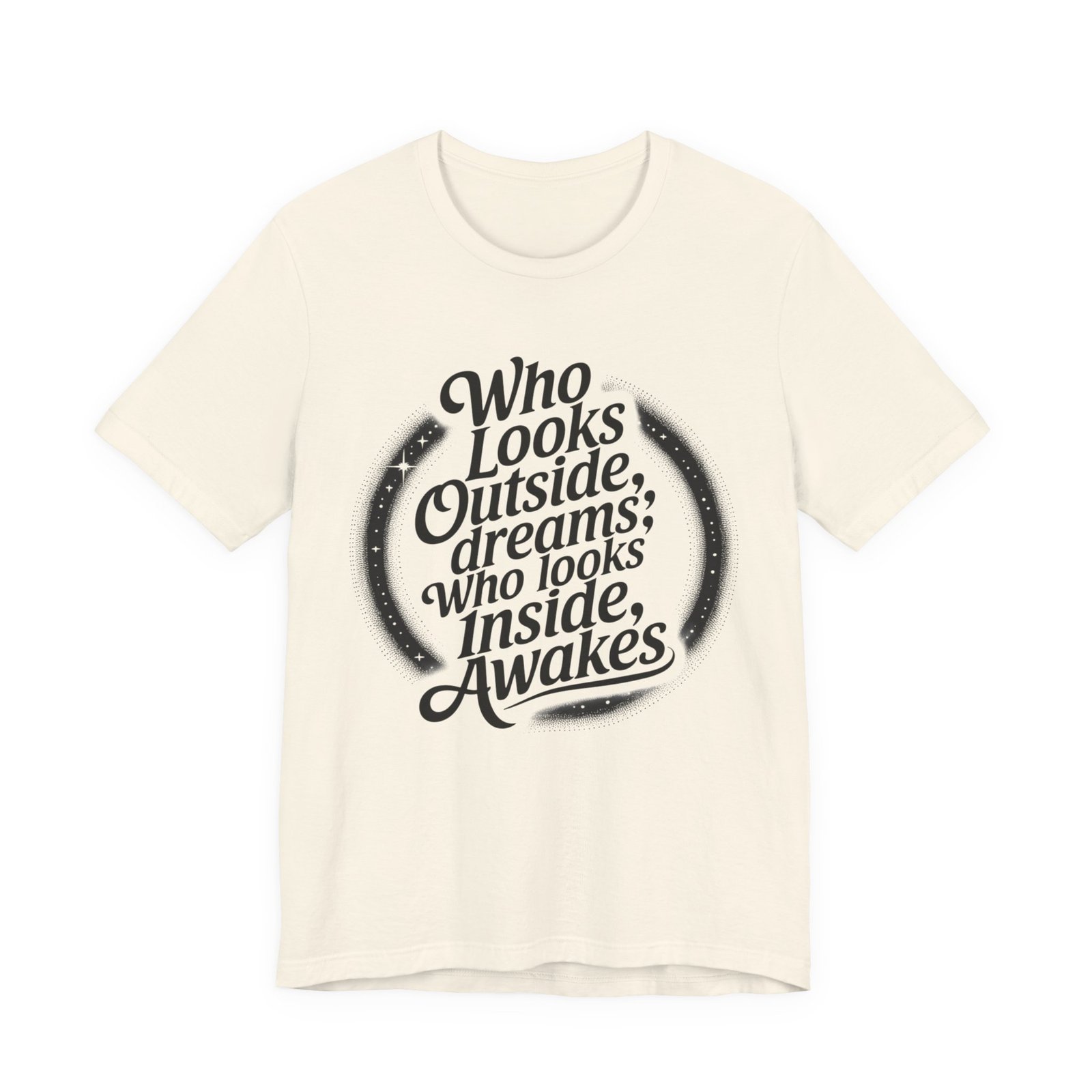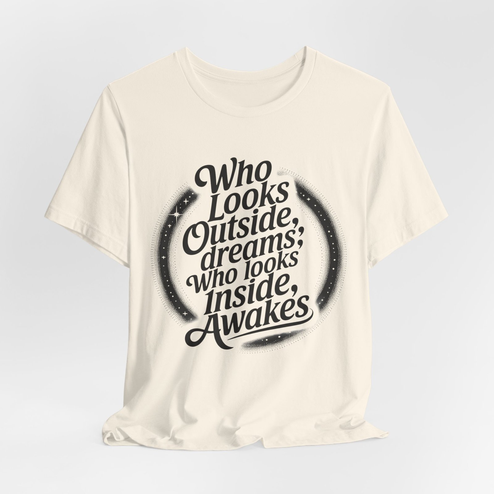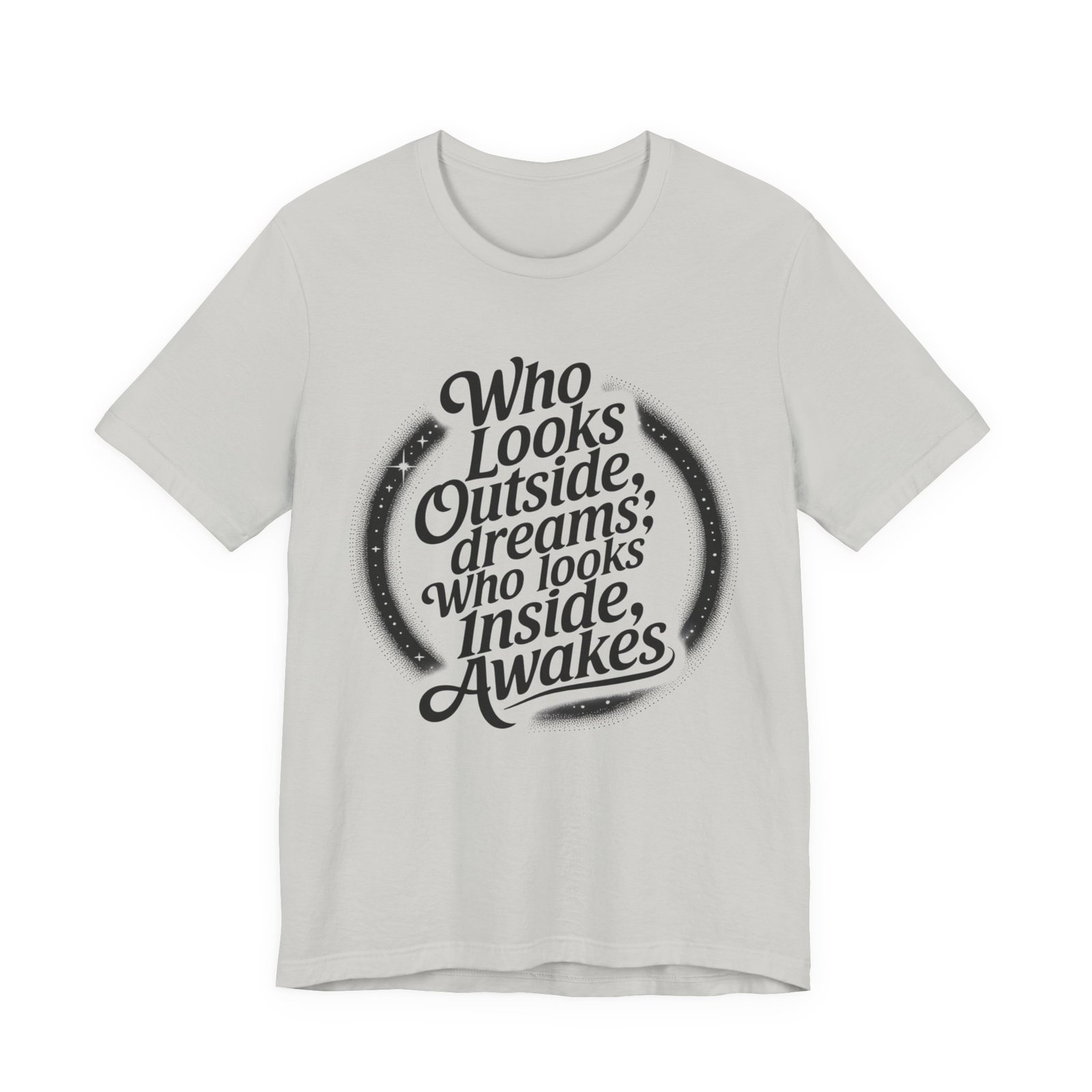 This lightweight jersey tee carries a quietly inspiring message for those who live between outward curiosity and inner reflection. The soft, breathable cotton feels gentle against the skin while the clean crew neckline and retail fit keep the silhouette casual and neat. A centered, typographic design—framed by a subtle circular motif—reads like a reminder to balance exploration with self-awareness, making this shirt a companion for long walks, late-night journaling, or slow mornings with coffee. Durable side seams, shoulder tape, and a ribbed collar help the tee keep its shape through repeated wear and washes. Thoughtfully manufactured and REACH certified, it suits someone who cares about comfort, craft, and small daily rituals that matter.