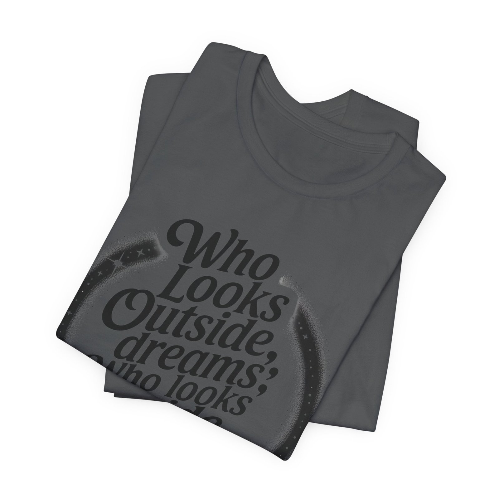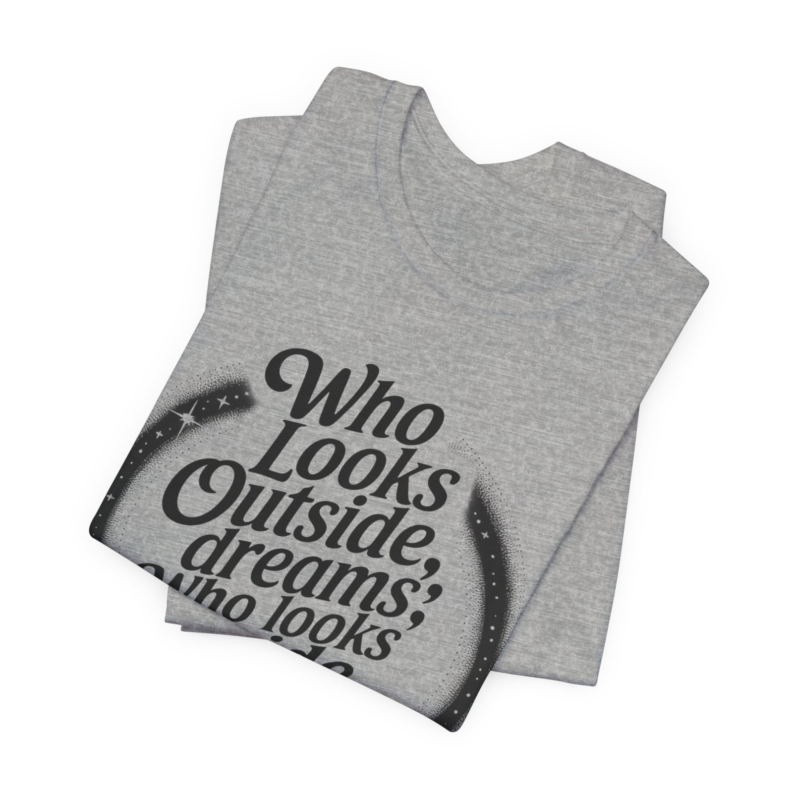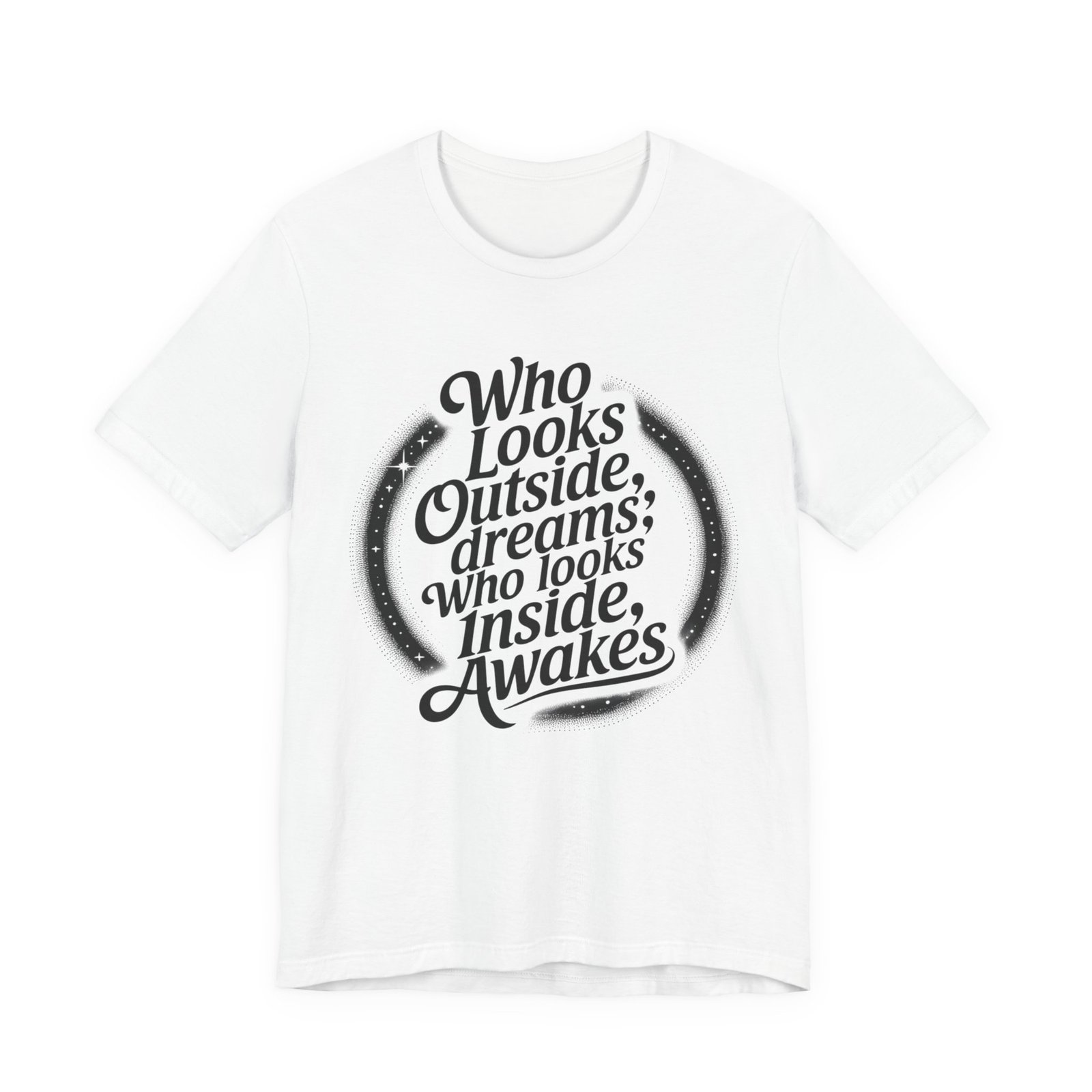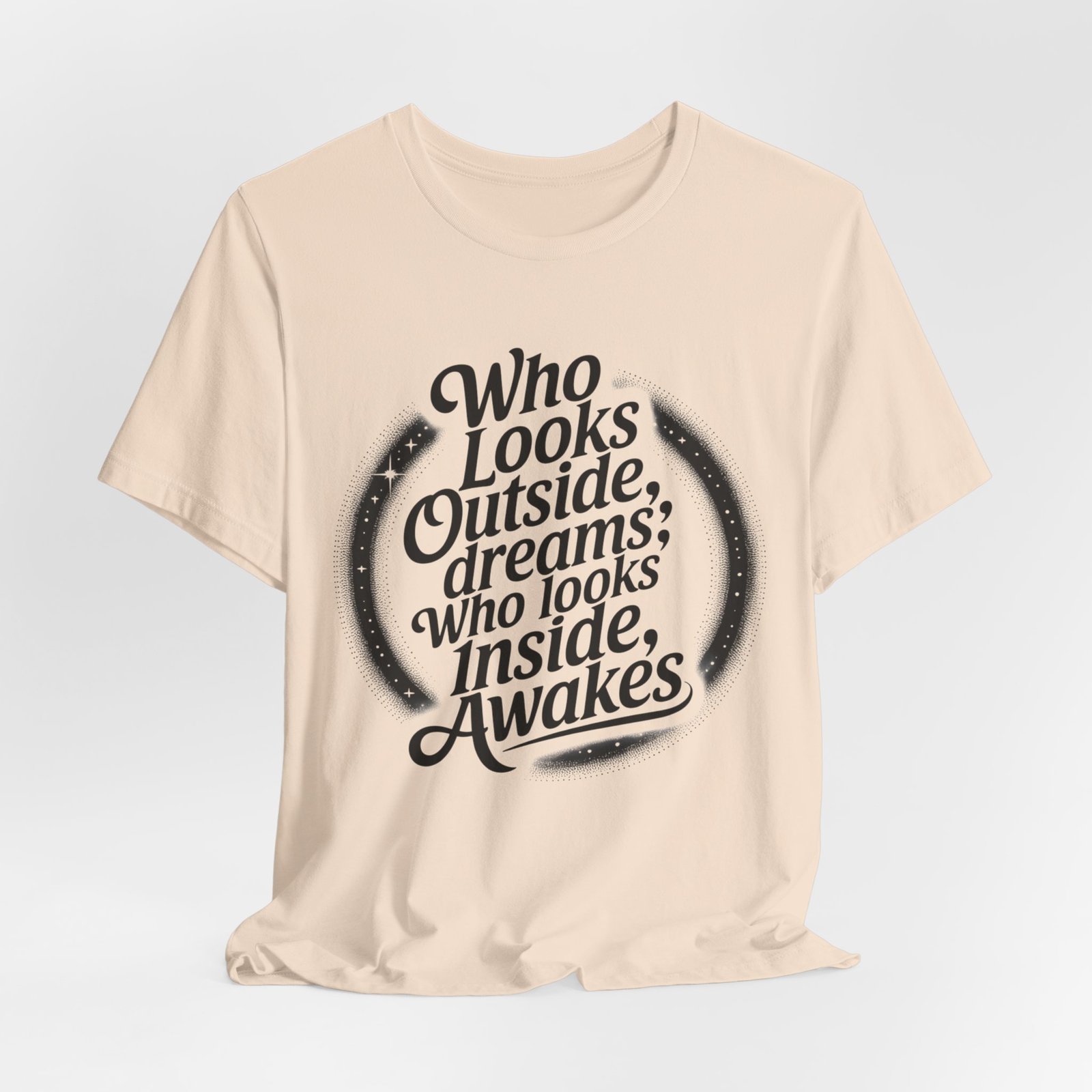 This lightweight jersey tee carries a quietly inspiring message for those who live between outward curiosity and inner reflection. The soft, breathable cotton feels gentle against the skin while the clean crew neckline and retail fit keep the silhouette casual and neat. A centered, typographic design—framed by a subtle circular motif—reads like a reminder to balance exploration with self-awareness, making this shirt a companion for long walks, late-night journaling, or slow mornings with coffee. Durable side seams, shoulder tape, and a ribbed collar help the tee keep its shape through repeated wear and washes. Thoughtfully manufactured and REACH certified, it suits someone who cares about comfort, craft, and small daily rituals that matter.