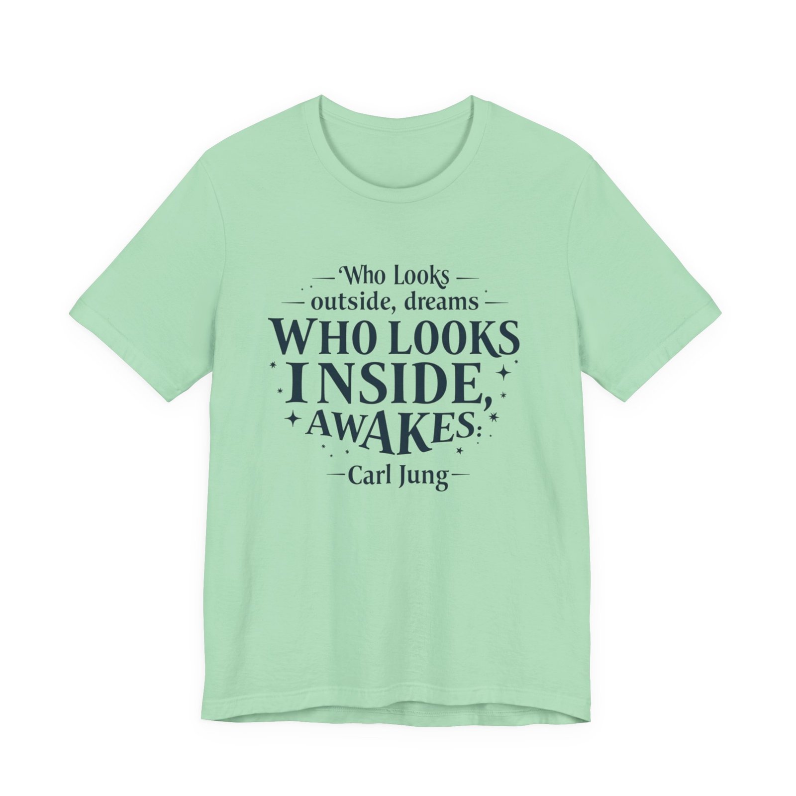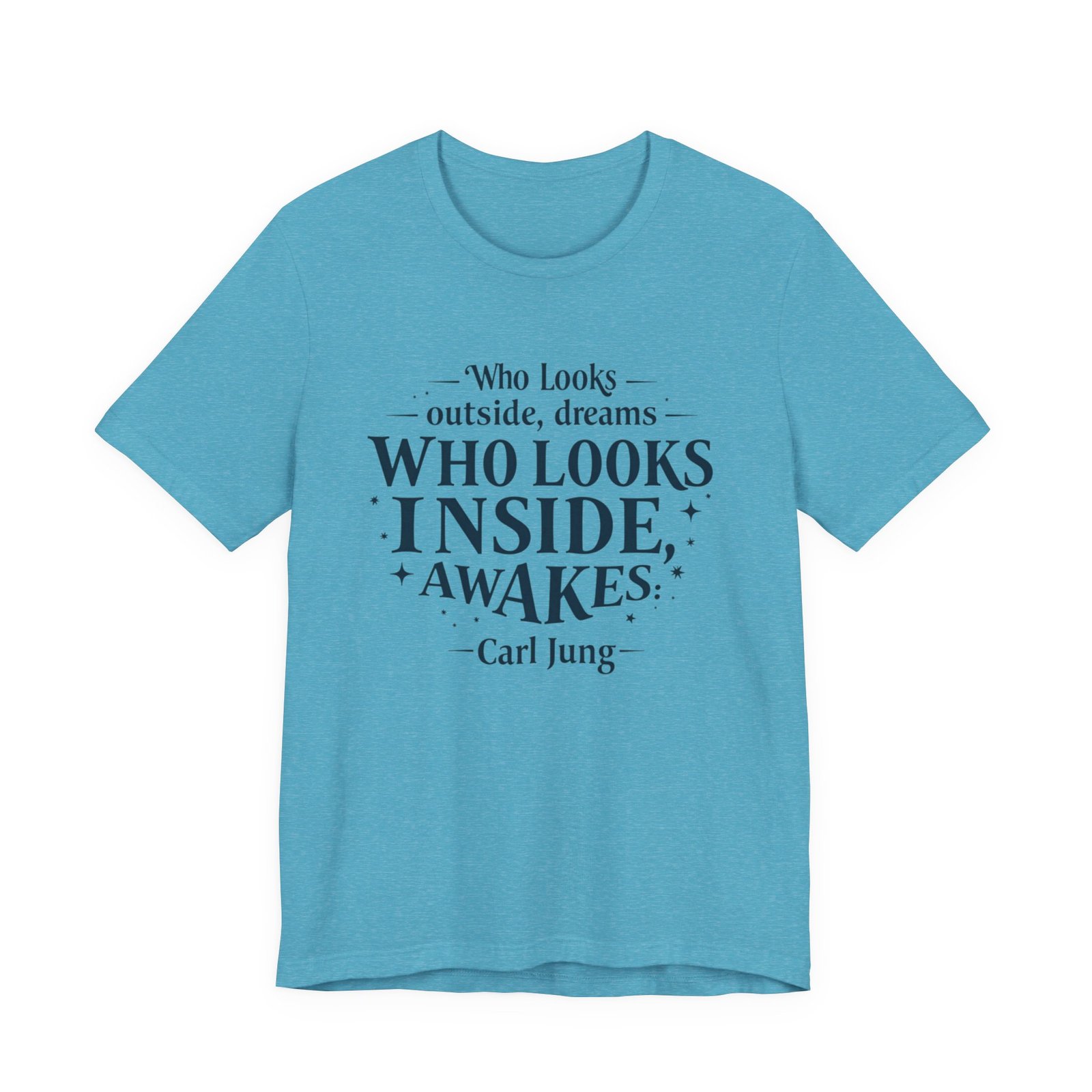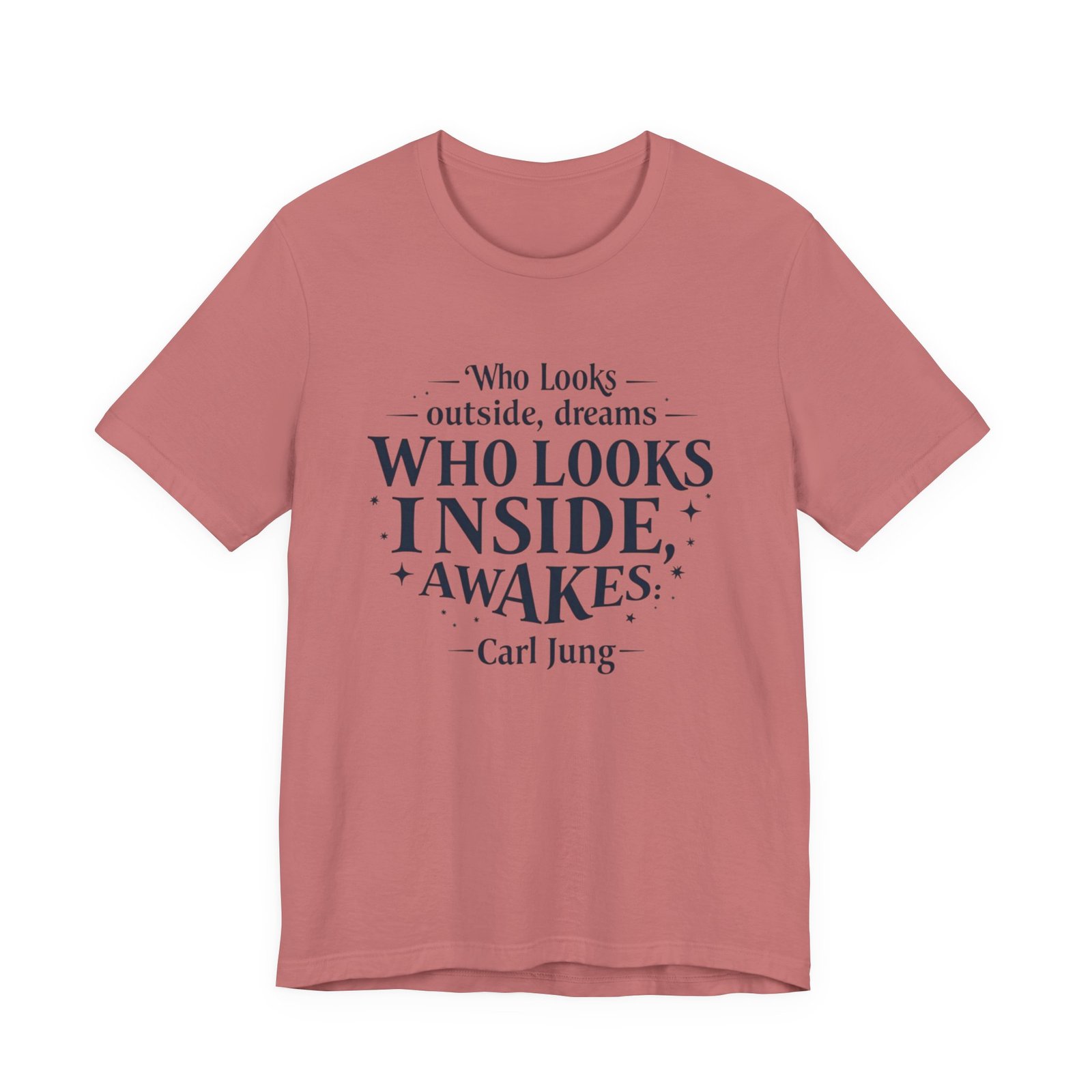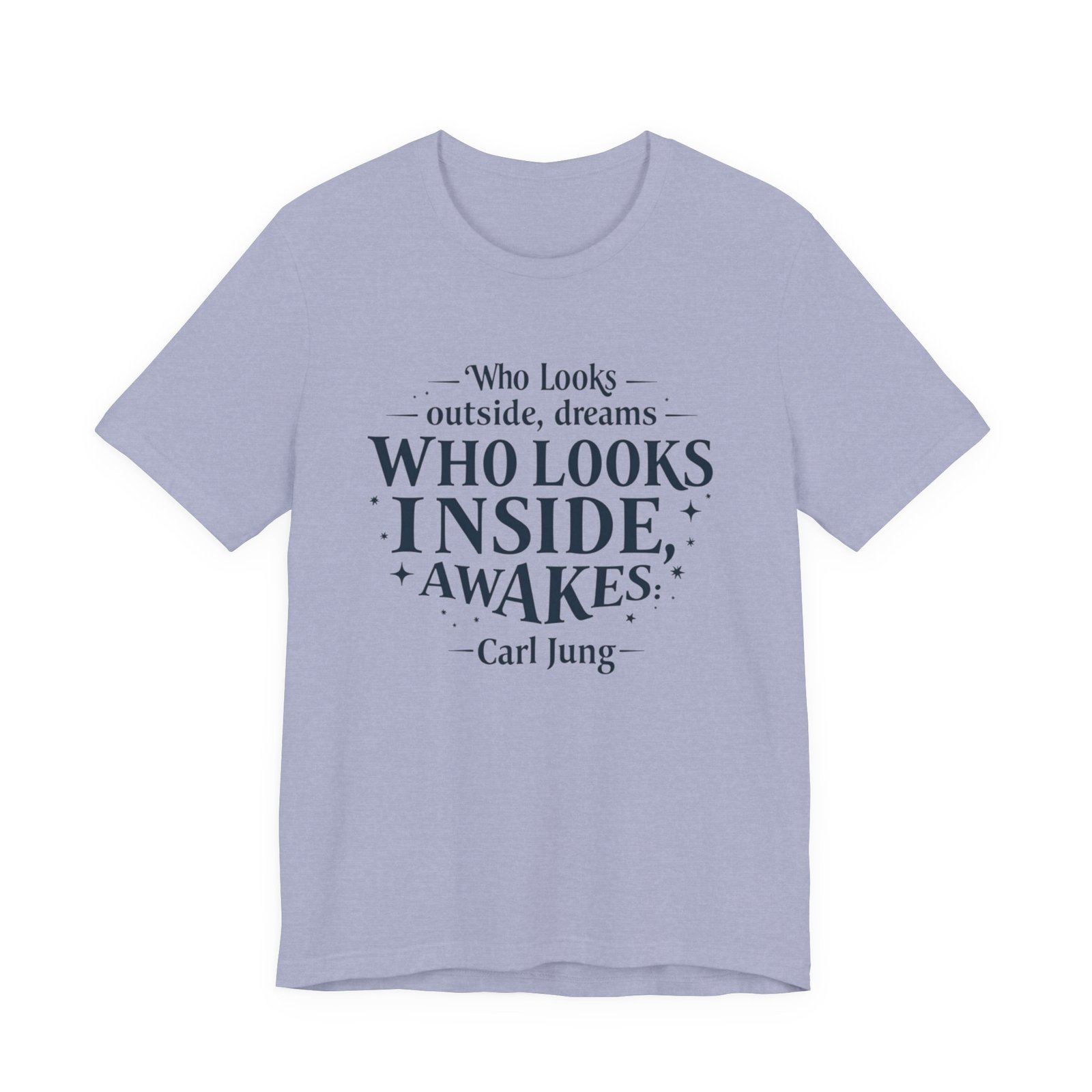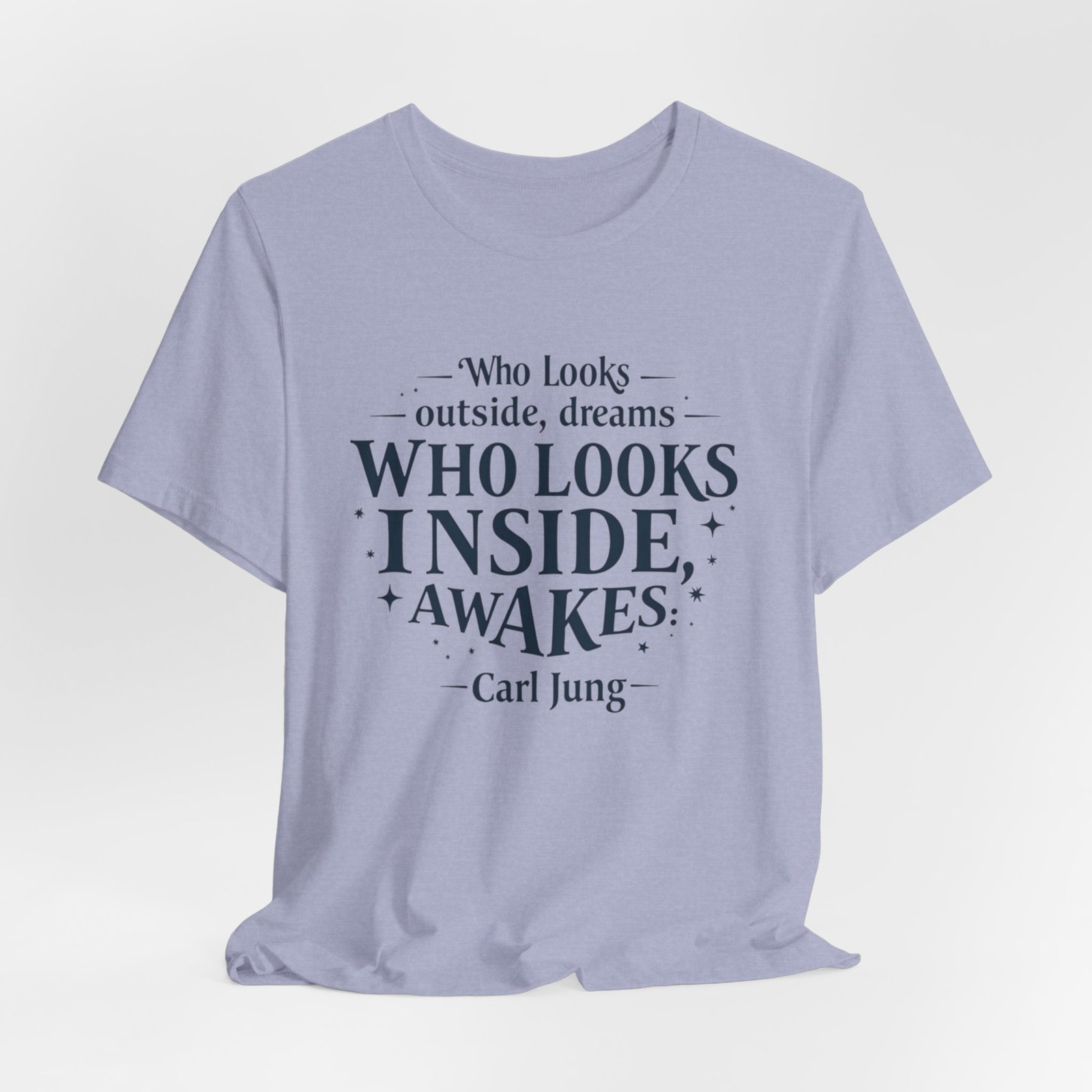 This T-Shirt features a quote by Carl Jung, perfect for those who seek inspiration and introspection. The lightweight fabric and retail fit make it ideal for casual and semi-formal settings, great for layering and accessorizing. Relevant for those interested in psychology or spiritual growth, perfect for everyday wear or as a thoughtful gift for birthdays or self-care occasions.