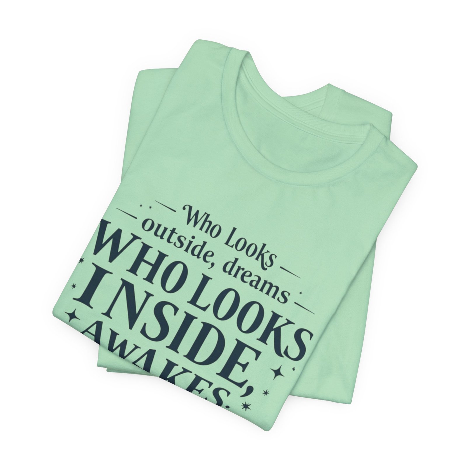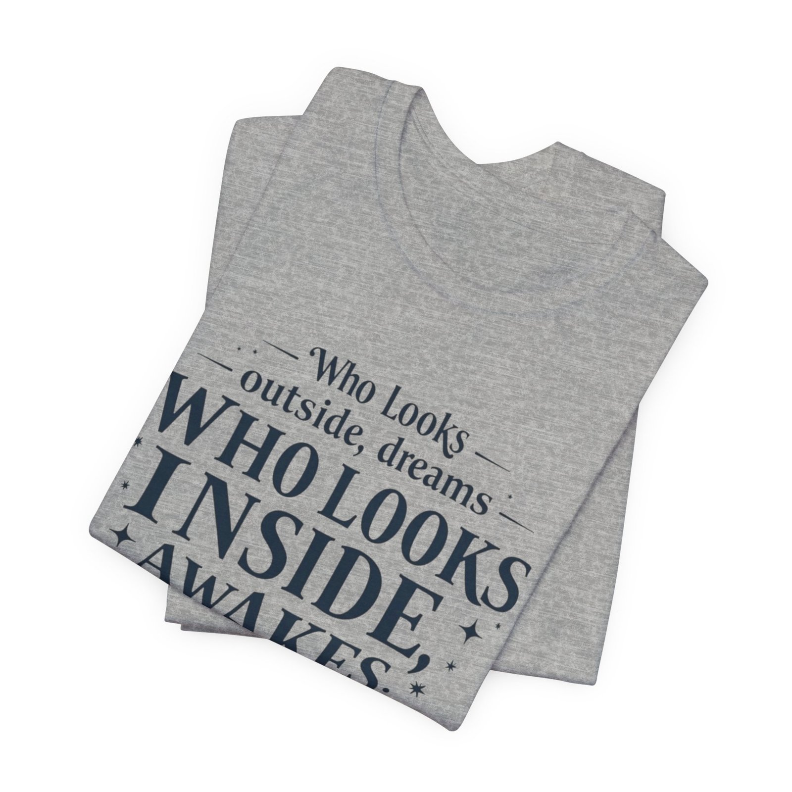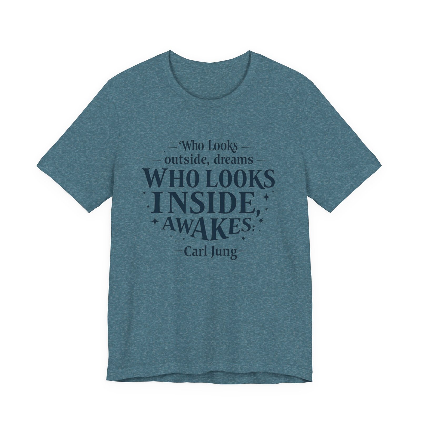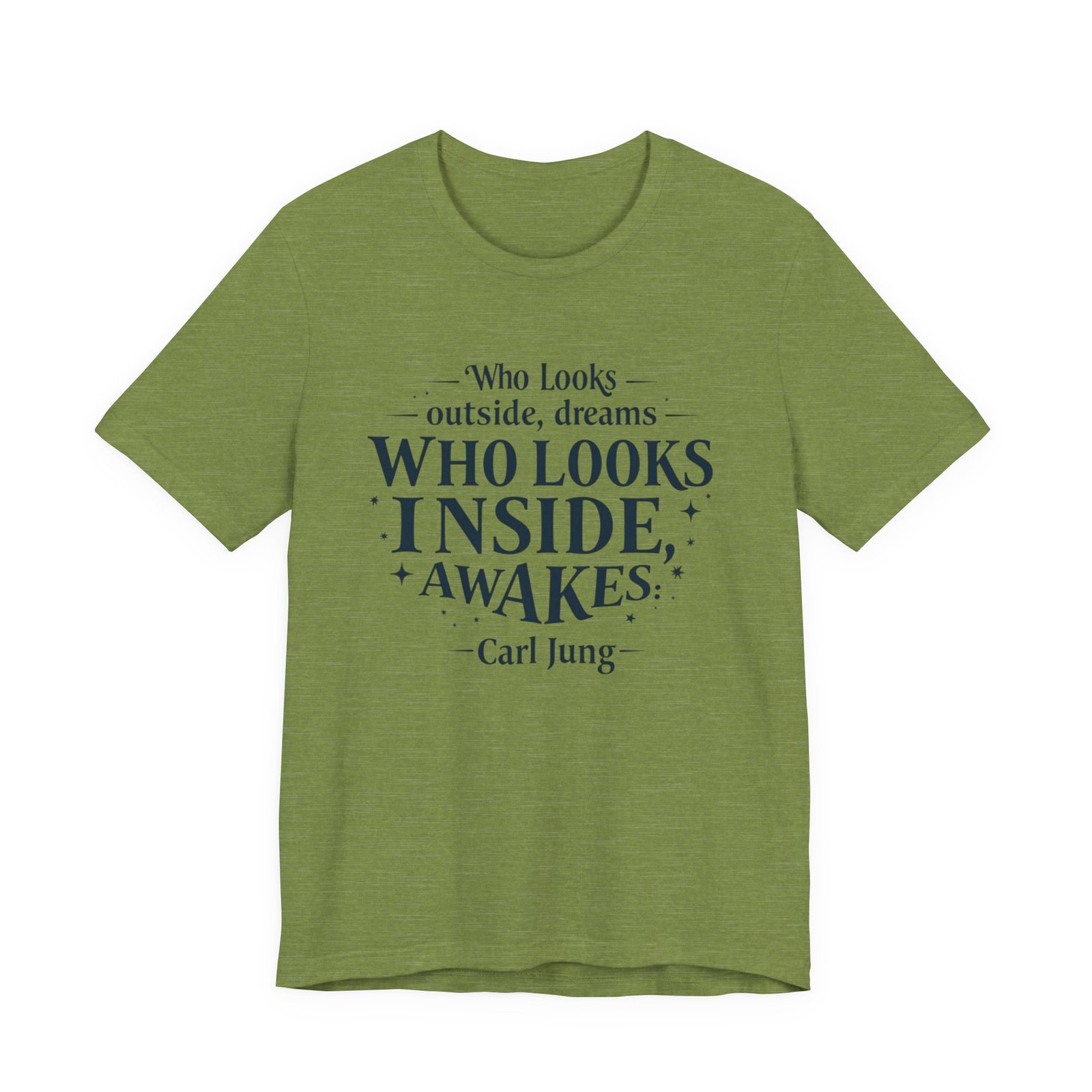 This T-Shirt features a quote by Carl Jung, perfect for those who seek inspiration and introspection. The lightweight fabric and retail fit make it ideal for casual and semi-formal settings, great for layering and accessorizing. Relevant for those interested in psychology or spiritual growth, perfect for everyday wear or as a thoughtful gift for birthdays or self-care occasions.
