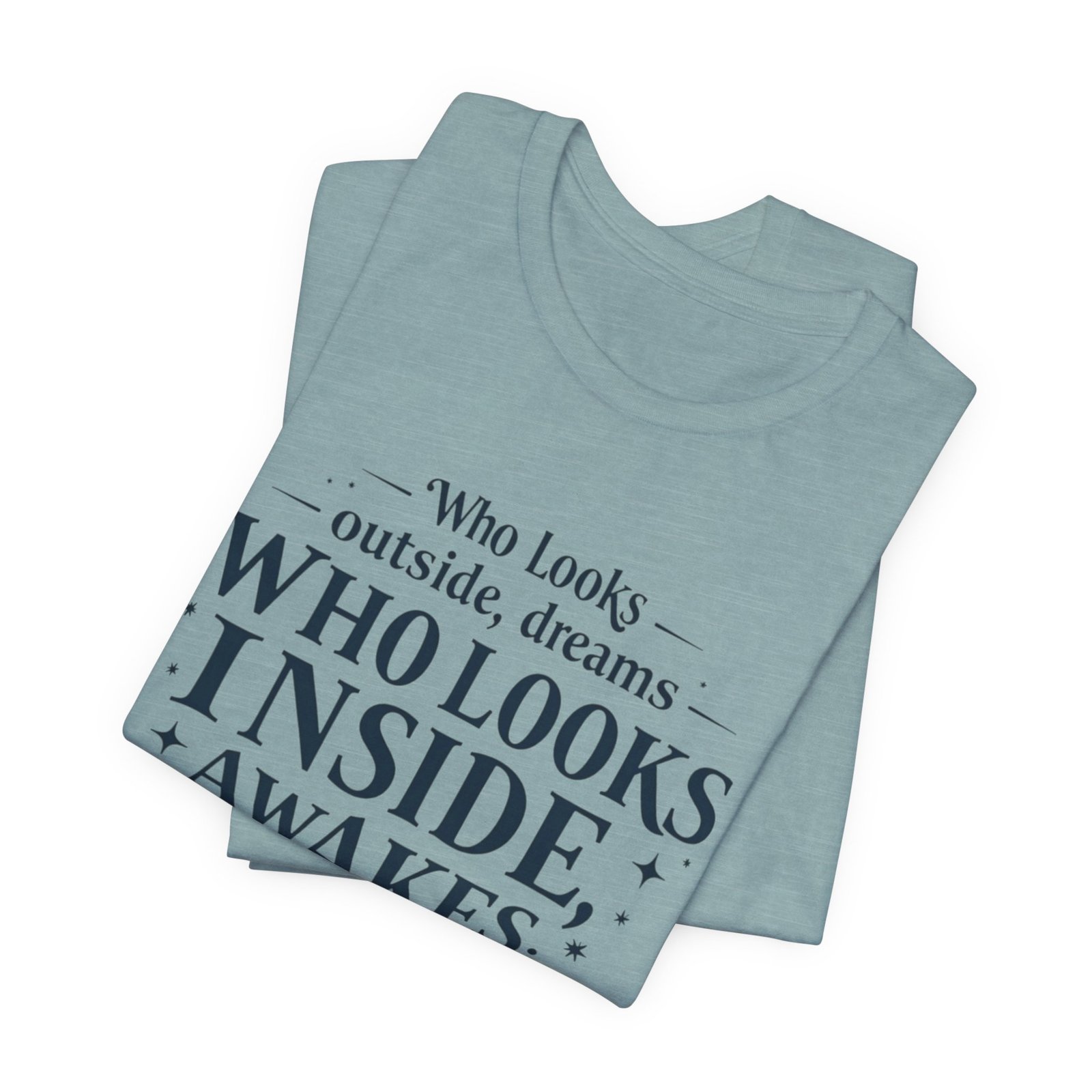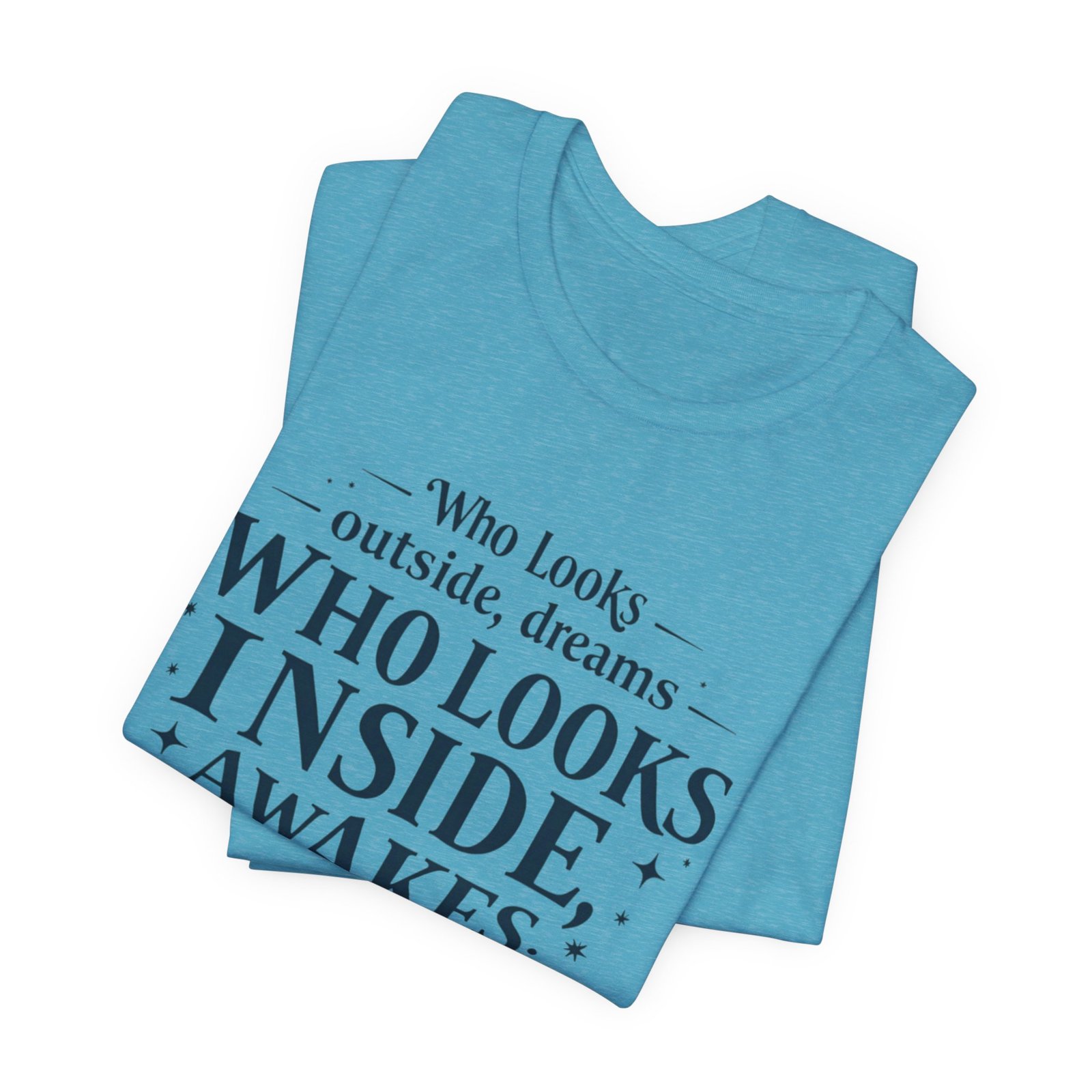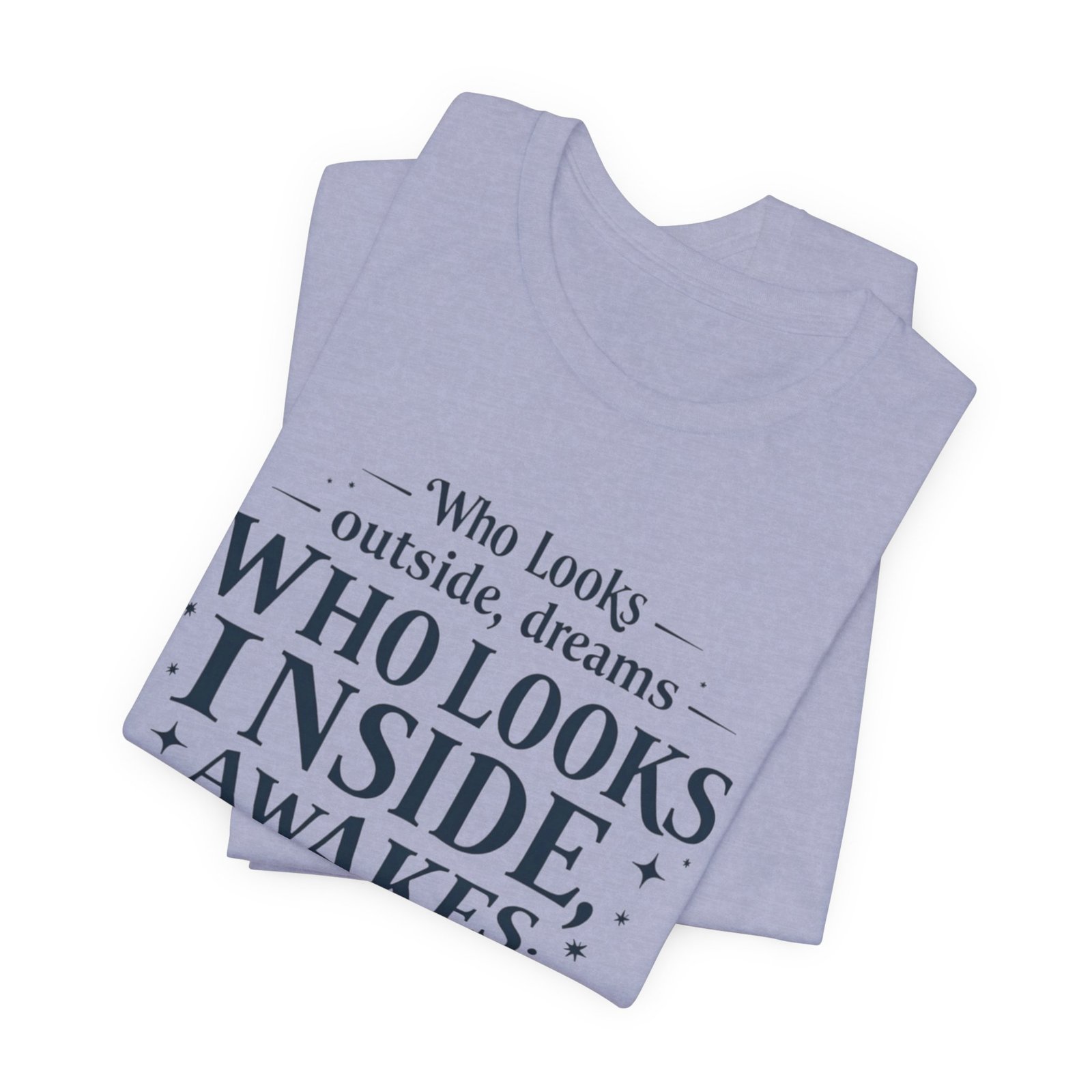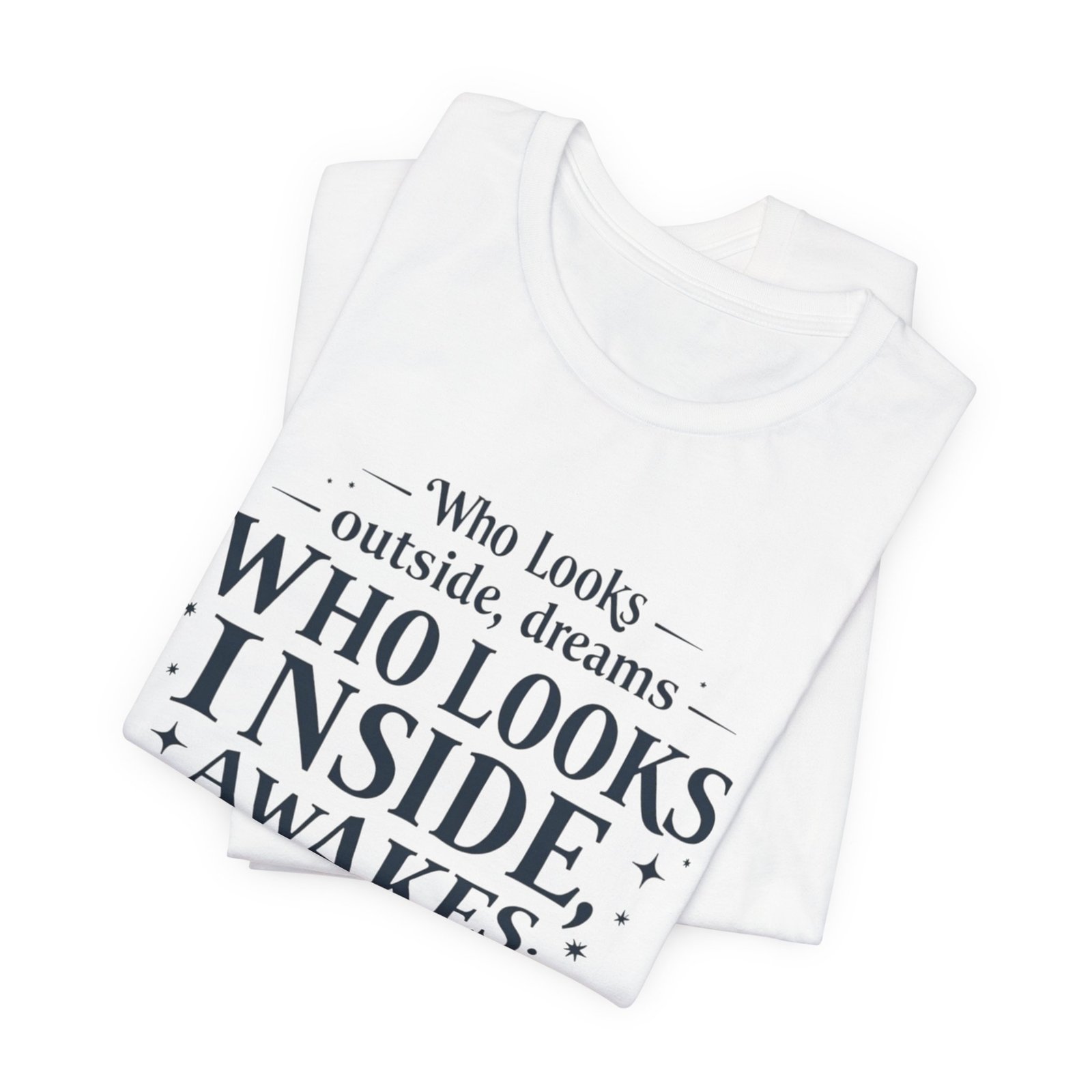 This T-Shirt features a quote by Carl Jung, perfect for those who seek inspiration and introspection. The lightweight fabric and retail fit make it ideal for casual and semi-formal settings, great for layering and accessorizing. Relevant for those interested in psychology or spiritual growth, perfect for everyday wear or as a thoughtful gift for birthdays or self-care occasions.