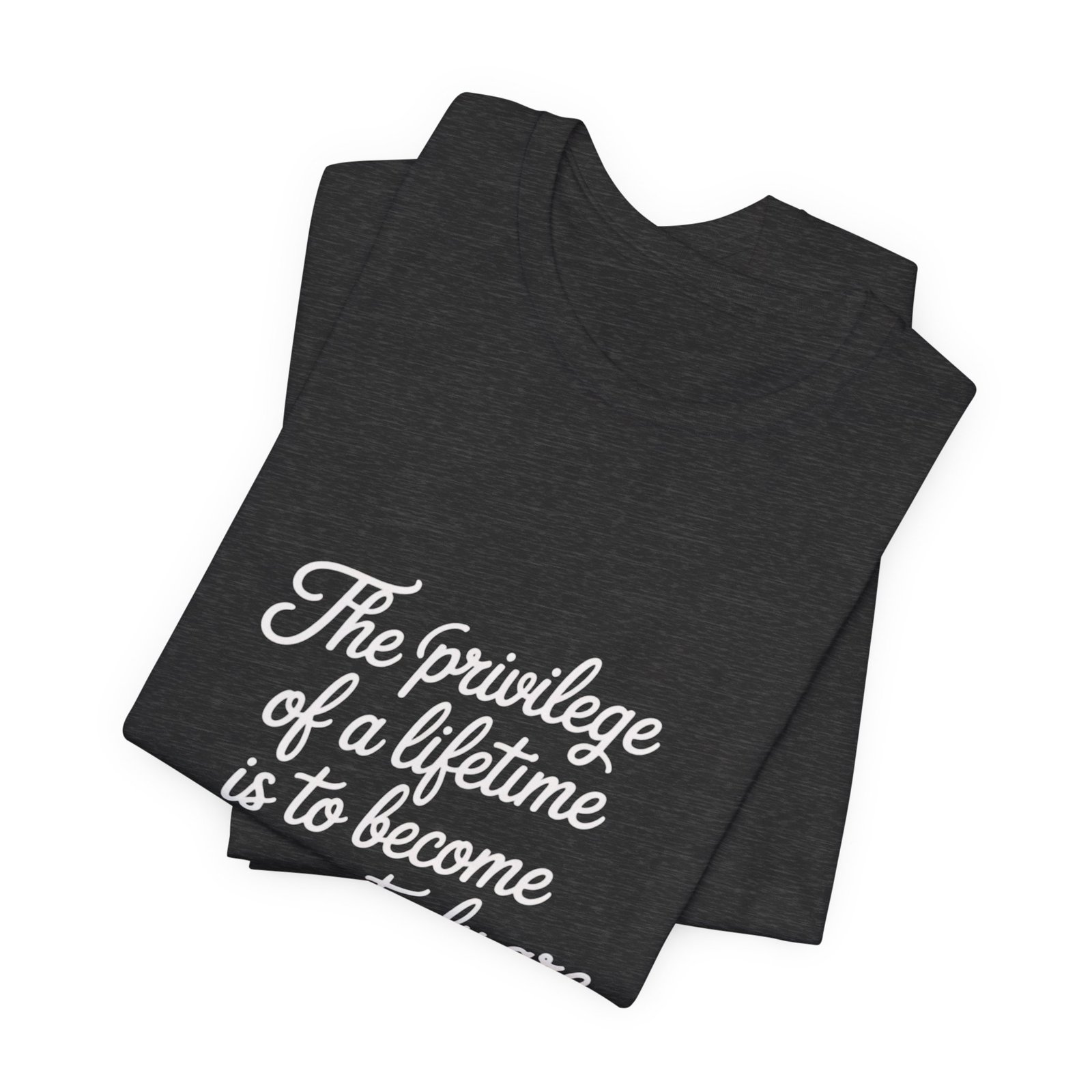 Introducing a versatile Unisex Jersey Short Sleeve Tee that effortlessly combines style and comfort. Made from 100% Airlume combed and ring-spun cotton, this lightweight fabric offers breathability, making it ideal for both active and leisure wear. The classic crew neckline and retail fit create a neat appearance, perfect for accessorizing or wearing casually. Whether you’re relaxing at home, enjoying a day out, or attending a semi-formal gathering, this tee fits seamlessly into your lifestyle. Designed for adults, it’s perfect for gifting on occasions like birthdays, holidays, or just as a thoughtful surprise for friends and family who appreciate quality and style. With its meaningful quote, this shirt resonates with anyone on a journey of self-discovery and growth, adding a touch of inspiration to daily wear.