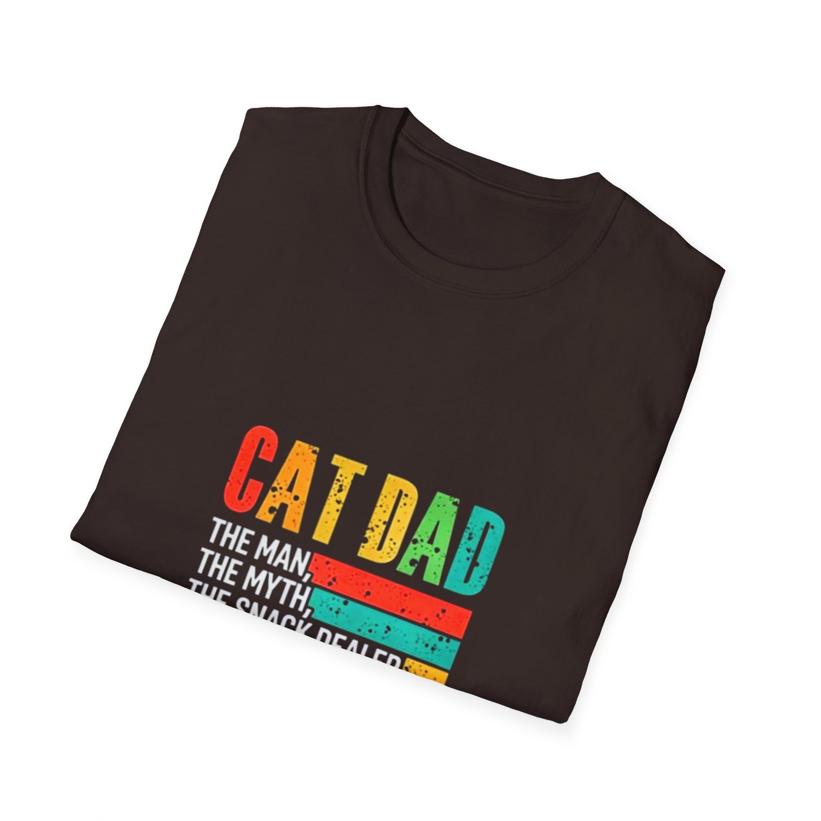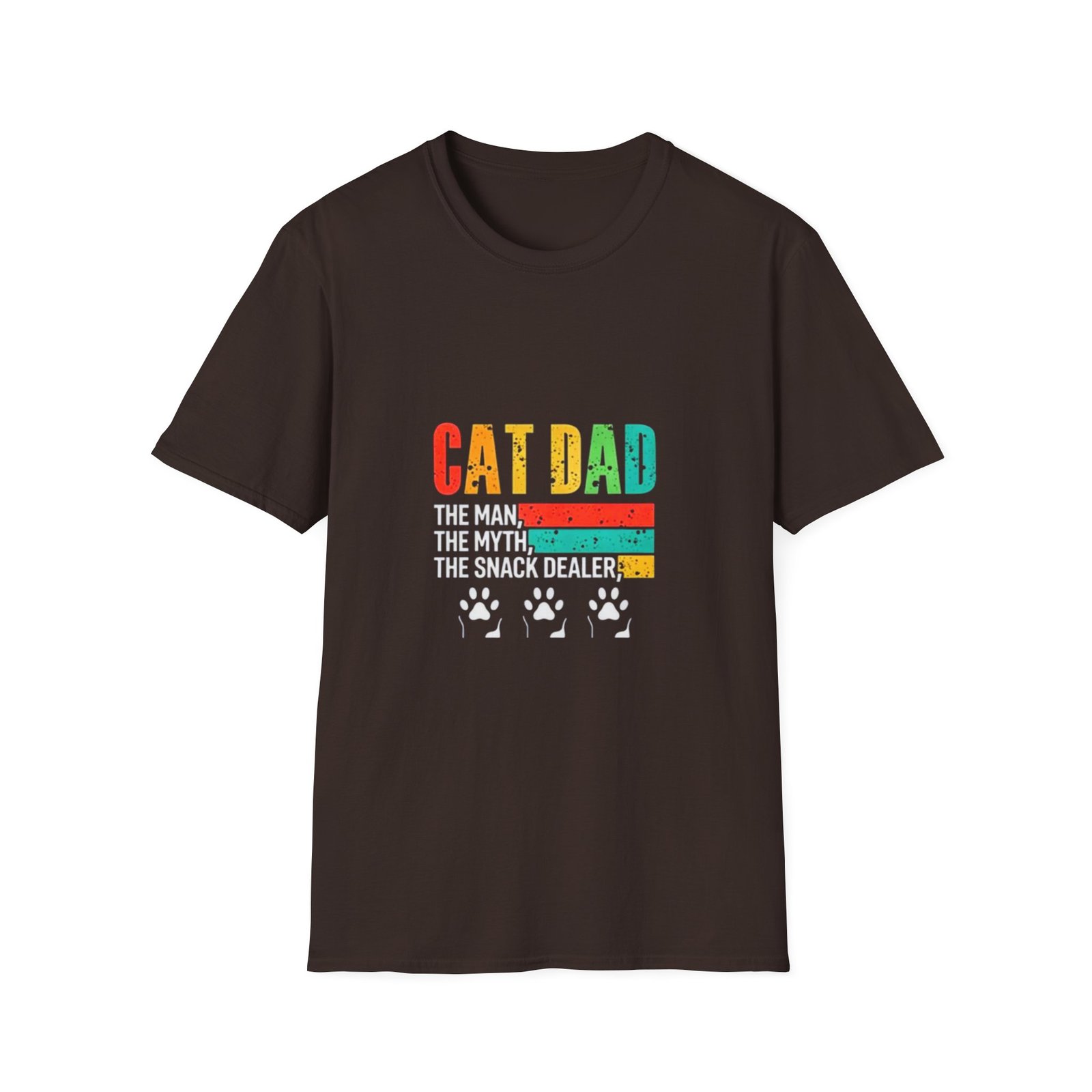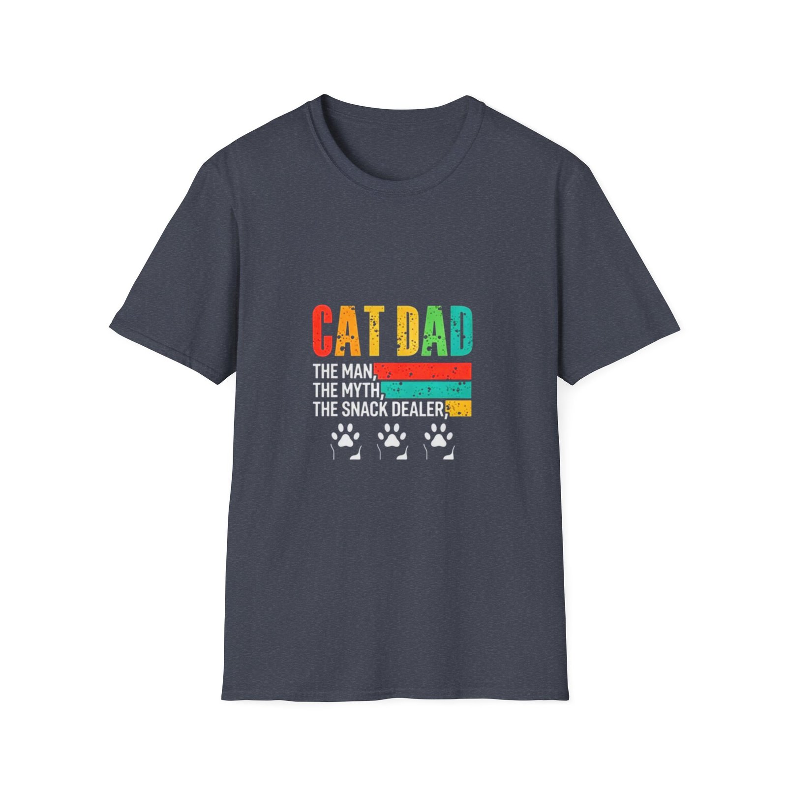 Soft, lived-in feel with a playful heart — this tee speaks to anyone who sleeps with a cat alarm and answers to “daddy.” The vintage-style, sun-faded block lettering reads “CAT DAD” above three warm retro stripes and a trio of tiny paw sketches, a quiet shout-out to late-night cuddles, clumsy feedings, and the slow rhythm of home. Lightweight and breathable, it layers easily under a cardigan for cool mornings or stands alone when sunbeams call the cat to nap on your lap. Wear it while refilling the food bowl, lounging on the couch, or stepping out for a quick errand — it’s casual, comfy, and entirely about living with a purring roommate who runs the schedule.
