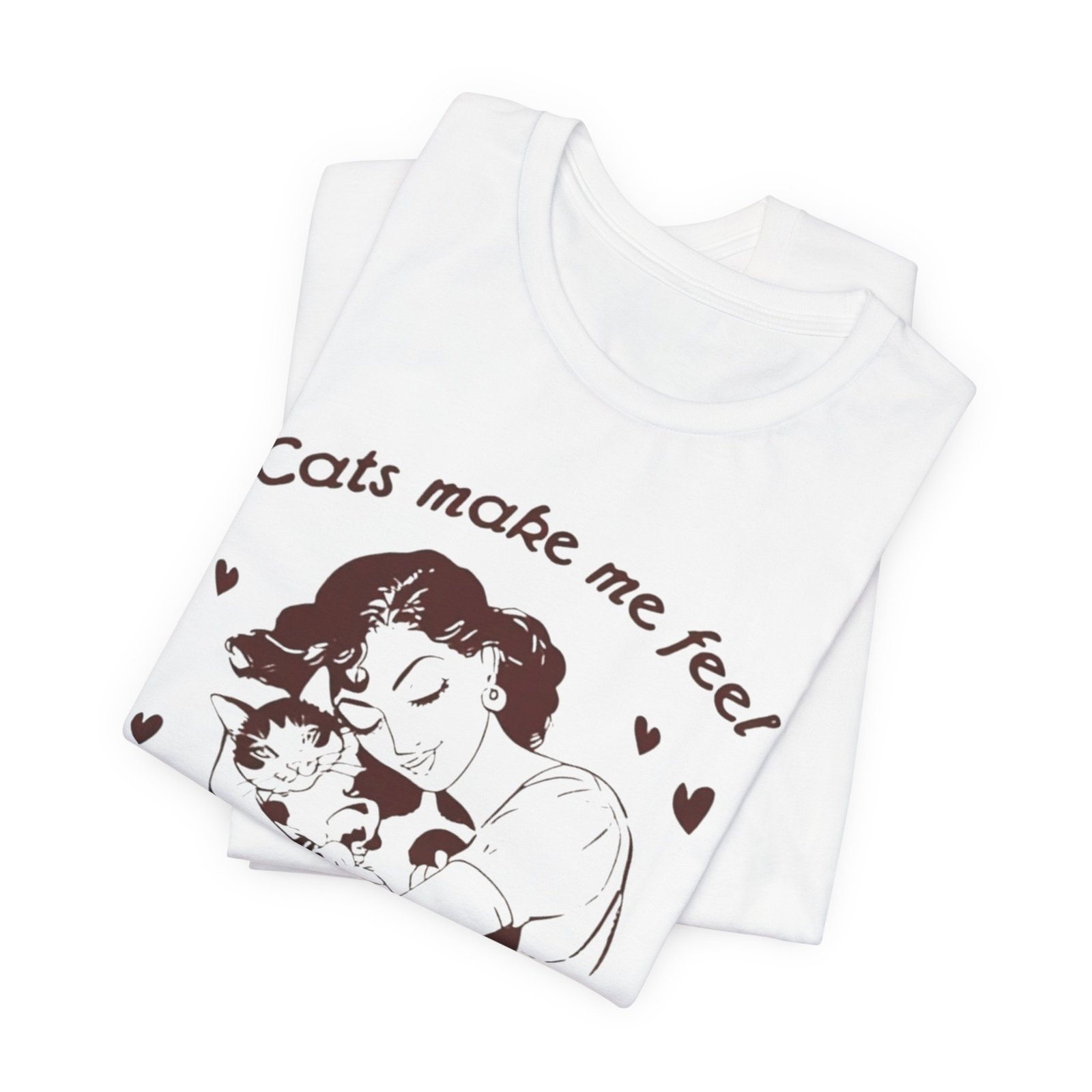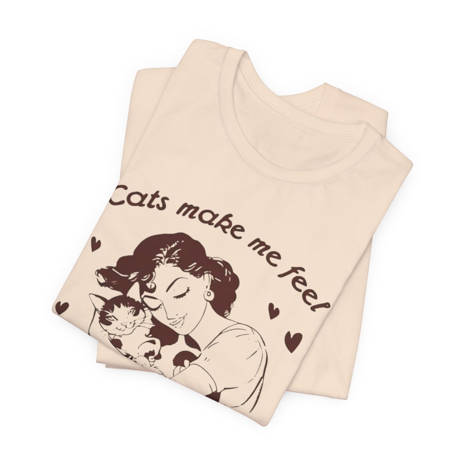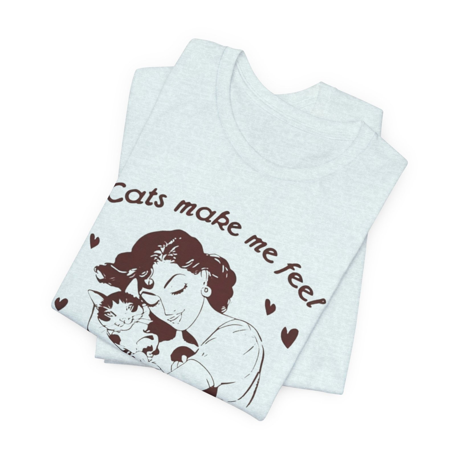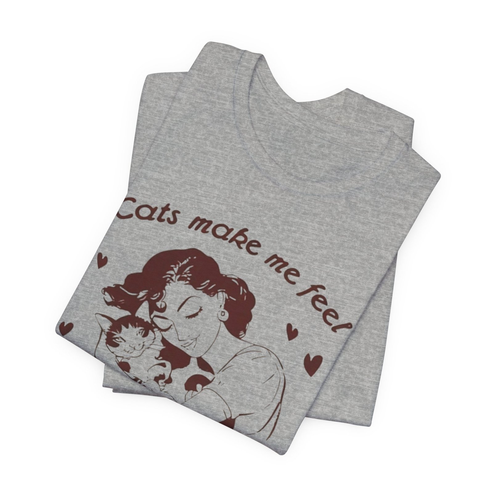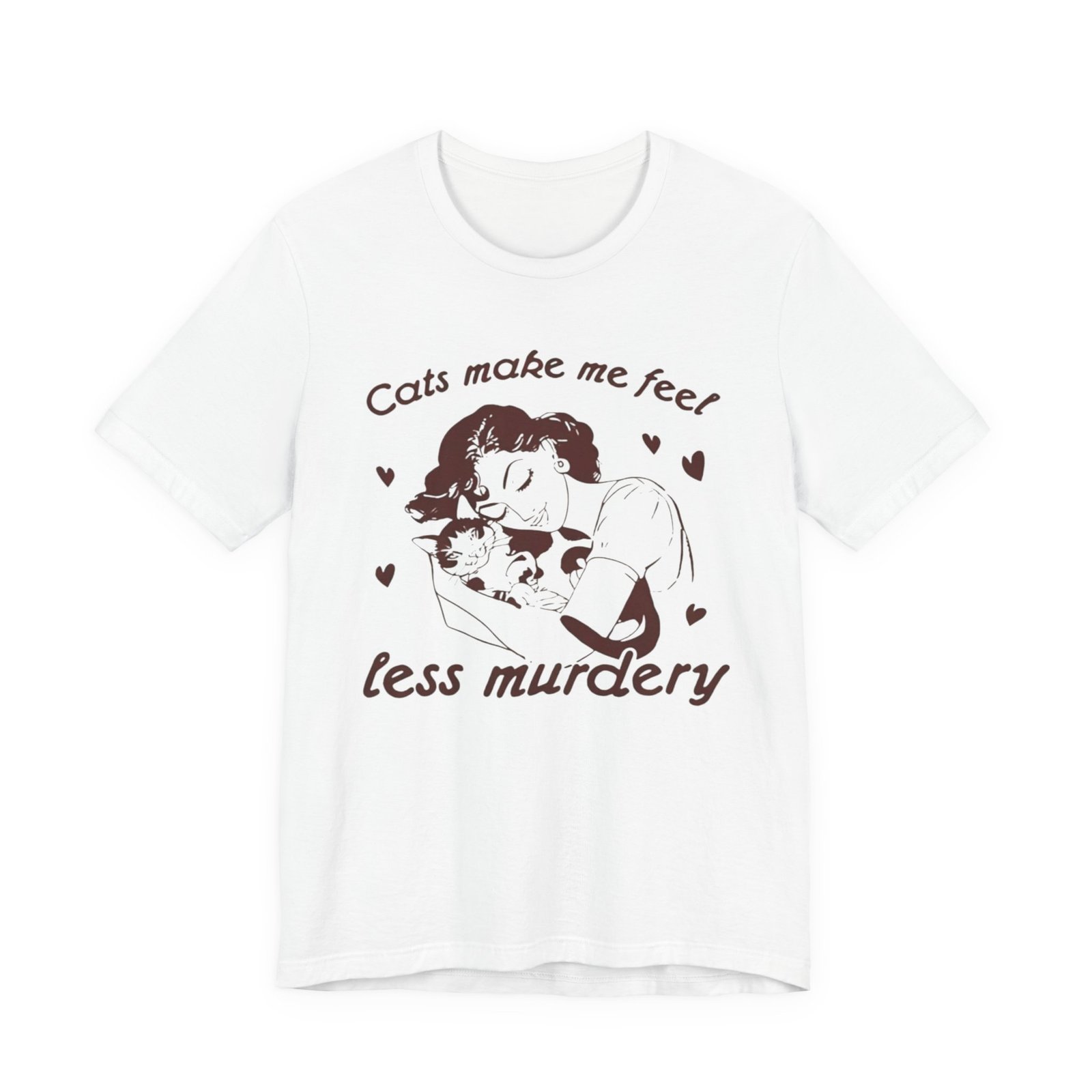 Soft, breathable cotton with a cheeky, cat-lover attitude. This lightweight tee wears like a favorite old shirt — airy at the shoulders, easy to layer, and gentle next to skin thanks to Airlume combed and ring-spun cotton. The front shows a warm, slightly dark-humor illustration of a person cuddling a content cat with the phrase “Cats make me feel less murdery,” blending cozy domestic comfort with wry personality. Thoughtful construction — side seams, ribbed knit collar, shoulder tape and a tear-away label — keeps the shirt comfortable and long-lasting. Ethically produced blanks and REACH compliance add peace of mind for shoppers who care about sourcing.