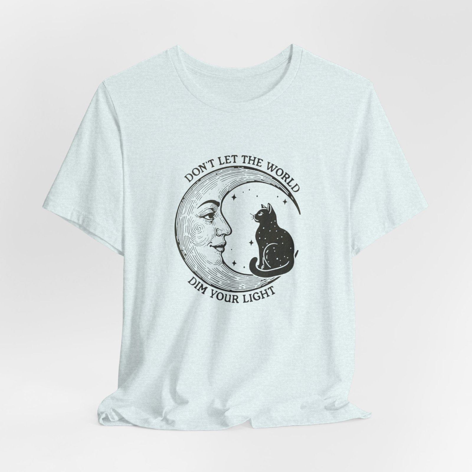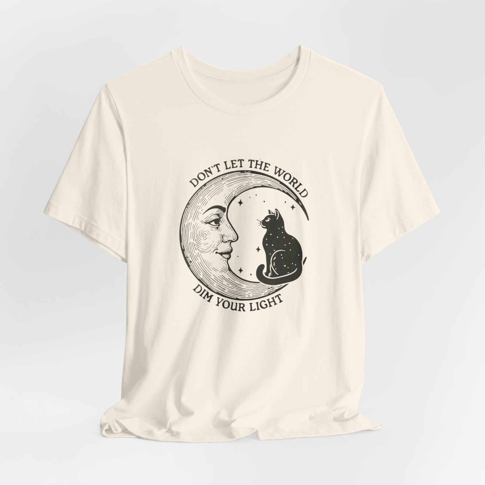Celestial Cat Tee with Inspirational Quote, Unisex Tee, Moon and Cat Shirt, Witchy Apparel, Gift for Cat Lovers