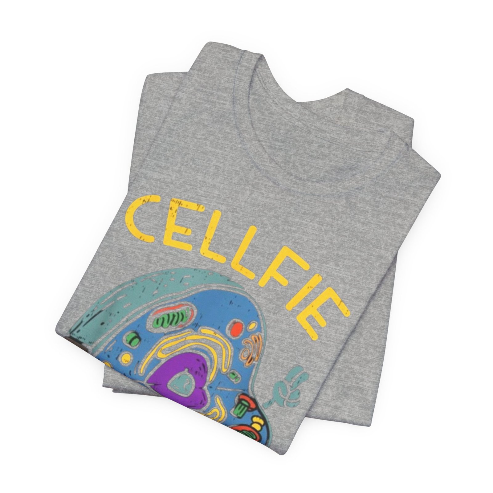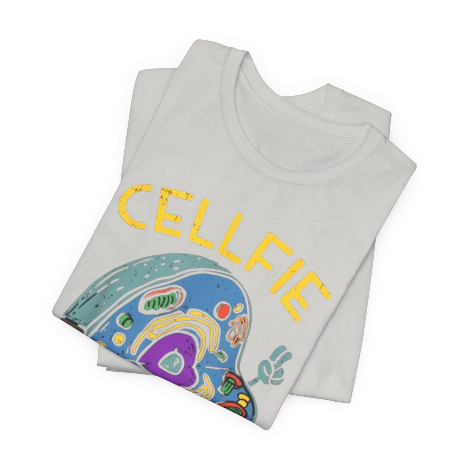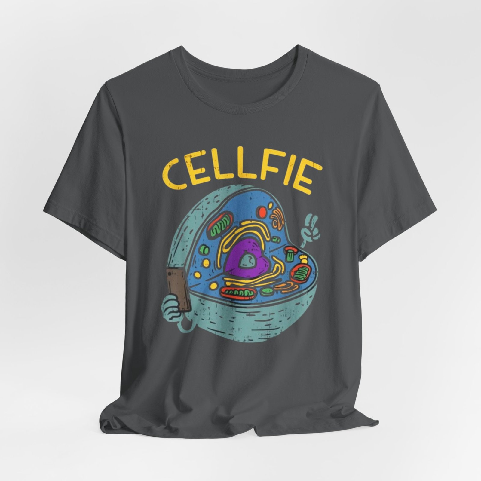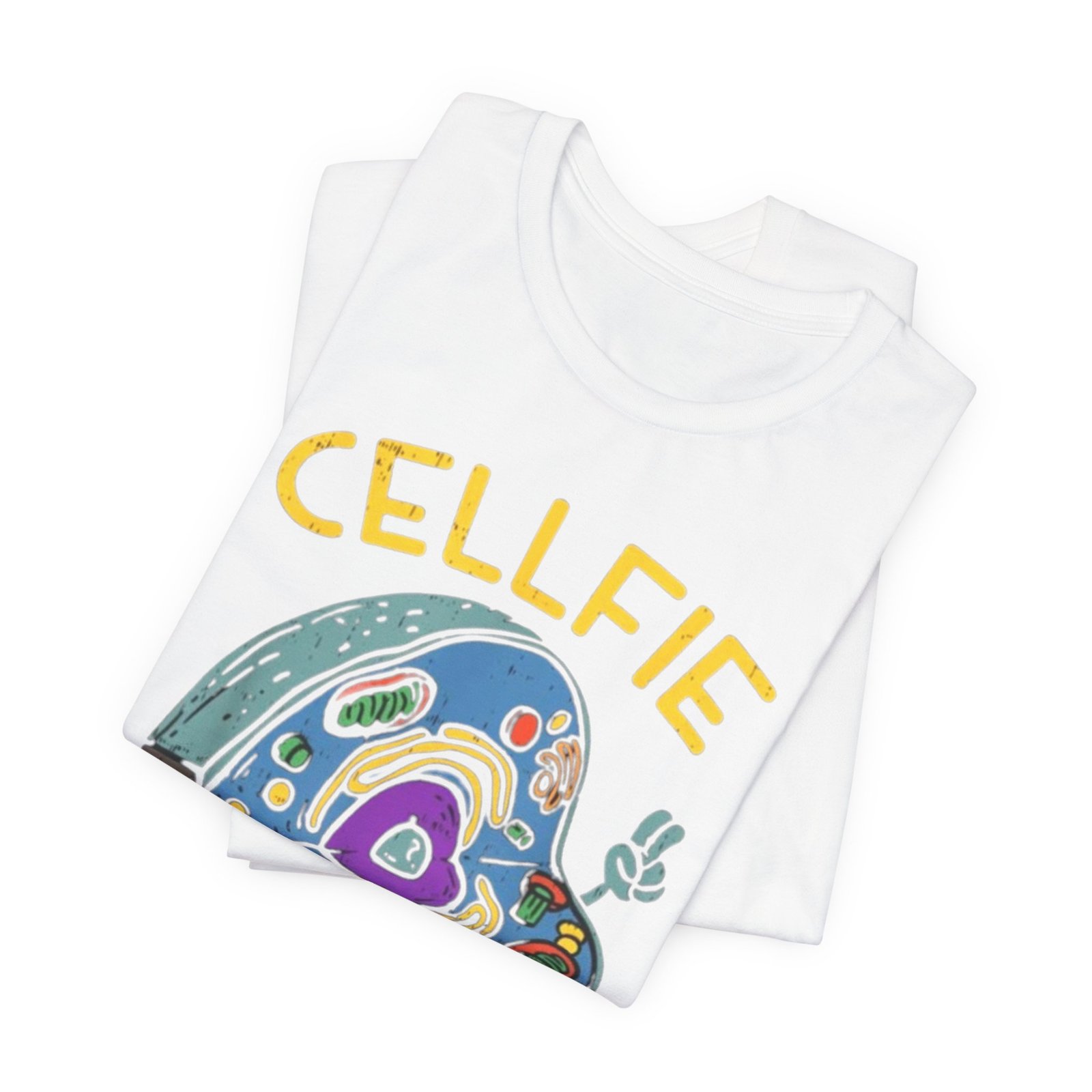 This lightweight jersey tee brings a wink of science and a playful sense of humor to everyday wear. The front graphic shows a whimsical cross-section of a cell taking a ‘cellfie’—bright, hand-drawn organelles and a tiny phone in a friendly, cartoon style. It feels casual and slightly nerdy, the kind of shirt you grab for coffee runs, lab days, or laid-back campus hours. Breathable Airlume cotton keeps you cool while the retail crew neckline and side seams hold a tidy silhouette. Wear it with jeans, a cardigan, or under a lab coat to quietly announce your love of biology with a smile.