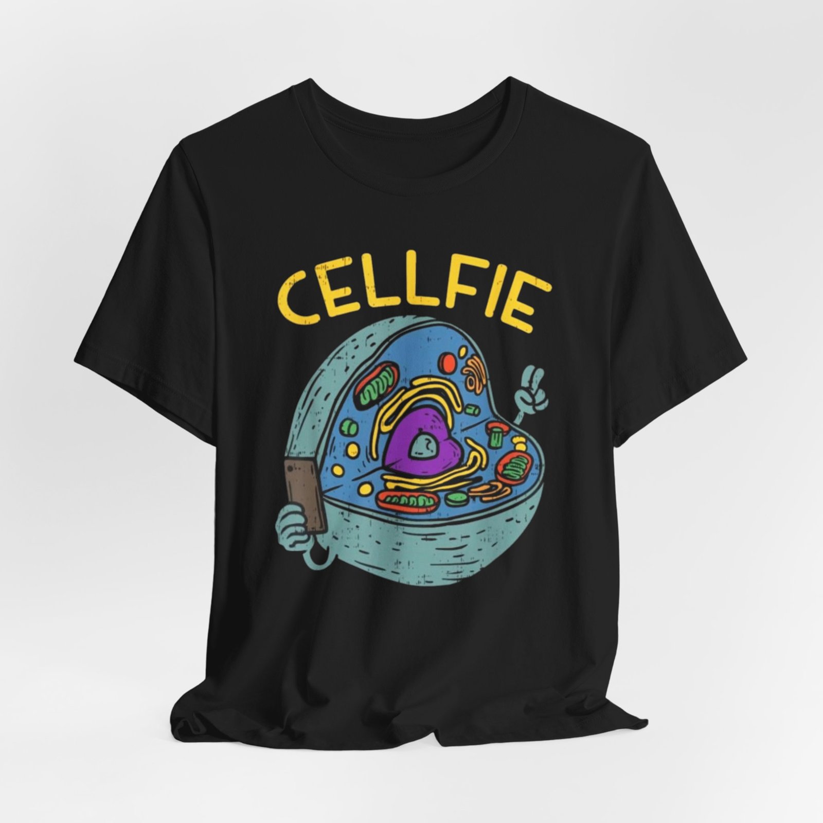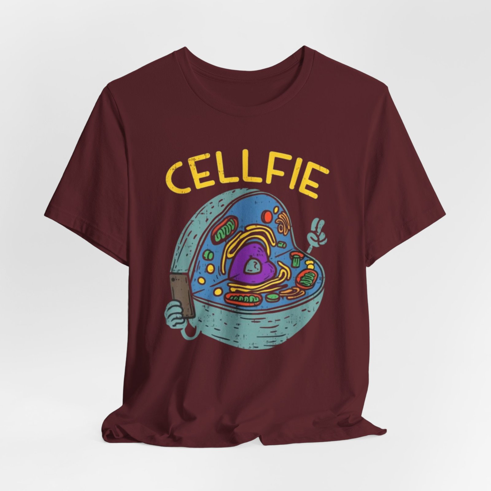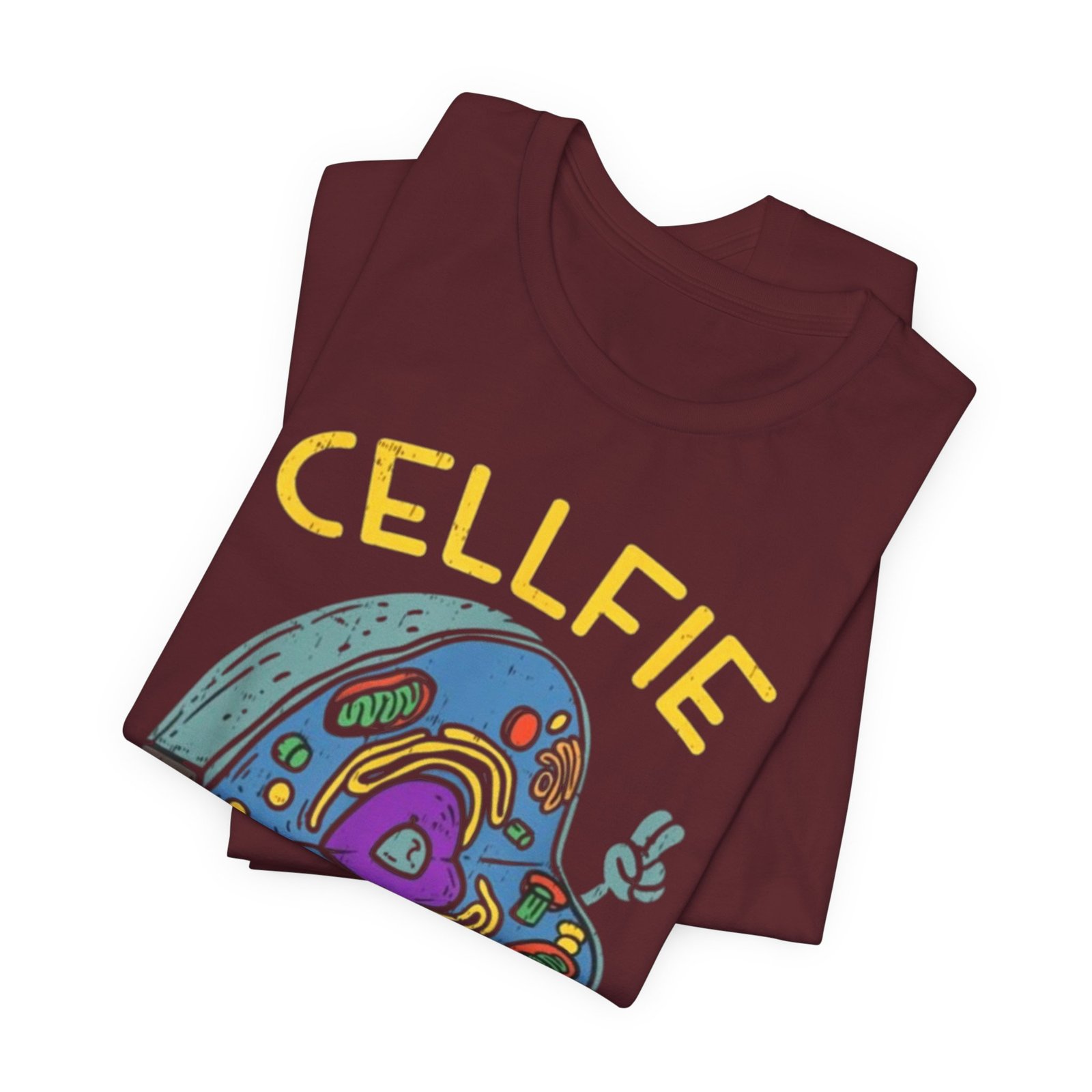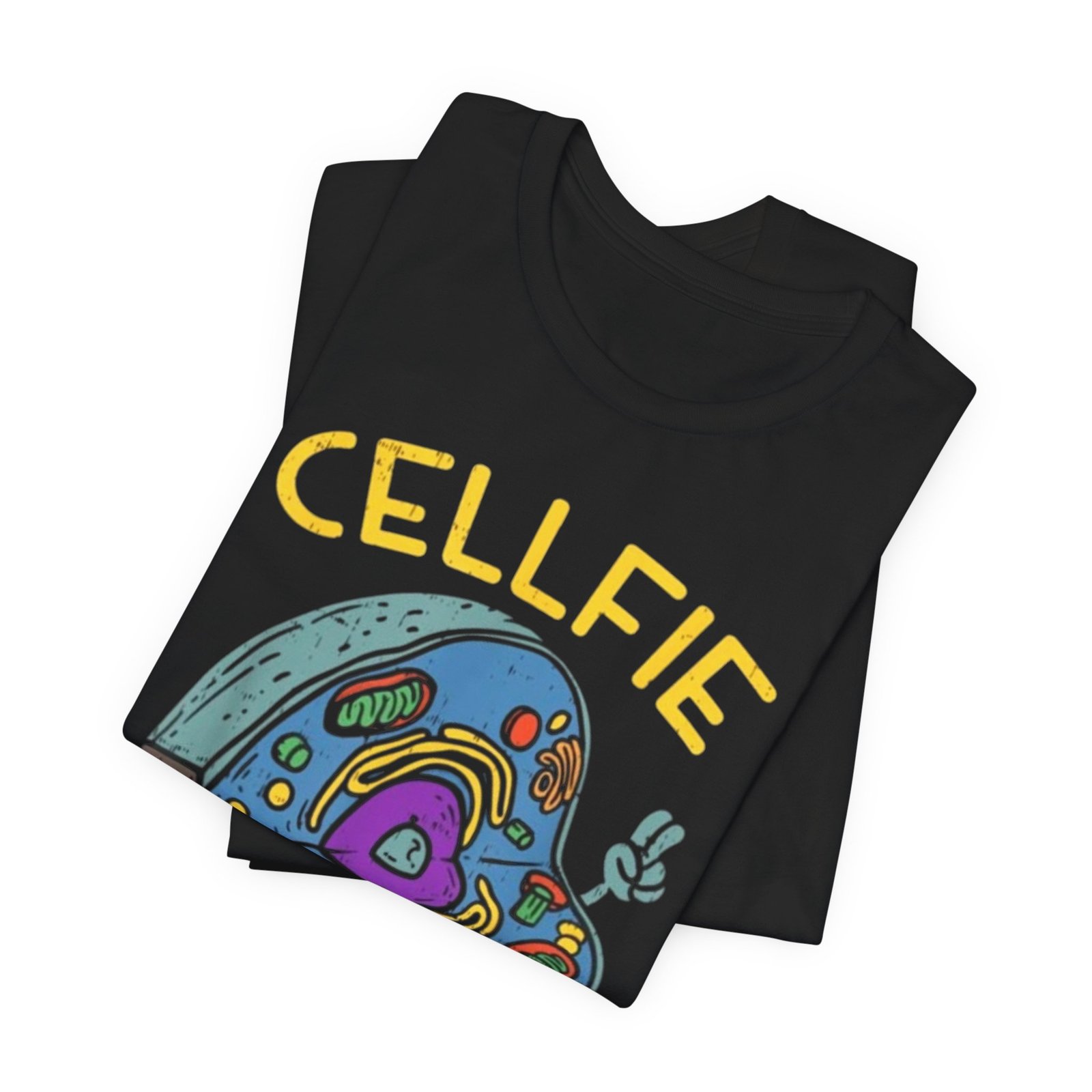 This lightweight jersey tee brings a wink of science and a playful sense of humor to everyday wear. The front graphic shows a whimsical cross-section of a cell taking a ‘cellfie’—bright, hand-drawn organelles and a tiny phone in a friendly, cartoon style. It feels casual and slightly nerdy, the kind of shirt you grab for coffee runs, lab days, or laid-back campus hours. Breathable Airlume cotton keeps you cool while the retail crew neckline and side seams hold a tidy silhouette. Wear it with jeans, a cardigan, or under a lab coat to quietly announce your love of biology with a smile.