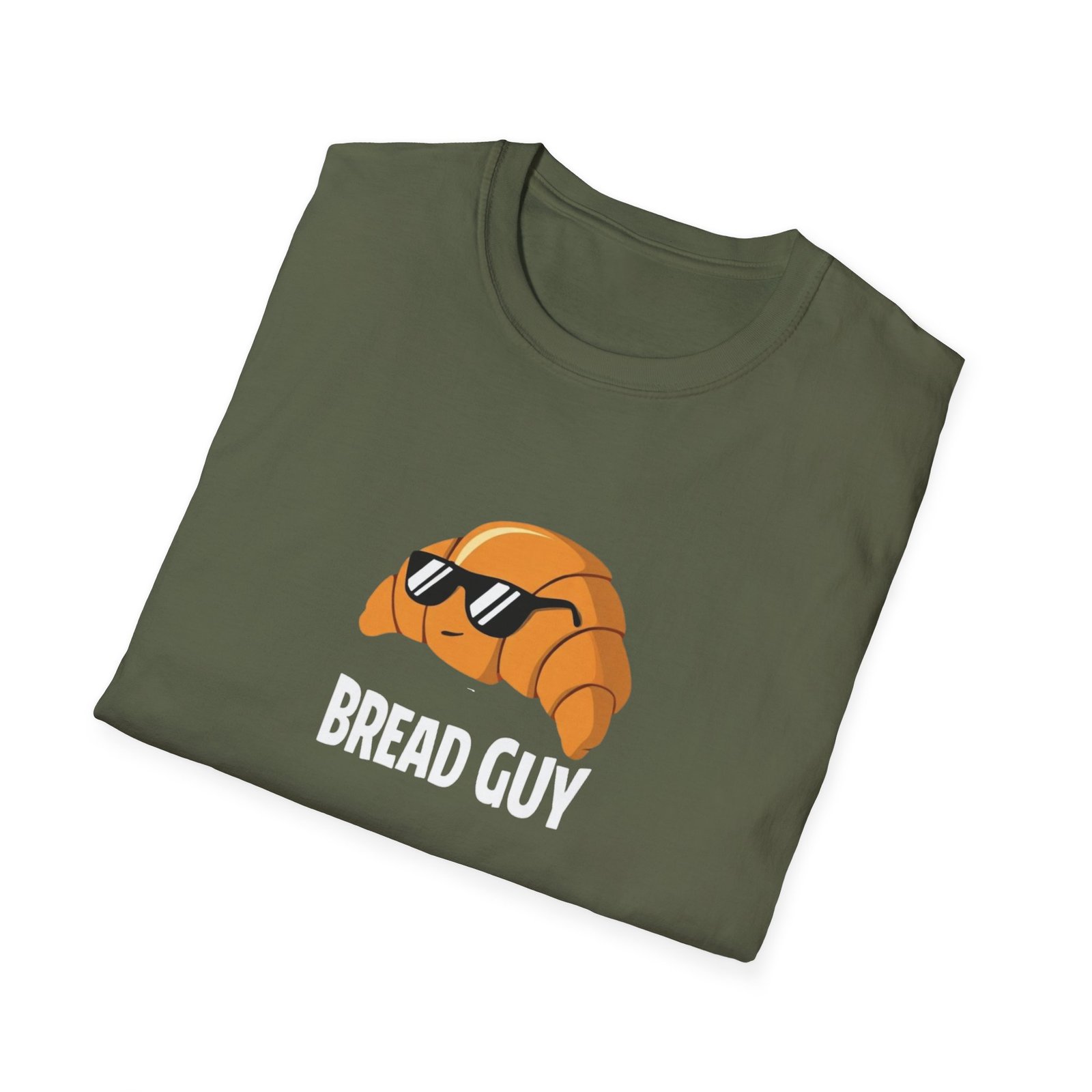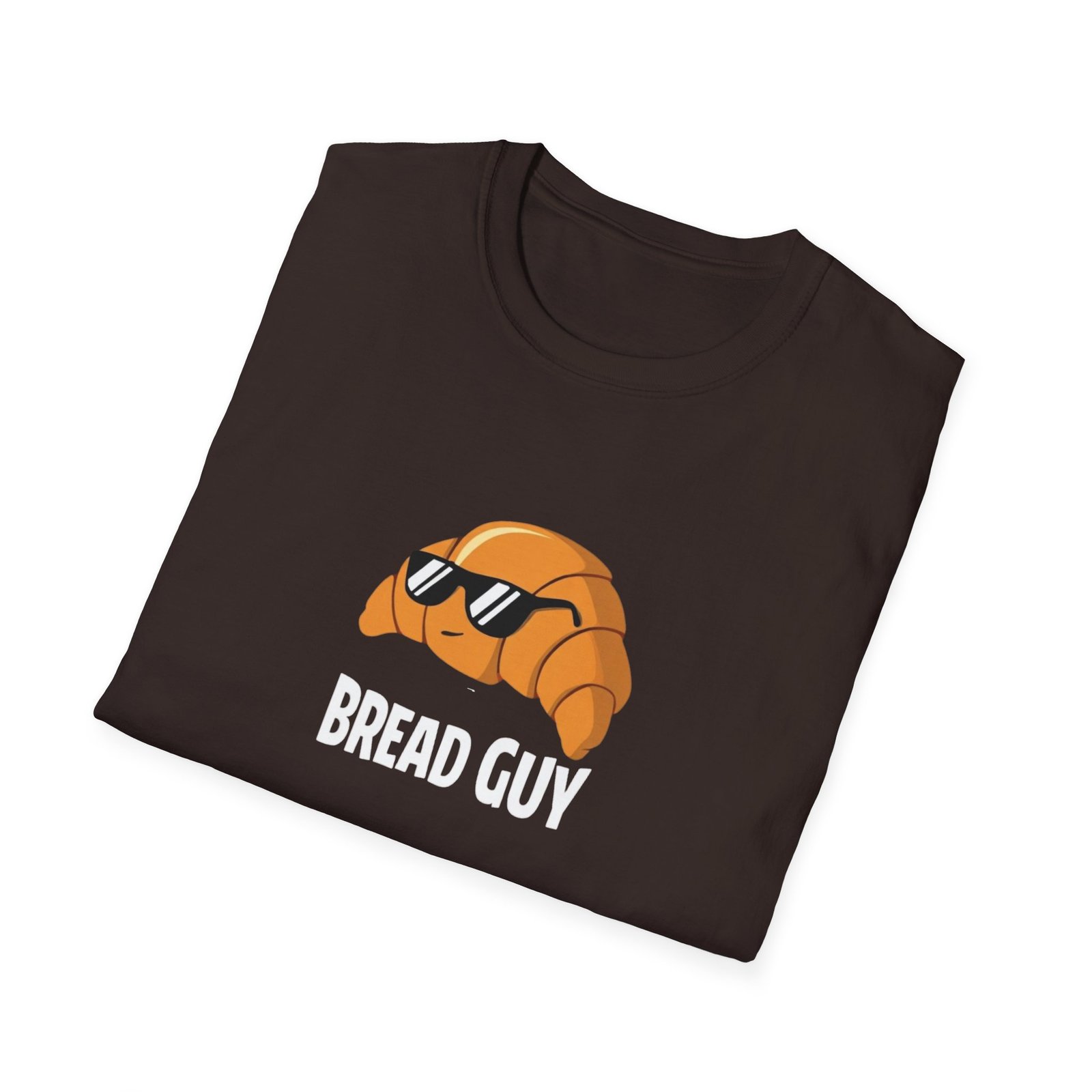 Lightweight, breathable, and built to move with you — this classic crew tee carries a cheeky croissant illustration right over the heart. The tiny baked-good character wears cool shades and brings a playful, low-key vibe to everyday outfits. Soft ring-spun cotton drapes cleanly in a classic fit; tubular knit and shoulder tape keep the shape after washes. Wear it tucked into denim, layered under a cardigan for coffee runs, or alone when you want something simple with personality.