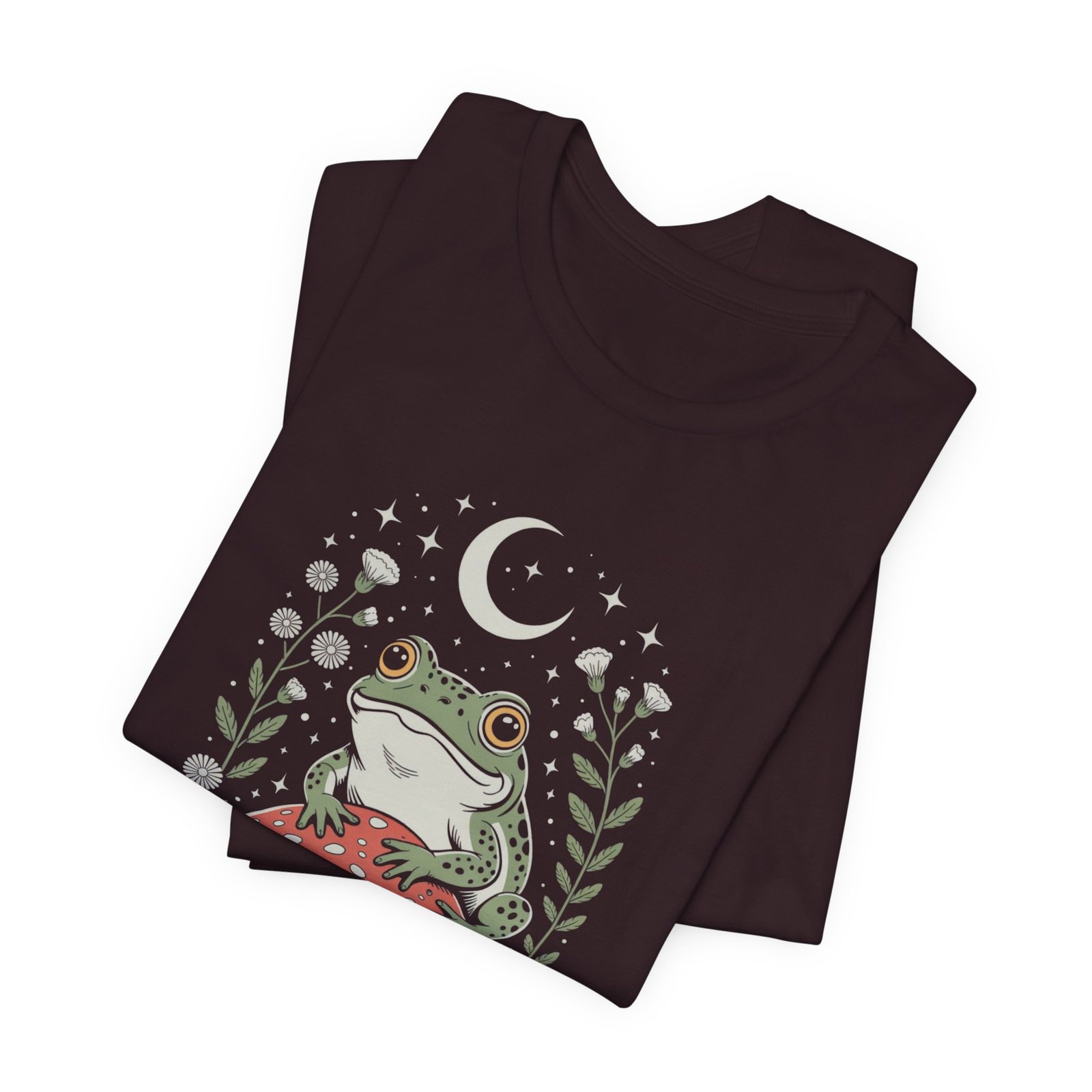 This Cottagecore frog and mushroom design T-Shirt gives off a whimsical and nature-inspired vibe, perfect for those who love the cottagecore aesthetic. It is relevant for nature enthusiasts, cottagecore fans, and those who enjoy quirky and unique designs. This T-Shirt is ideal for casual wear, lounging, or making a statement with its playful design. It is perfect for Earth Day, nature-themed events, or as a gift for someone who loves animals and mushrooms.
