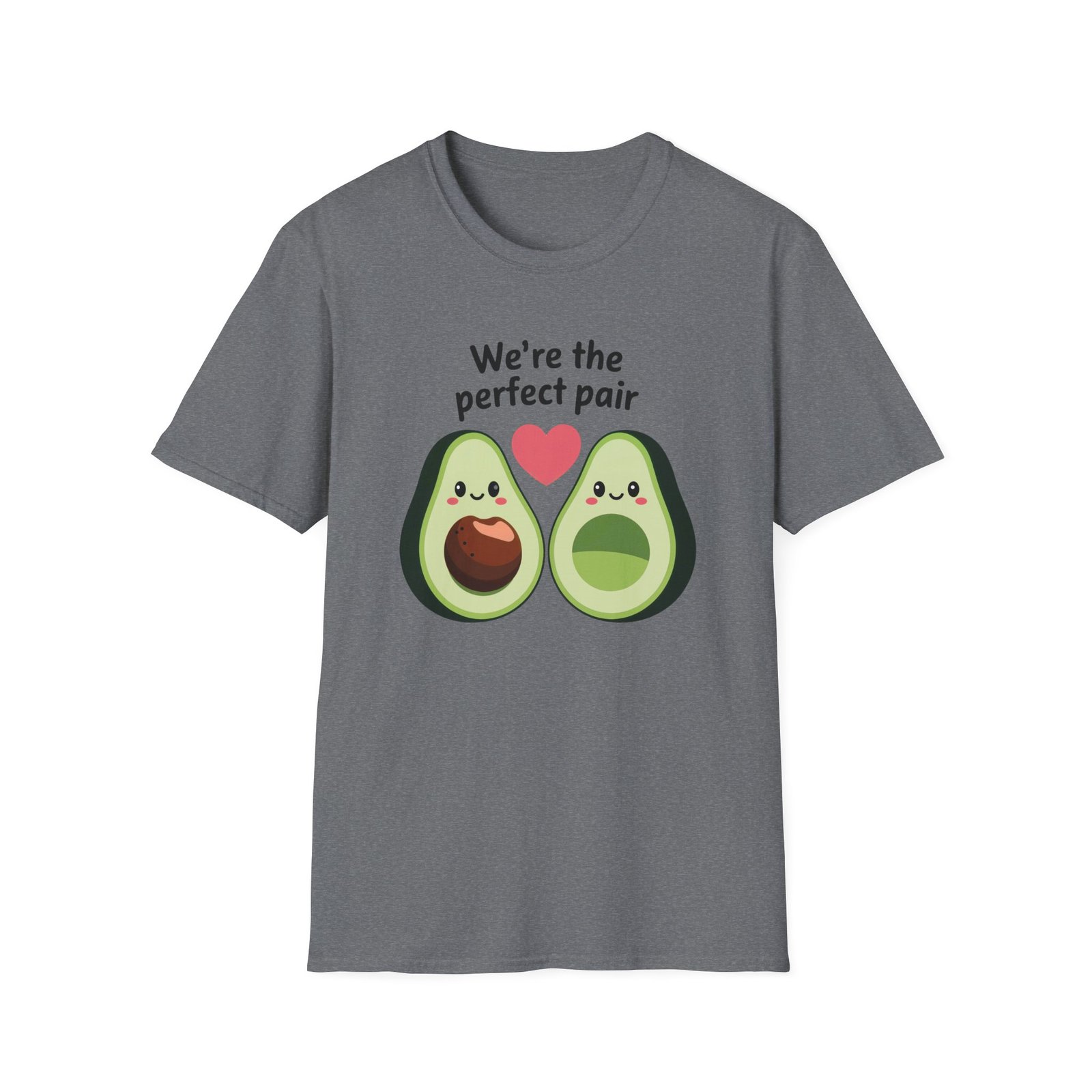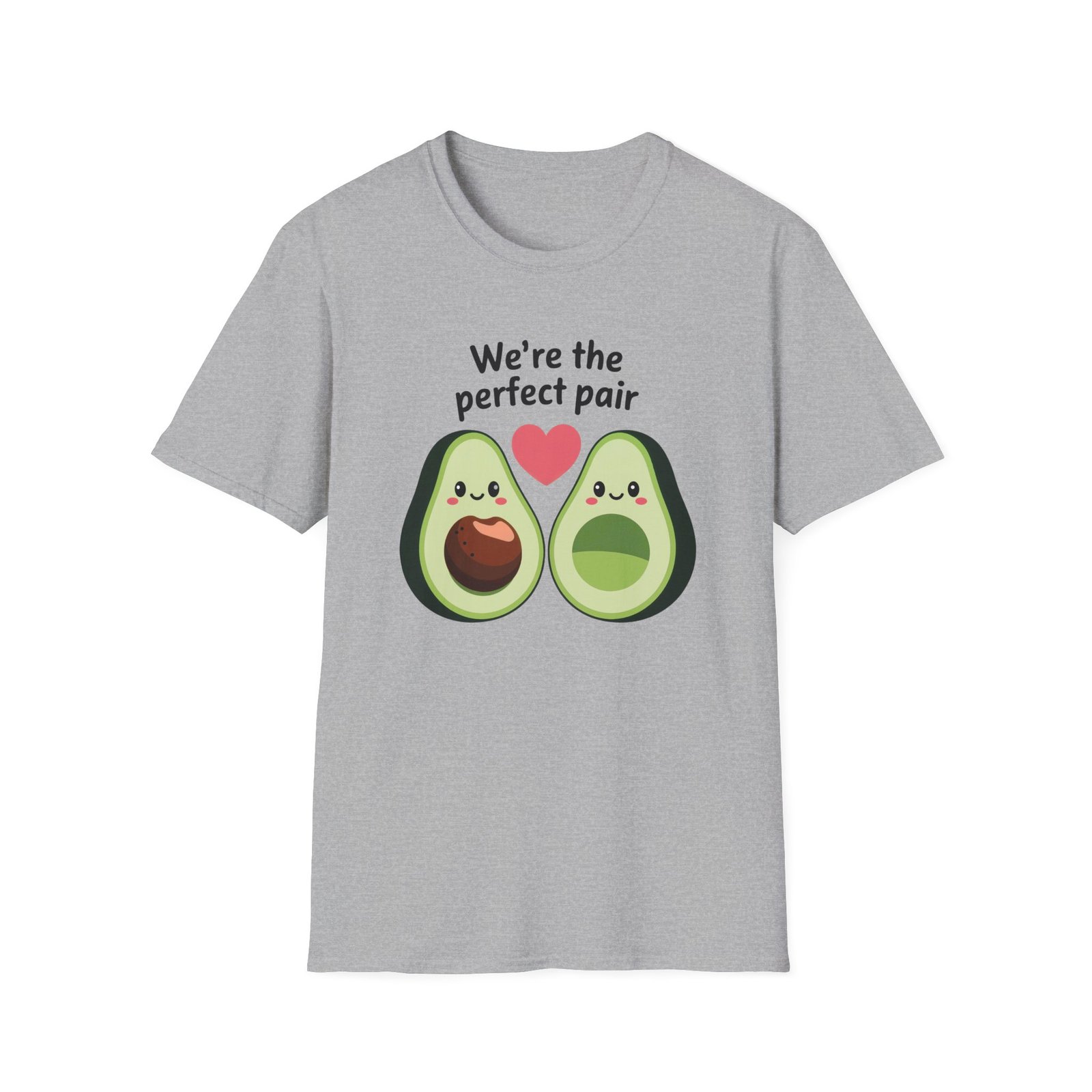 Introducing this whimsical Unisex Softstyle T-Shirt, perfect for those who enjoy a playful twist on classic apparel. With its charming avocado design and the phrase “We’re the perfect pair,” this shirt brings a light-hearted vibe to your wardrobe. Ideal for couples, friends, or avocado enthusiasts, it adds a fun touch to casual outings, quirky gatherings, and even themed parties. Dress it up with a jacket for date night or wear it solo for a laid-back weekend look. A versatile piece that makes for a delightful gift for birthdays, anniversaries, or just because. This t-shirt is perfect for anyone wanting to express their love in a unique and stylish way, making it great for romantic occasions, friendship celebrations, or simply enjoying life’s little joys.