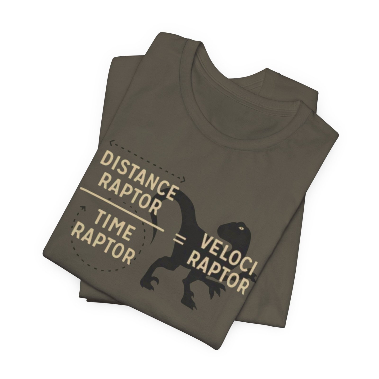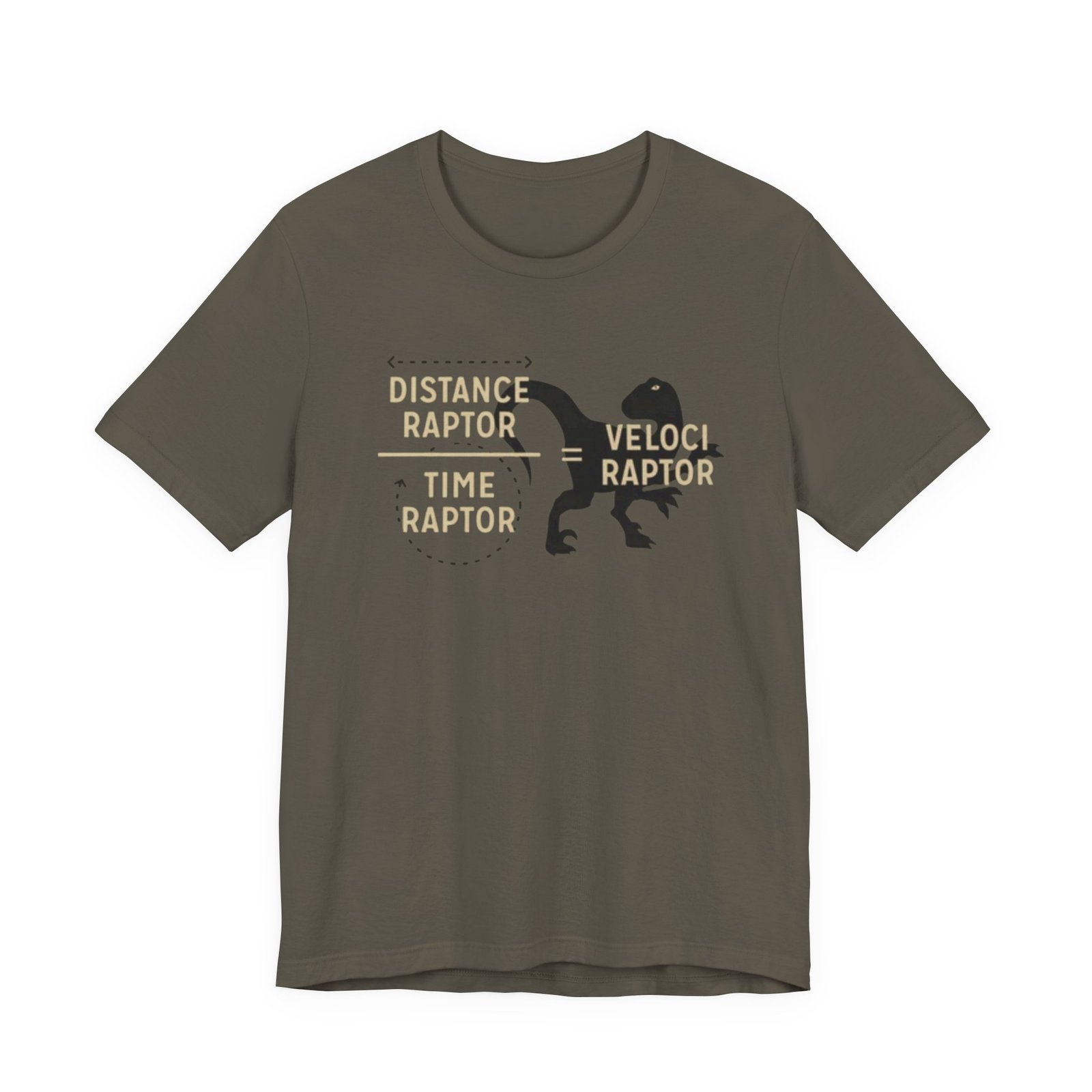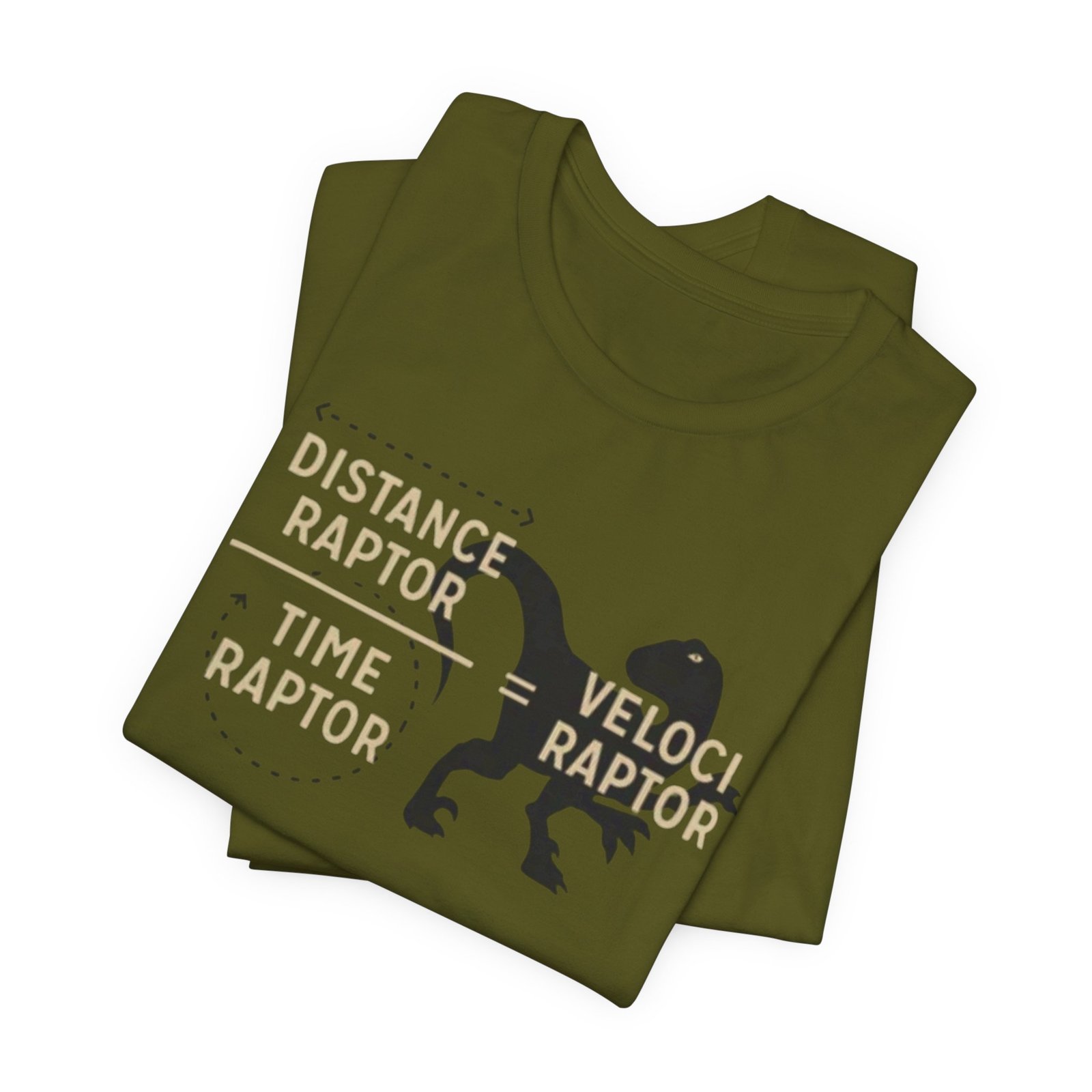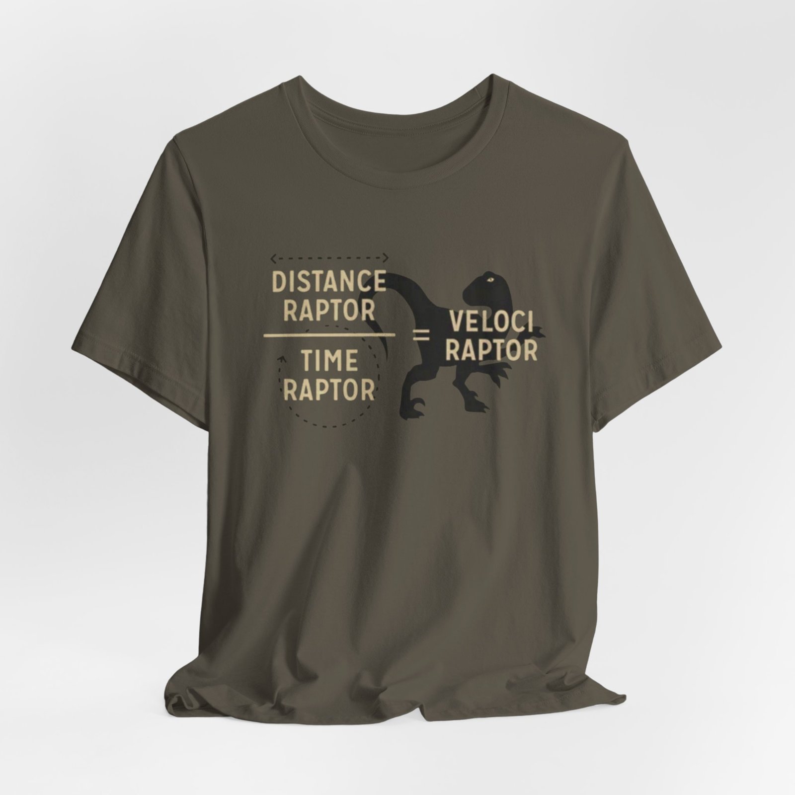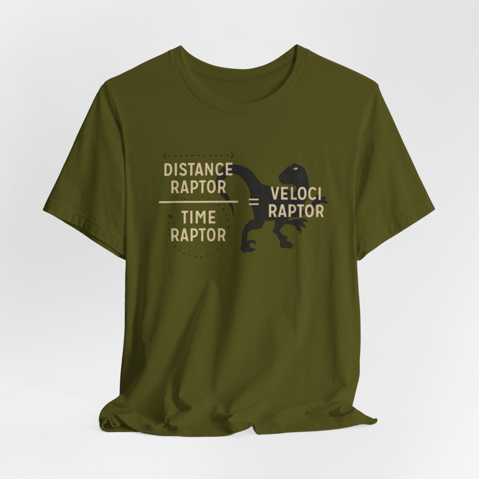 This soft, lightweight tee brings playful science humor to everyday wear. The muted olive fabric and minimalist raptor graphic keep the look low-key while the clever “distance raptor / time raptor / velociraptor” layout sparks smiles from fellow nerds. It layers easily under jackets or wears solo for relaxed weekends, lab days, or coffee runs. Built for comfort and durability, it settles into your rotation without shouting for attention—just steady, witty style that slips into daily life.