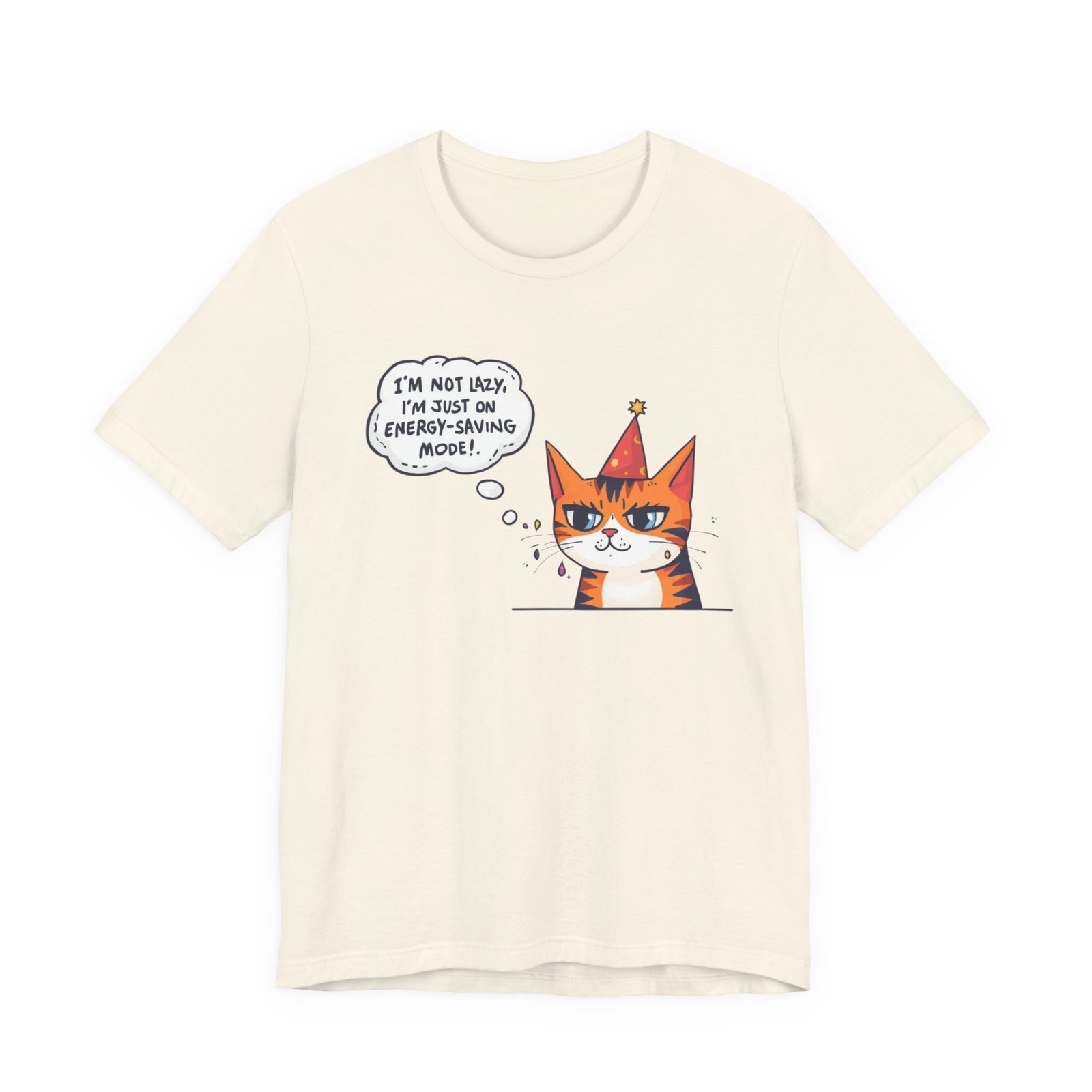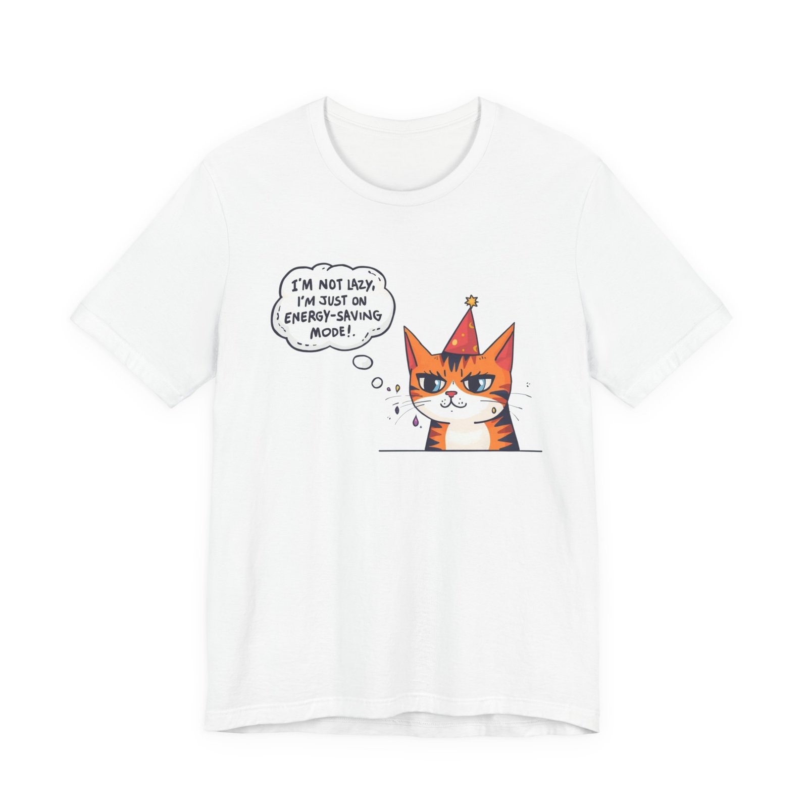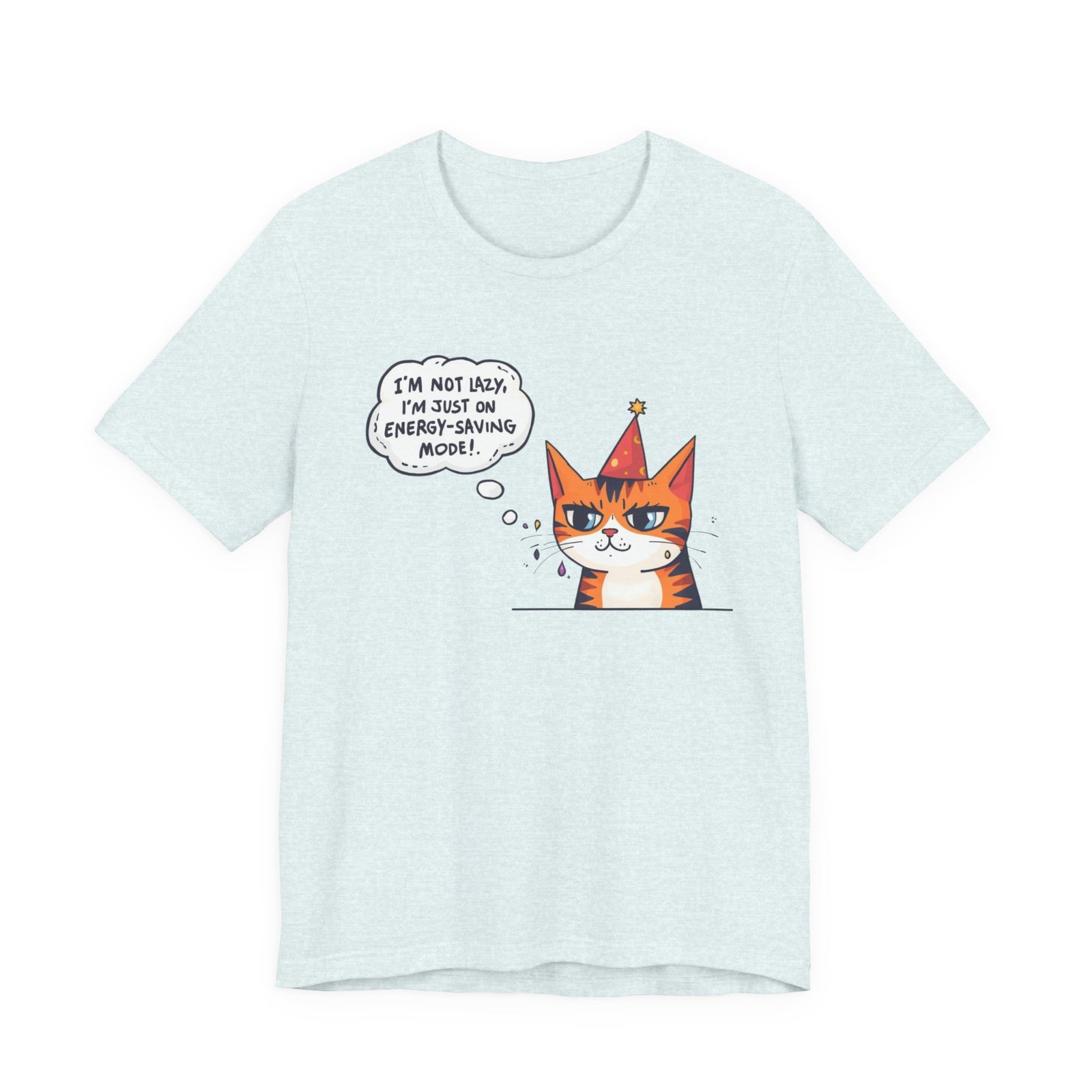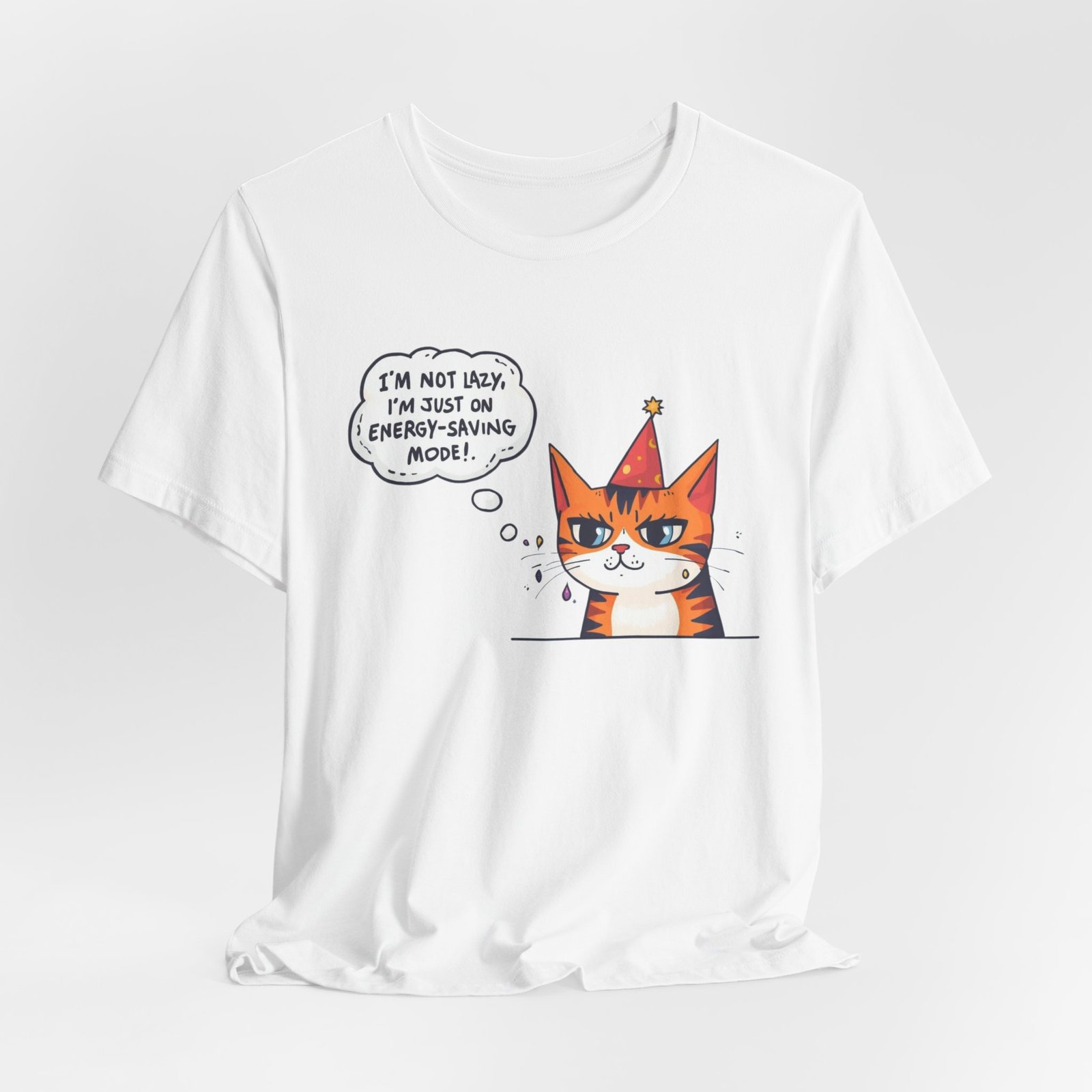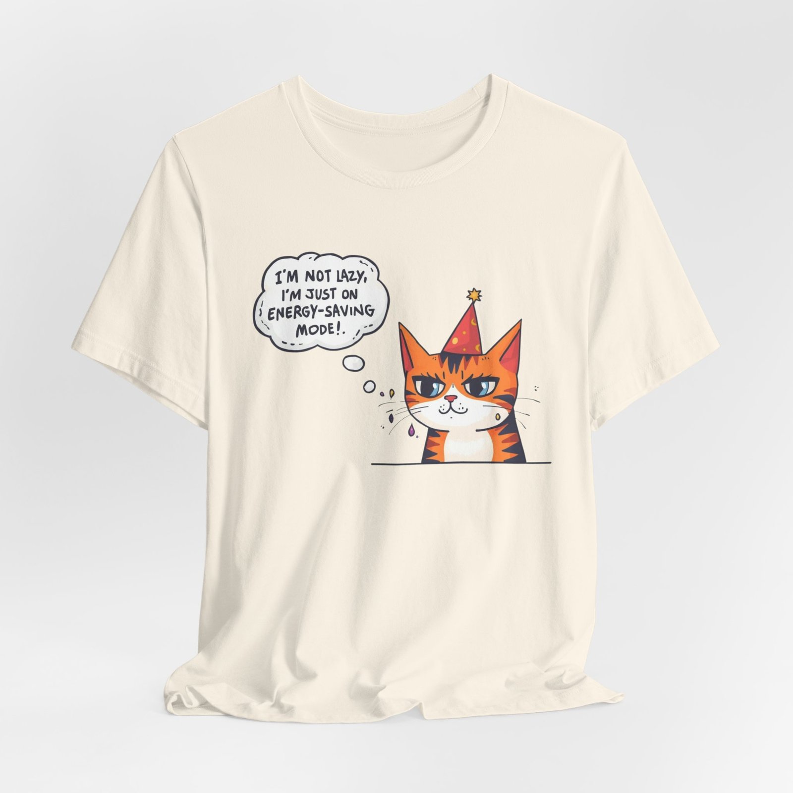 Energy-Saving Mood Cat T-Shirt | Cute Cartoon Cat Illustration