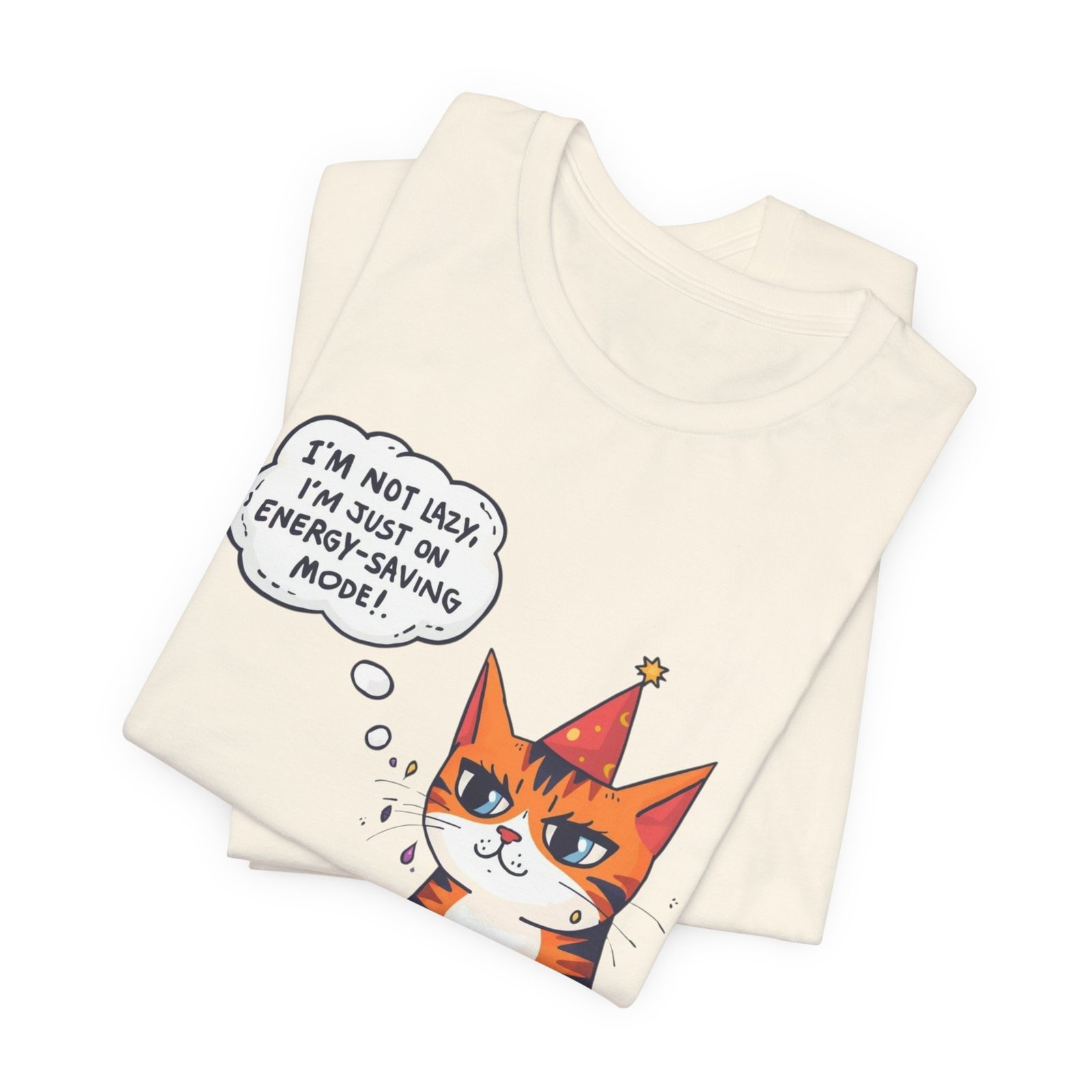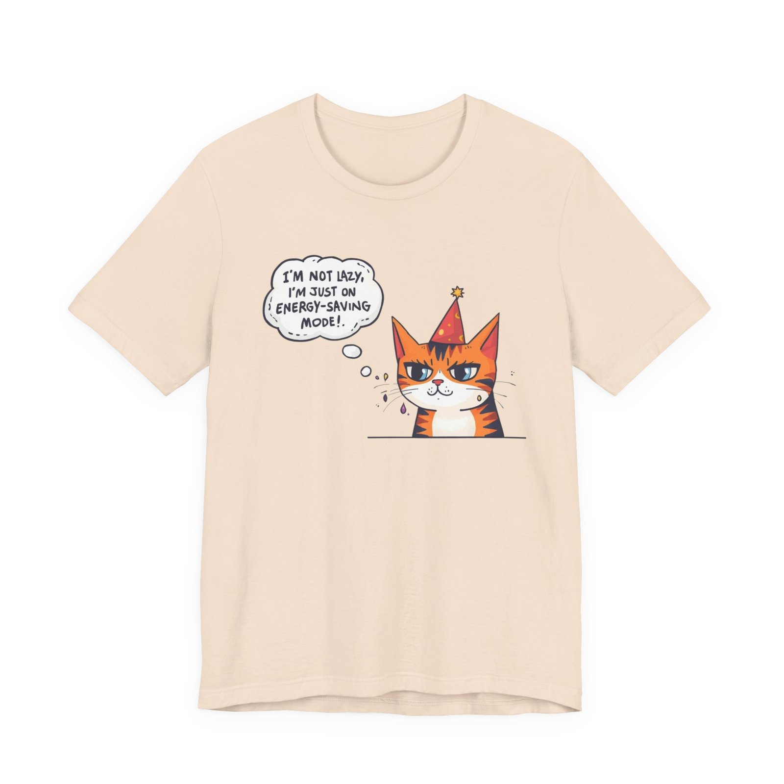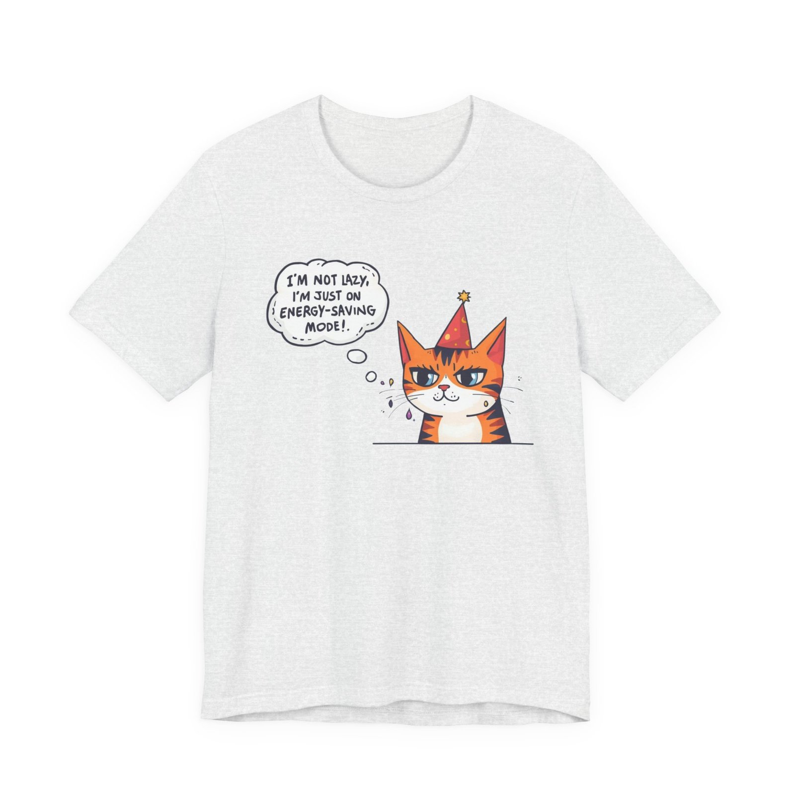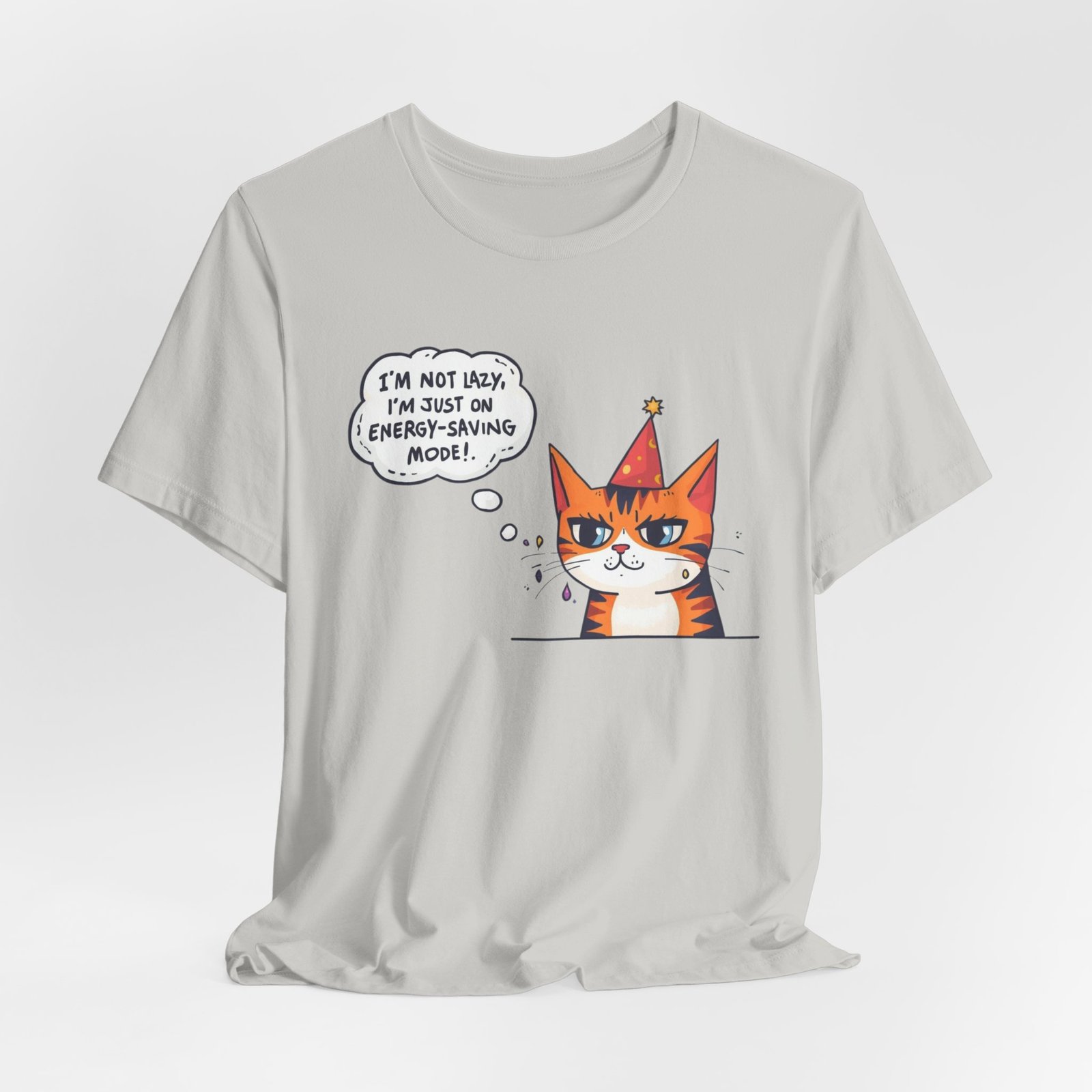Energy-Saving Mood Cat T-Shirt | Cute Cartoon Cat Illustration