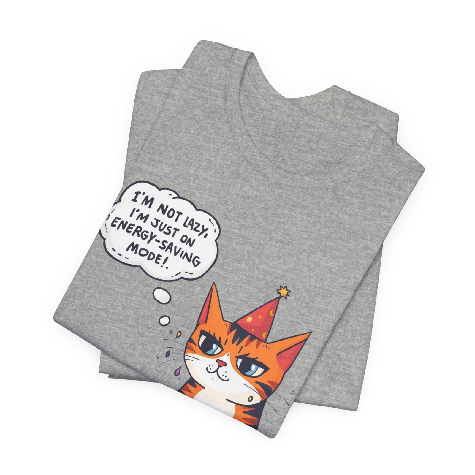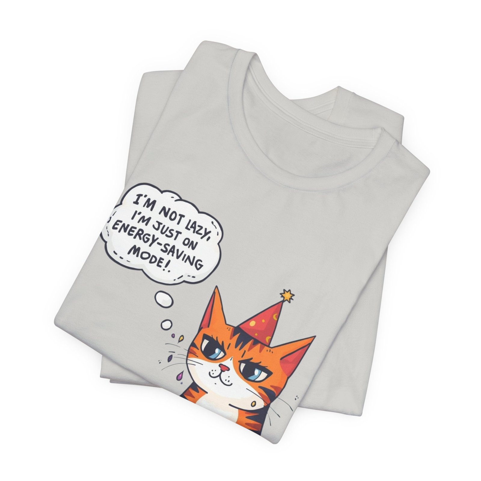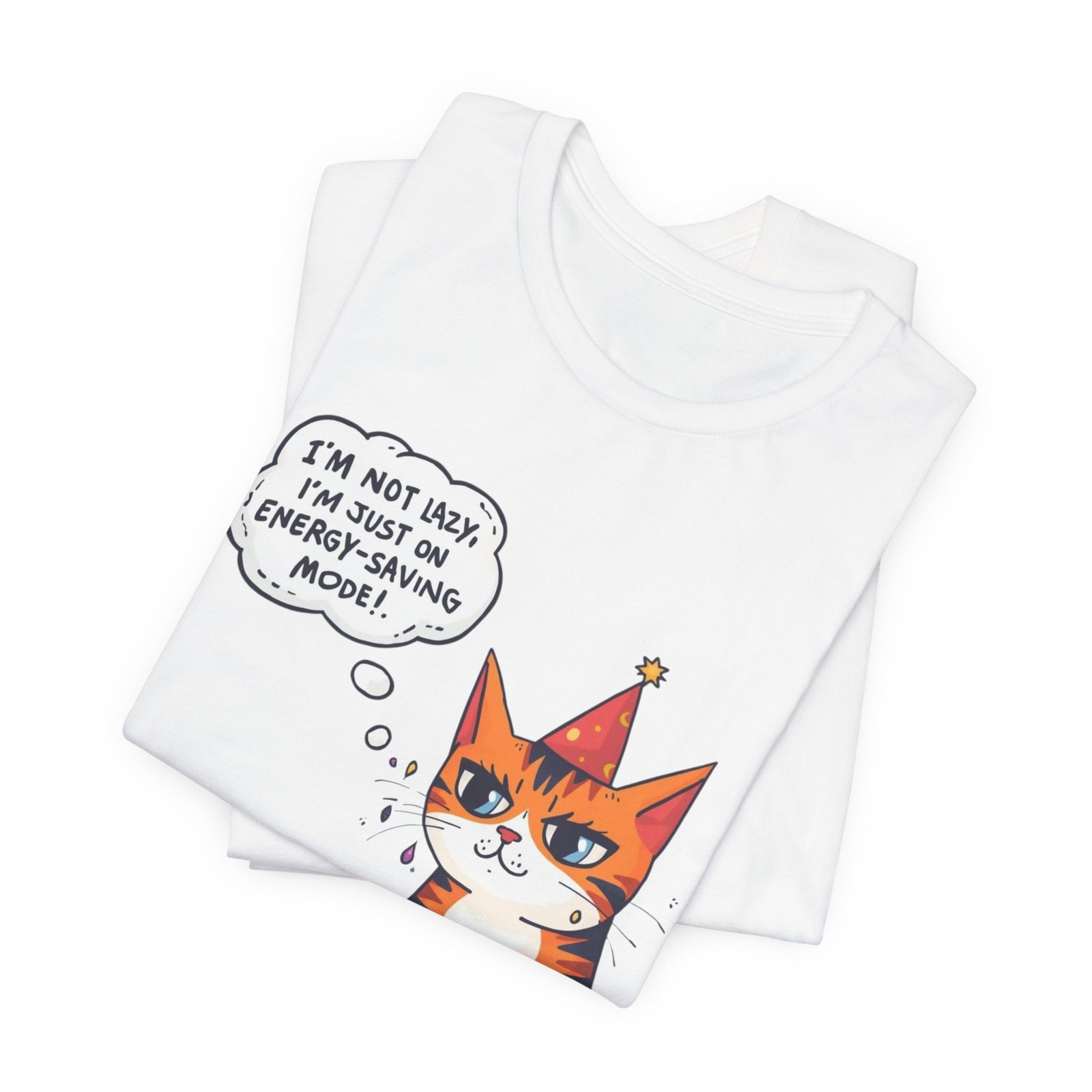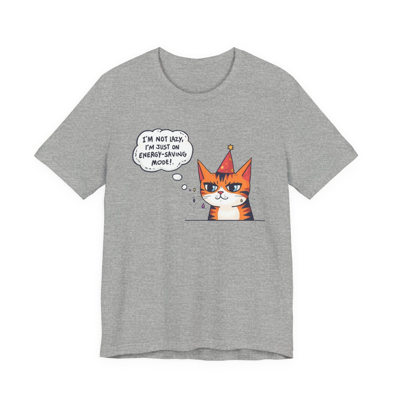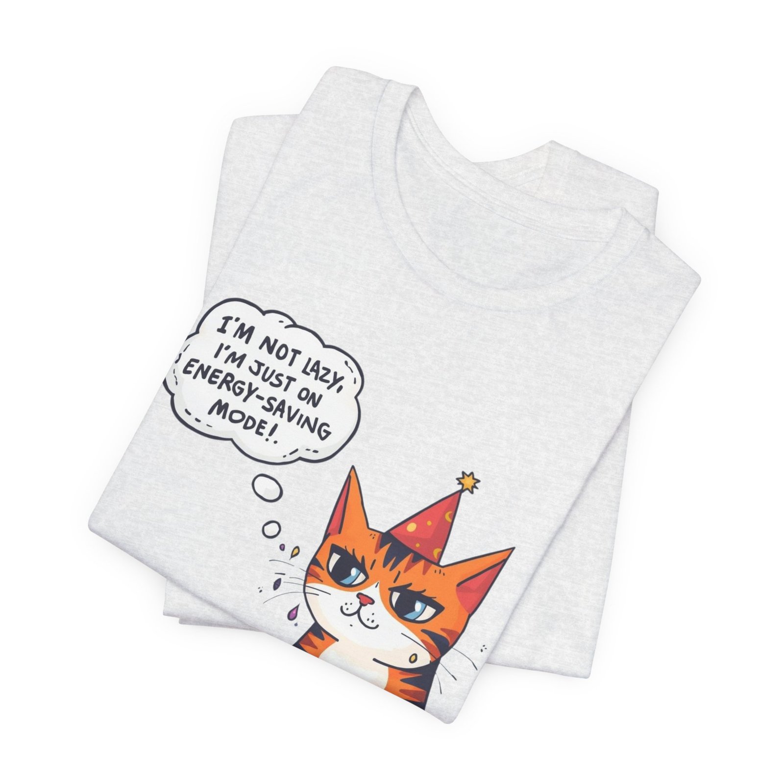 Energy-Saving Mood Cat T-Shirt | Cute Cartoon Cat Illustration