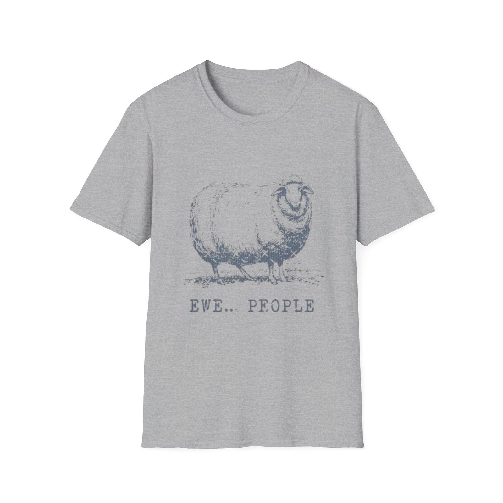 Soft, lived-in tee with a dry, hand-printed look: a softly detailed sheep sketch sits just above a wry caption that reads “Ewe… People.” The image has a vintage, slightly faded finish that reads like an old pen-and-ink illustration — quiet, wry, and a little world-weary. Wear it on slow weekends, at small gatherings, or when you want to announce your low-key social energy without saying a word. The lightweight ring-spun cotton drapes gently and breathes easily; the crew neck and classic cut keep the silhouette familiar and easy to layer under a flannel or over a chambray. Small, thoughtful details — a tear-away label, ribbed collar, and stabilized shoulder seams — make it comfortable for all-day wear. The understated design speaks to people who prefer dry humor and simple, rustic art; it snaps into place next to a favorite pair of jeans, a favorite mug, and a quiet porch swing.