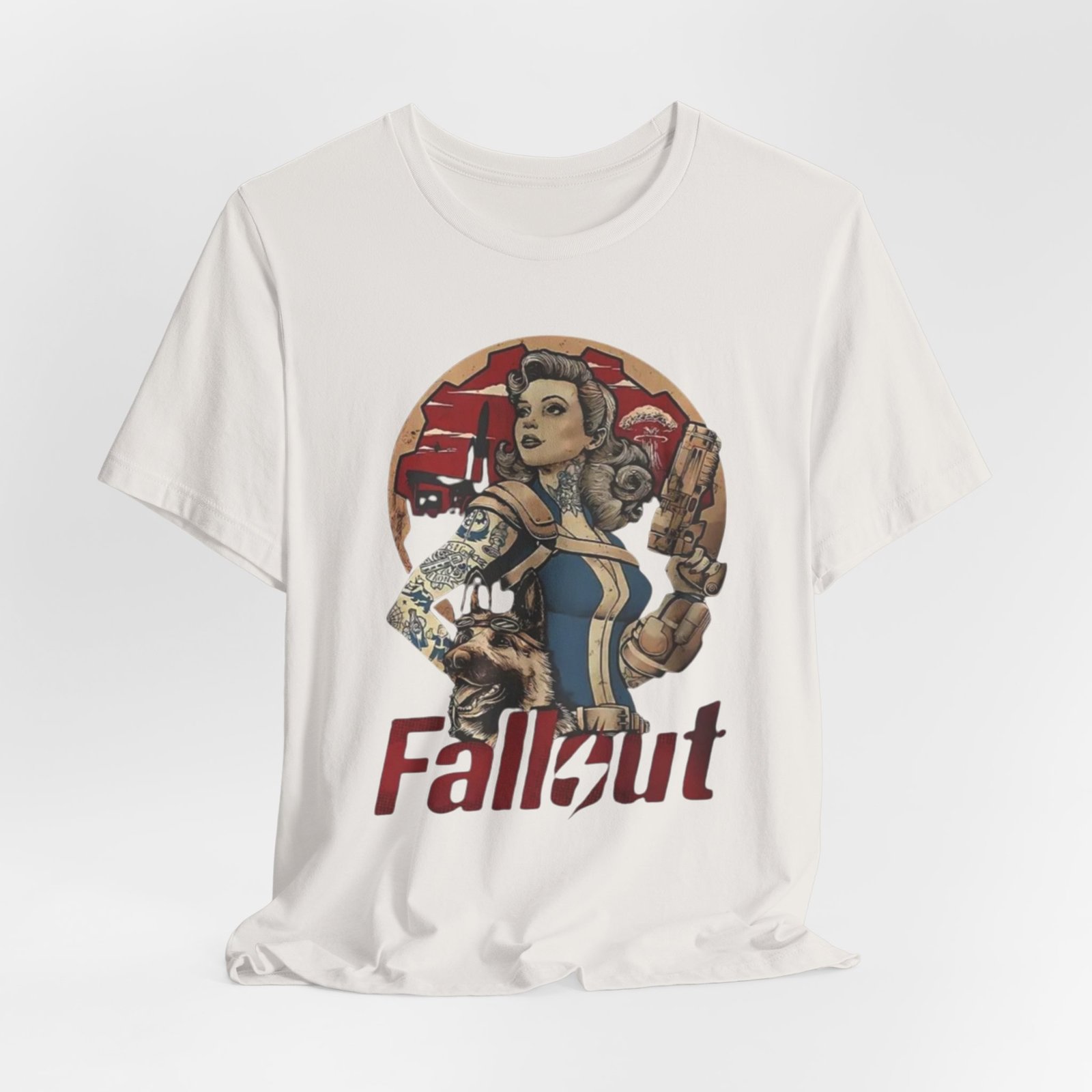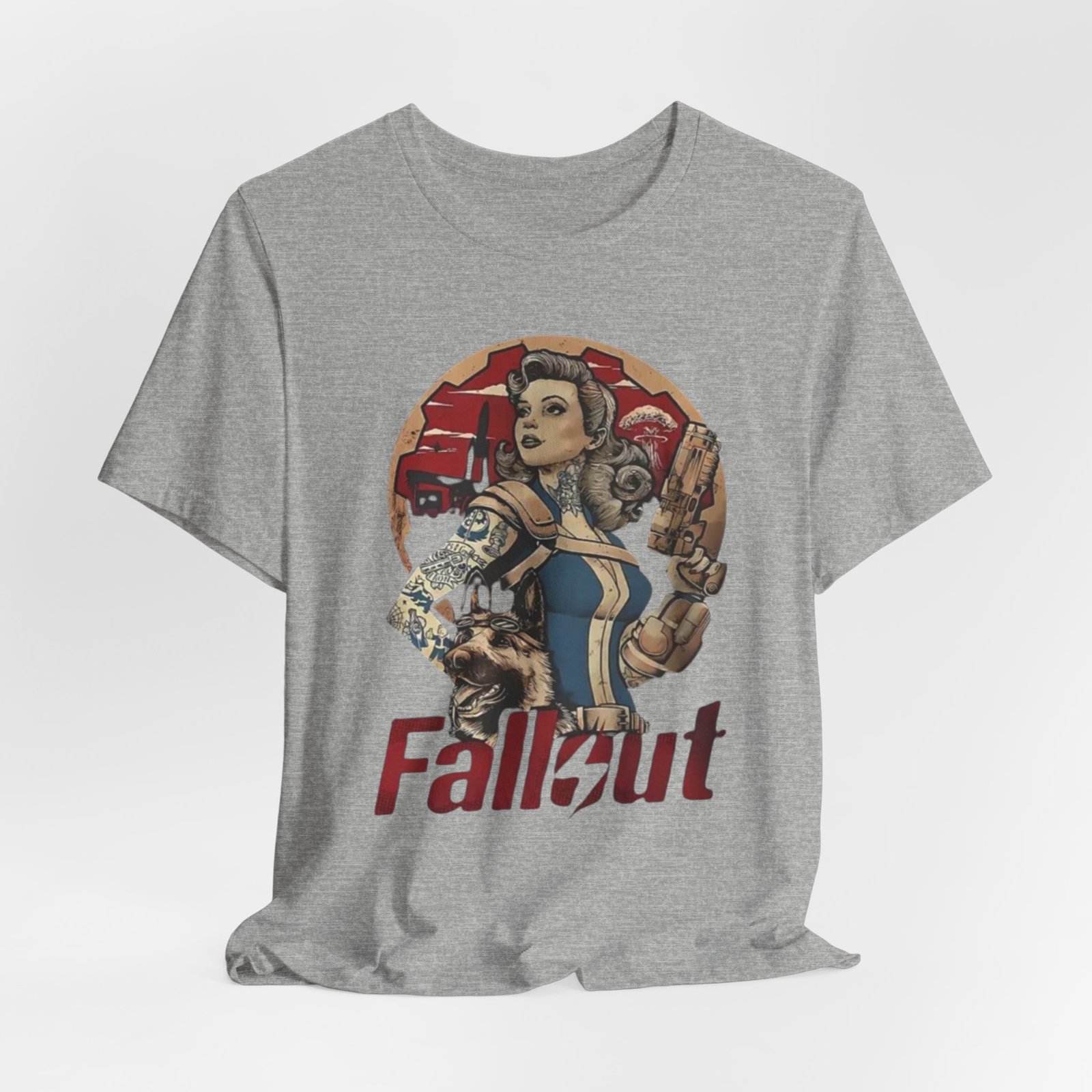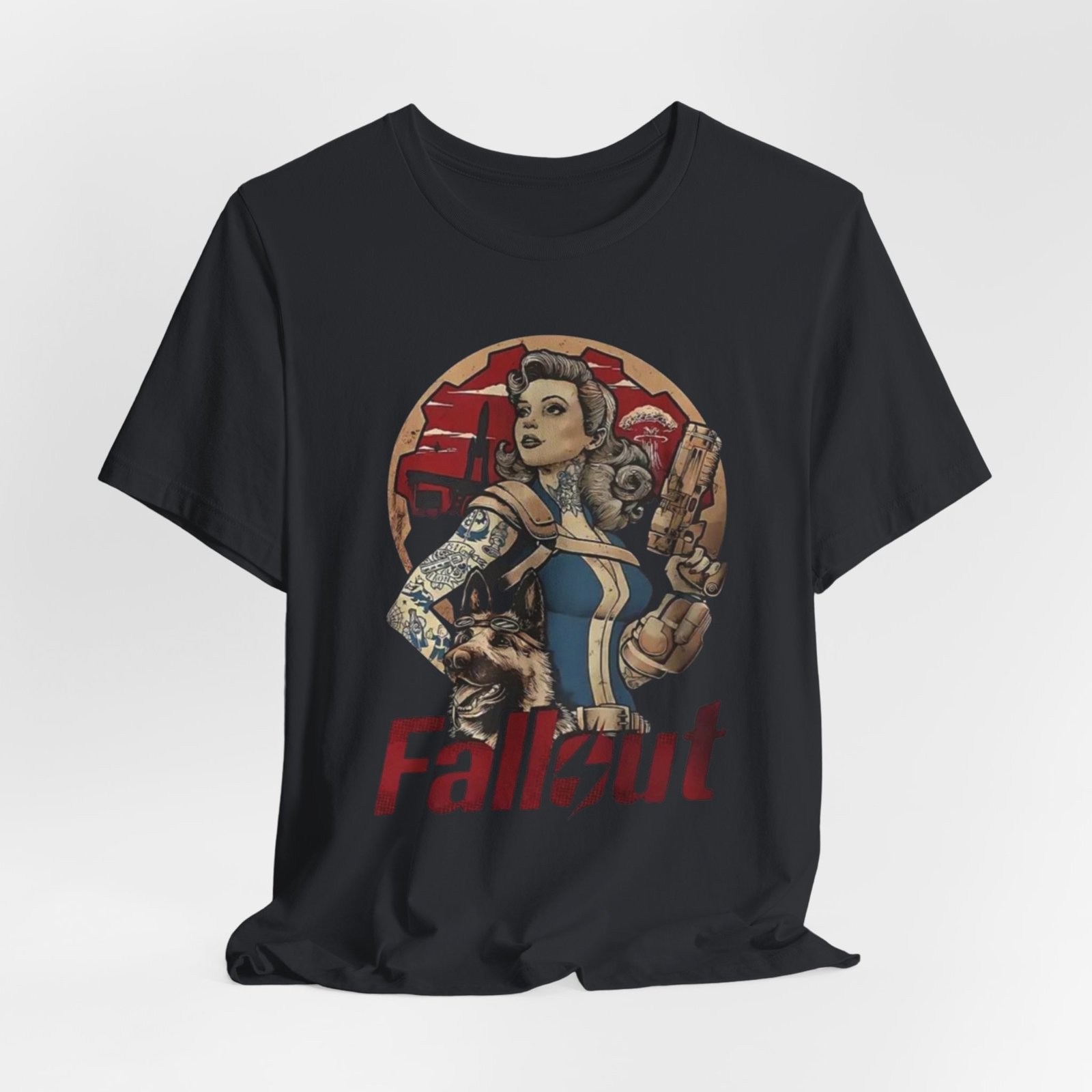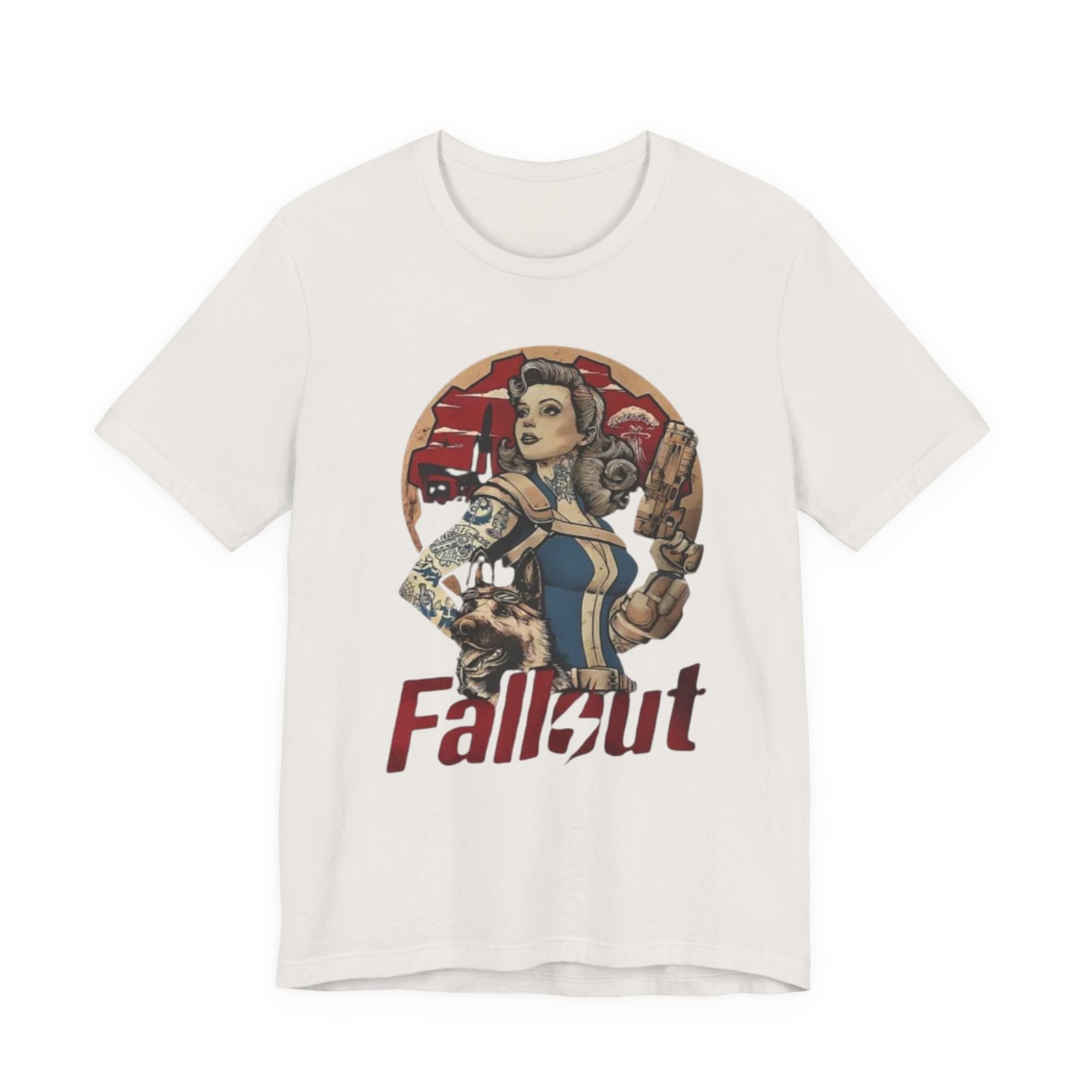 This tee channels retro post-apocalypse flair with soft, lived-in comfort. The artwork — a vintage pinup-style Vault Dweller surrounded by rugged, Fallout-inspired elements — sits confidently on a muted, dust-toned shirt that feels like it’s already part of your rotation. Lightweight Airlume combed cotton and a classic crew neckline make it easy to layer under a jacket or wear on its own while exploring conventions, game nights, or casual days out. Thoughtful construction (side seams, ribbed collar, shoulder tape) keeps the fit neat after repeated wear. The muted palette and distressed-inspired print let you show fandom without shouting it, whether you’re meeting friends for a co-op session or wandering a weekend market.