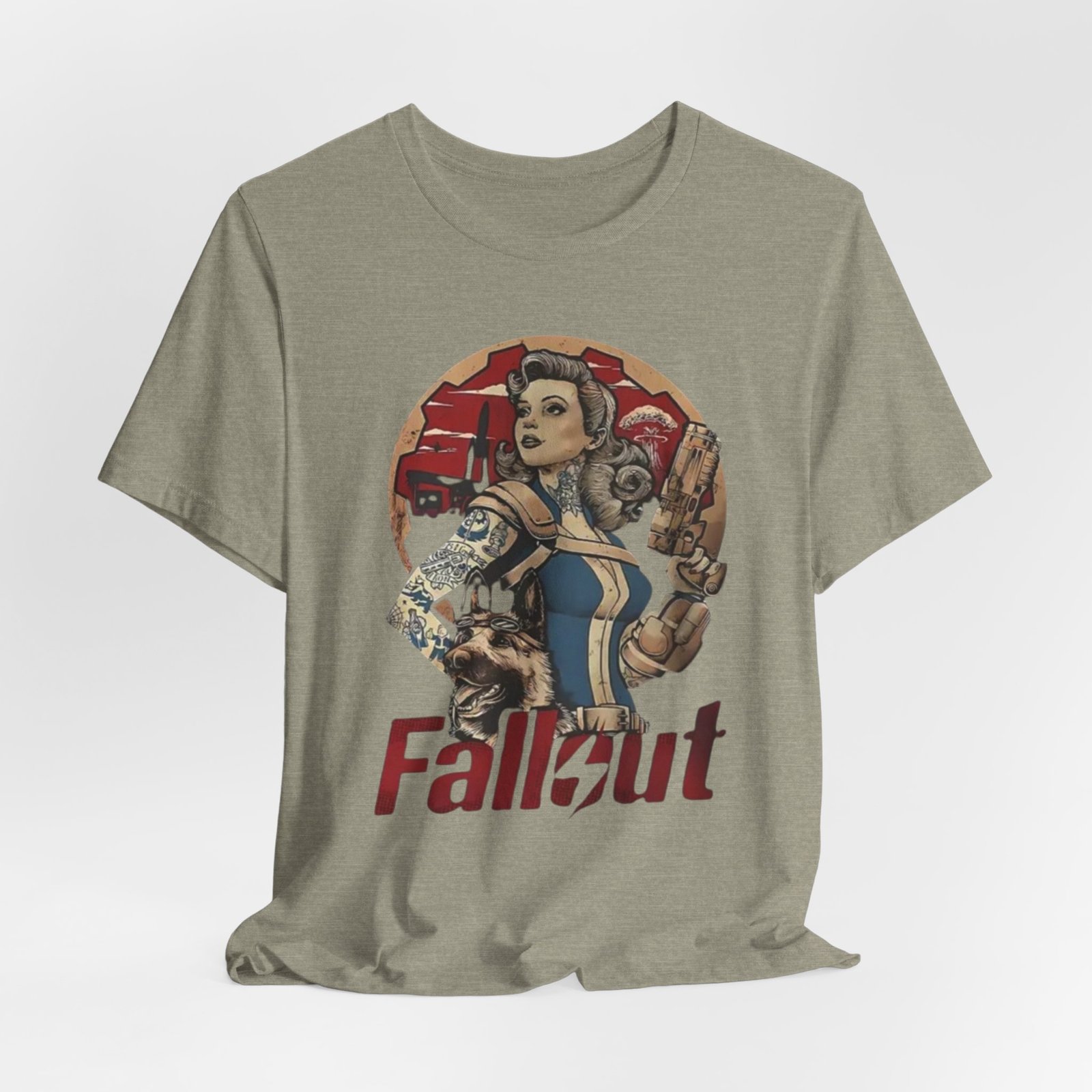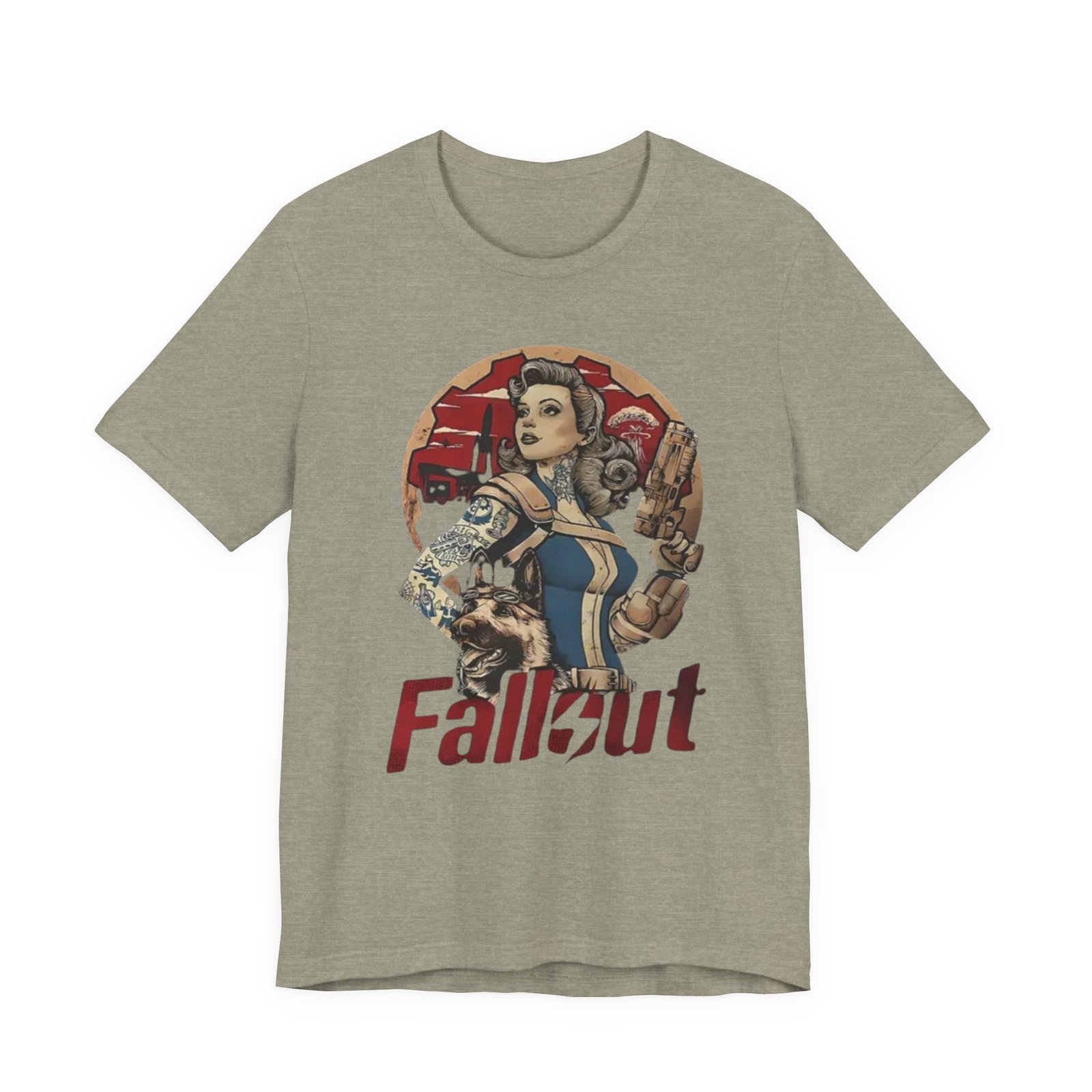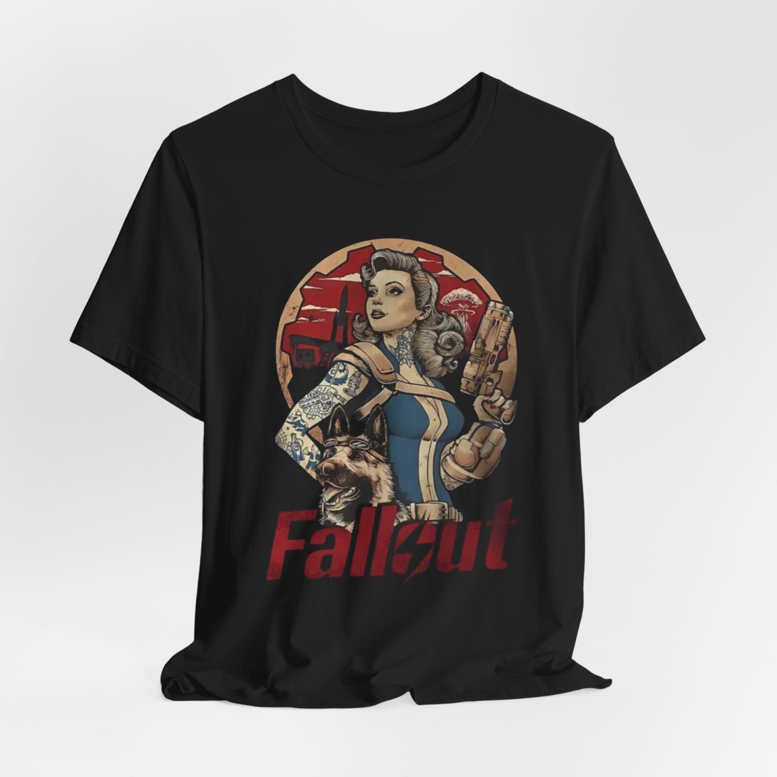 This tee channels retro post-apocalypse flair with soft, lived-in comfort. The artwork — a vintage pinup-style Vault Dweller surrounded by rugged, Fallout-inspired elements — sits confidently on a muted, dust-toned shirt that feels like it’s already part of your rotation. Lightweight Airlume combed cotton and a classic crew neckline make it easy to layer under a jacket or wear on its own while exploring conventions, game nights, or casual days out. Thoughtful construction (side seams, ribbed collar, shoulder tape) keeps the fit neat after repeated wear. The muted palette and distressed-inspired print let you show fandom without shouting it, whether you’re meeting friends for a co-op session or wandering a weekend market.