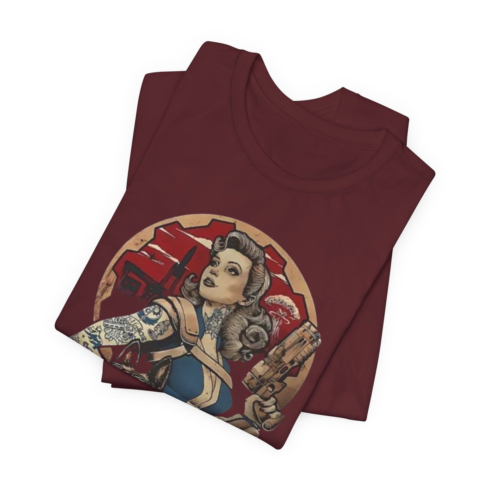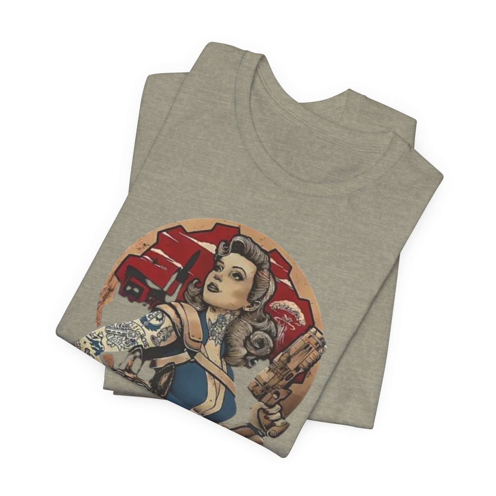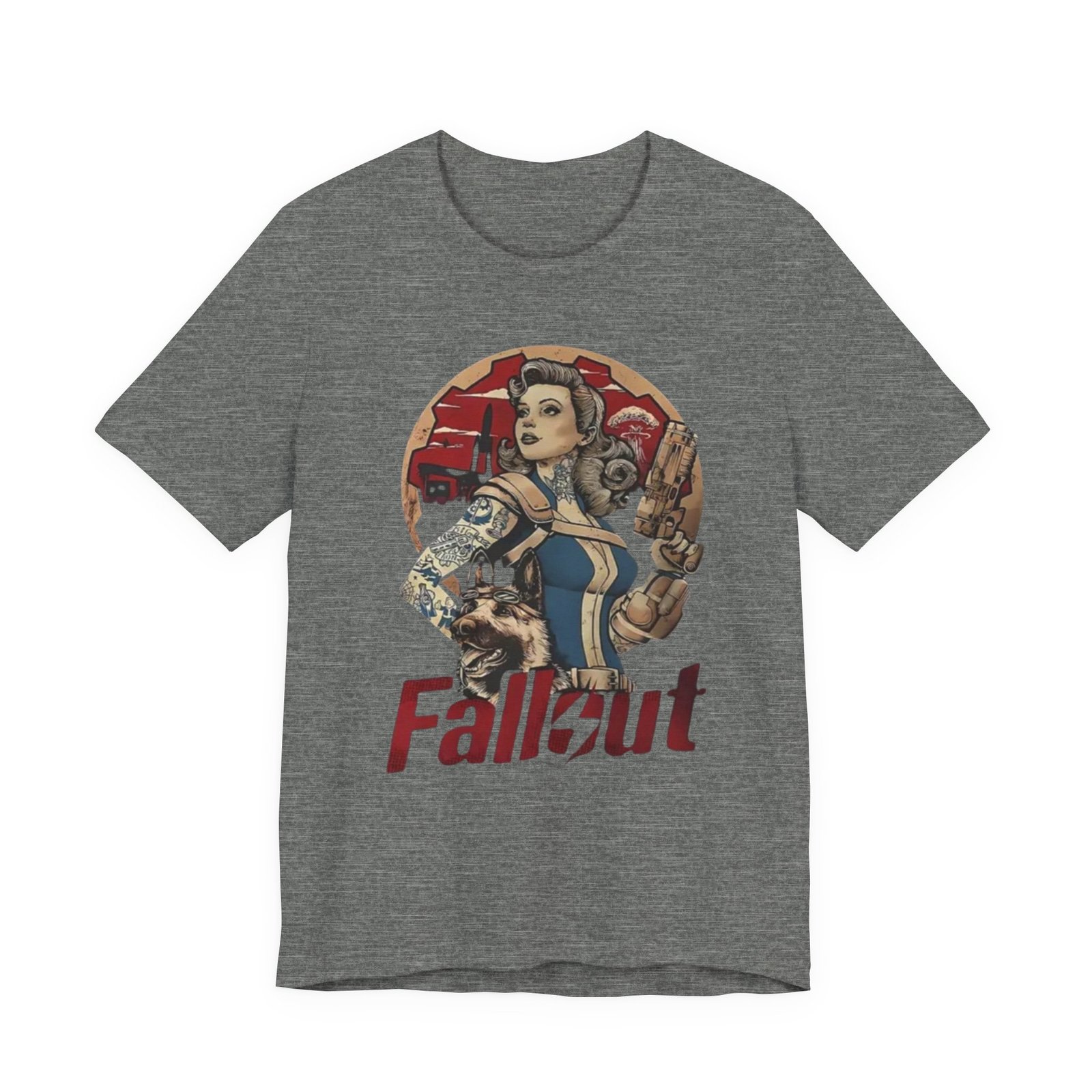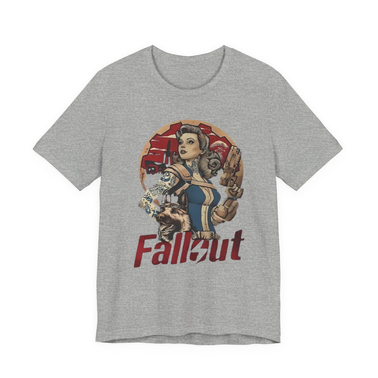 This tee channels retro post-apocalypse flair with soft, lived-in comfort. The artwork — a vintage pinup-style Vault Dweller surrounded by rugged, Fallout-inspired elements — sits confidently on a muted, dust-toned shirt that feels like it’s already part of your rotation. Lightweight Airlume combed cotton and a classic crew neckline make it easy to layer under a jacket or wear on its own while exploring conventions, game nights, or casual days out. Thoughtful construction (side seams, ribbed collar, shoulder tape) keeps the fit neat after repeated wear. The muted palette and distressed-inspired print let you show fandom without shouting it, whether you’re meeting friends for a co-op session or wandering a weekend market.
