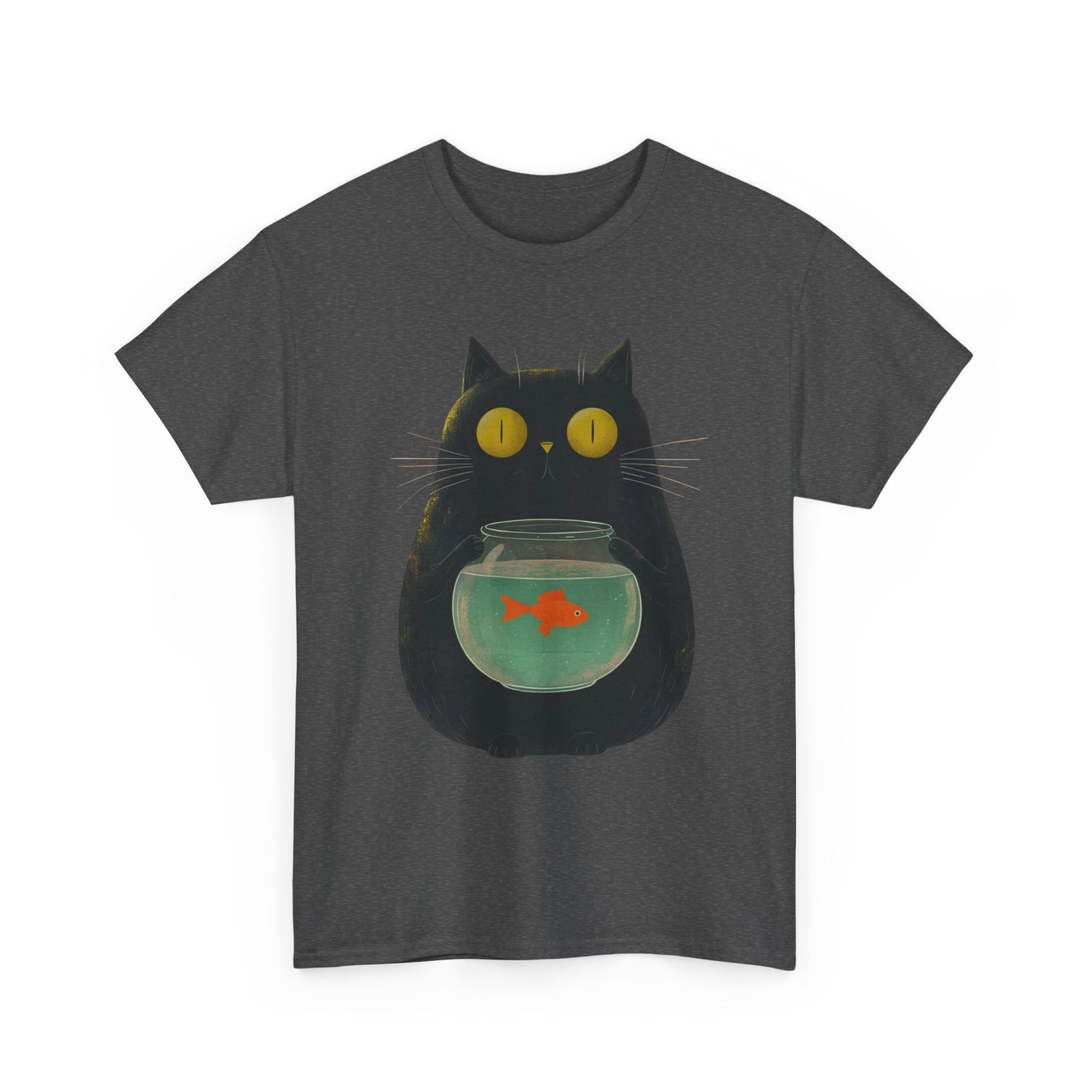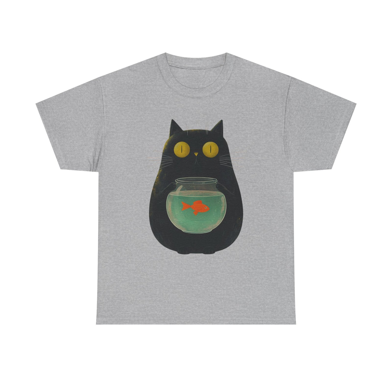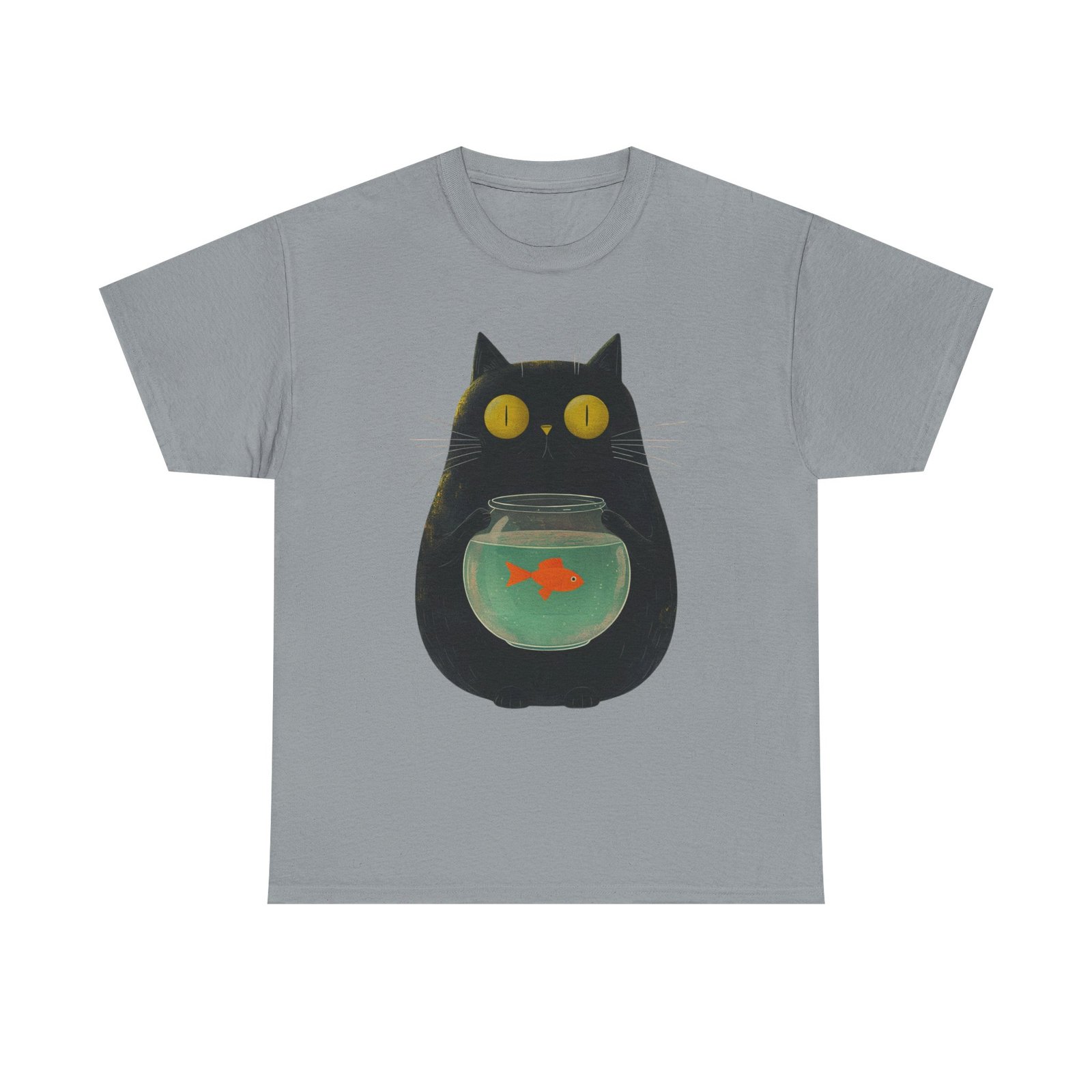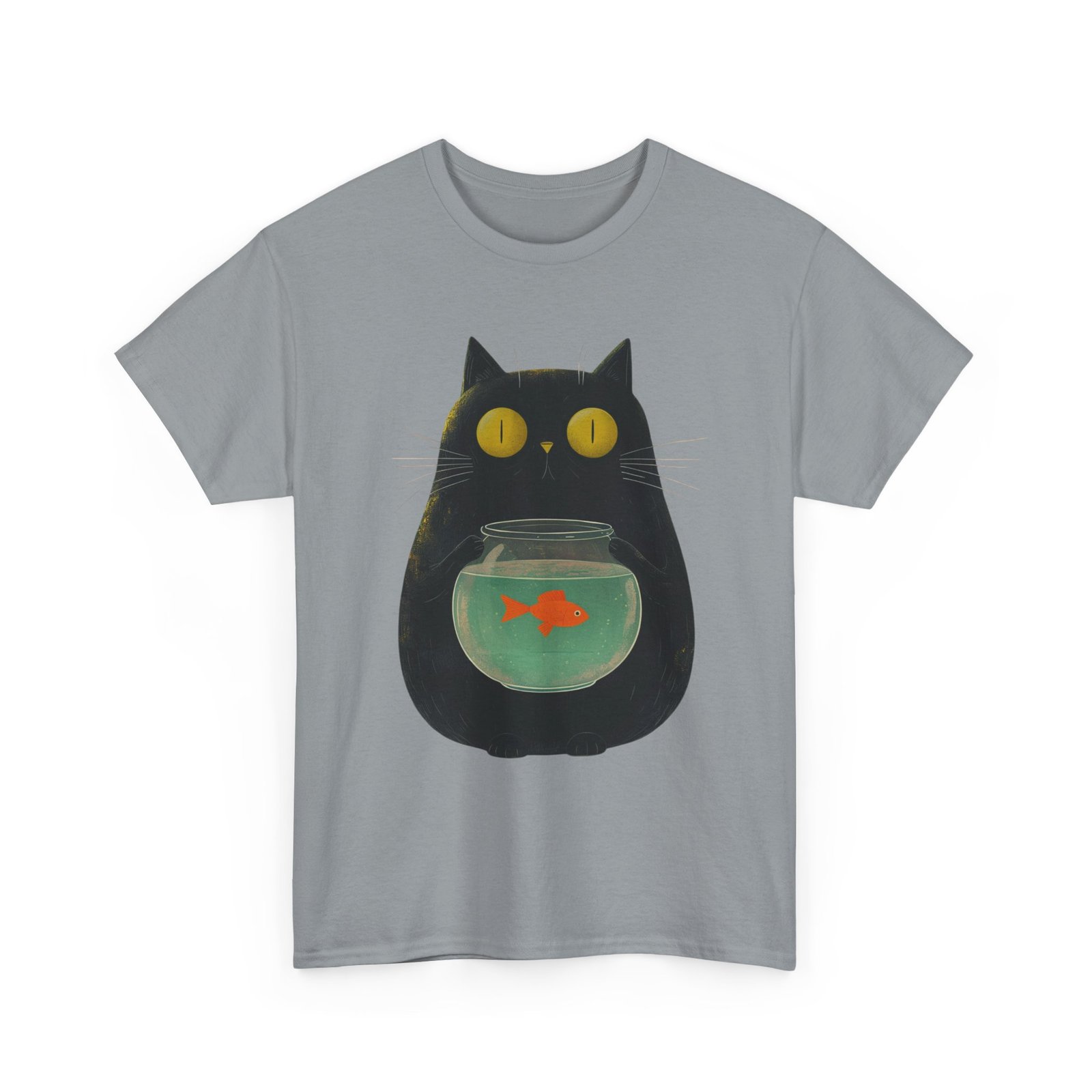 This funny cat T-shirt features a playful design of a kitty holding a fish bowl, adding a fun and quirky touch to any outfit. Perfect for cat lovers and those who enjoy a touch of humor in their wardrobe. Ideal for casual wear, lounging at home, or as a unique gift for cat enthusiasts. Suitable for occasions such as casual outings, cat-themed events, or just adding a touch of personality to everyday attire.