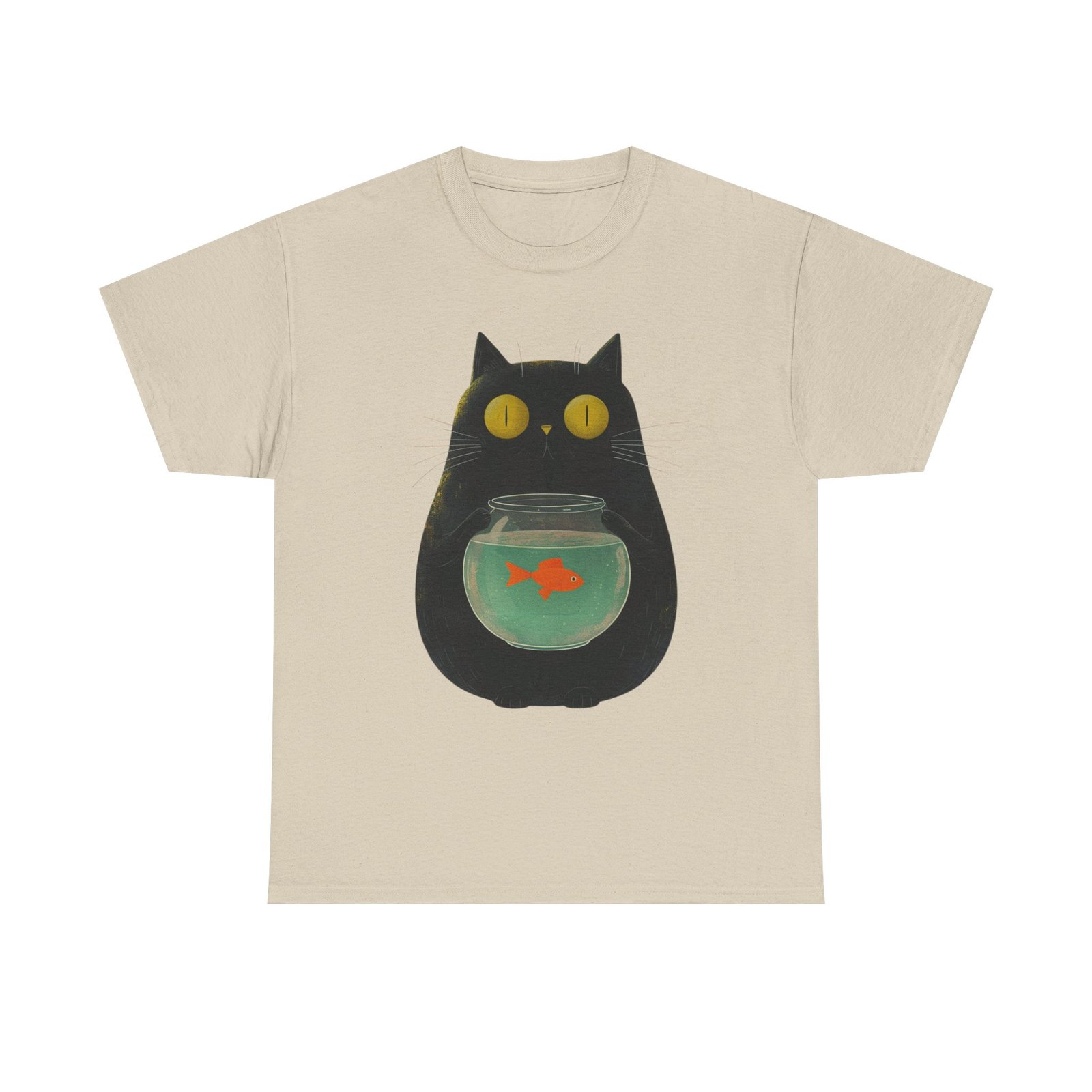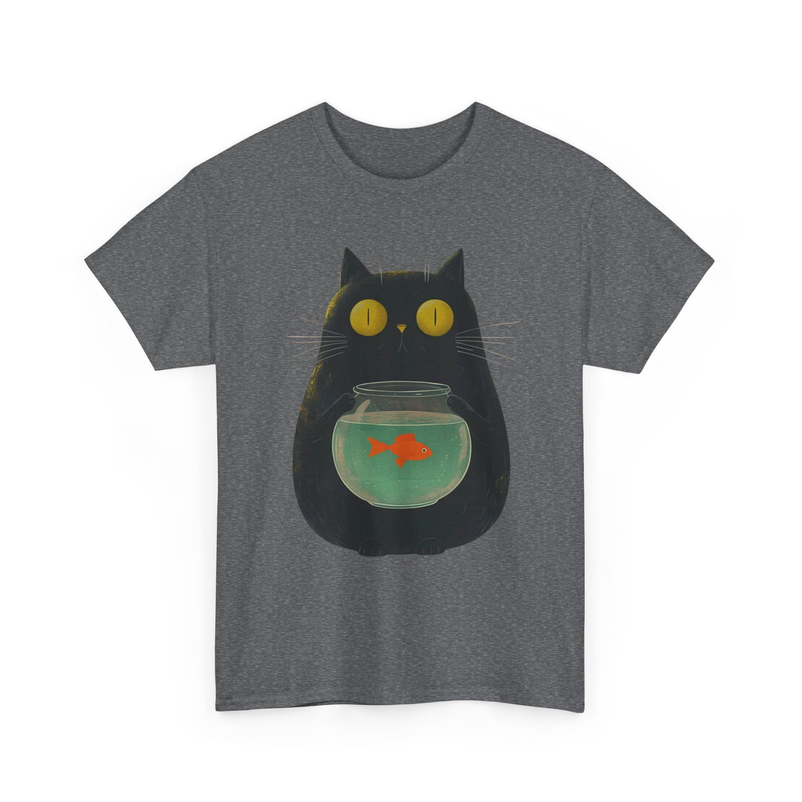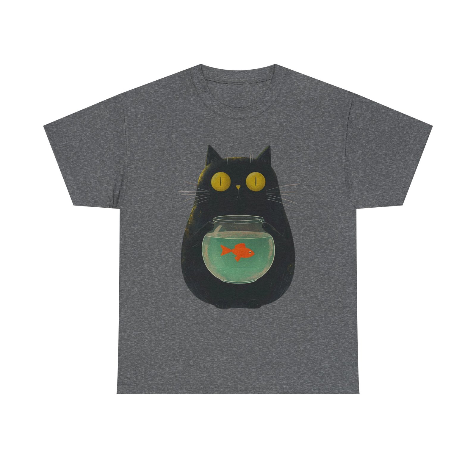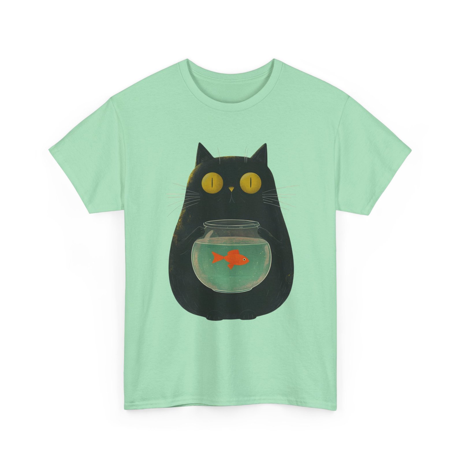 This funny cat T-shirt features a playful design of a kitty holding a fish bowl, adding a fun and quirky touch to any outfit. Perfect for cat lovers and those who enjoy a touch of humor in their wardrobe. Ideal for casual wear, lounging at home, or as a unique gift for cat enthusiasts. Suitable for occasions such as casual outings, cat-themed events, or just adding a touch of personality to everyday attire.