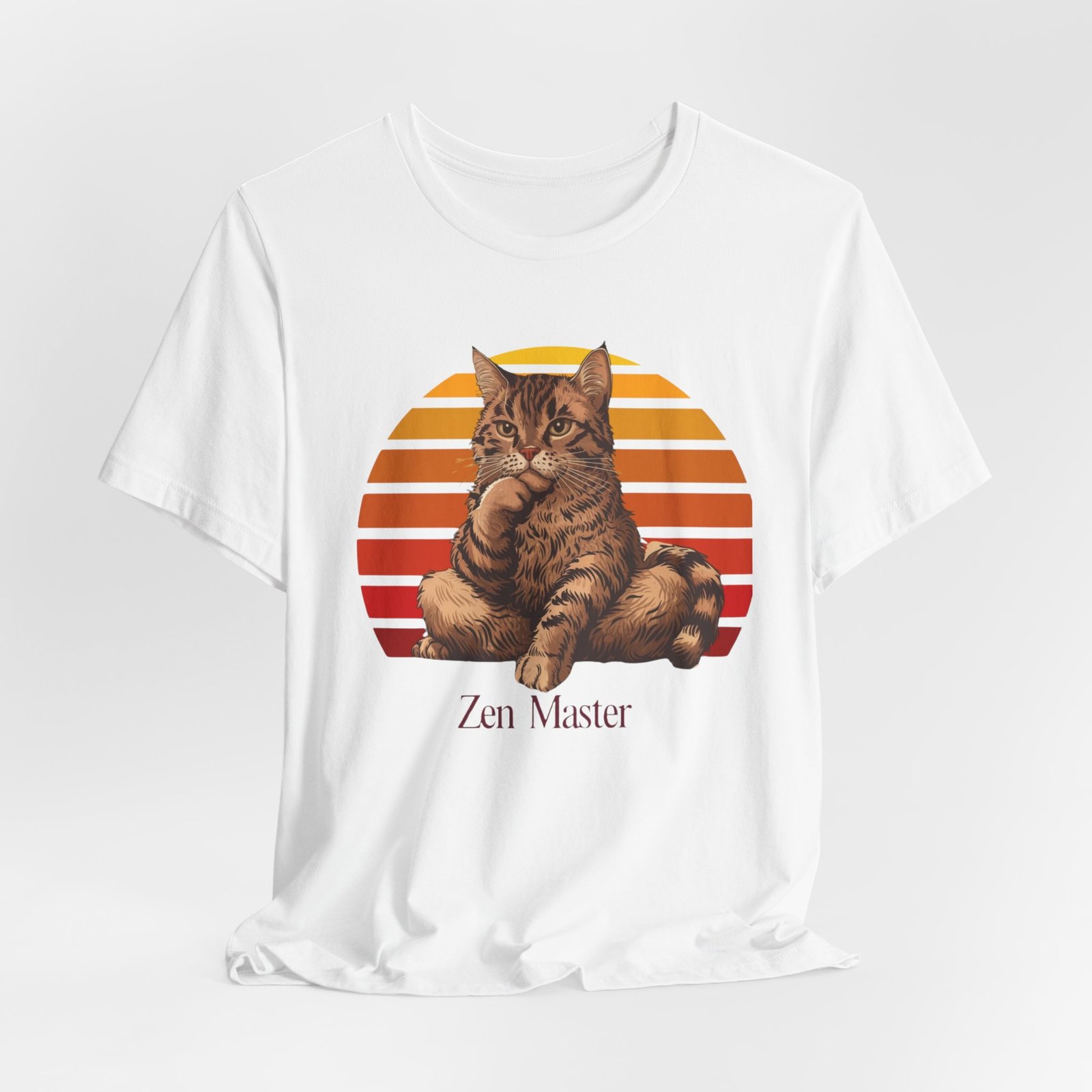 Zen master cat T-shirt, funny cat tee, offering a relaxed and humorous vibe perfect for cat lovers and those seeking a touch of zen in their wardrobe. Ideal for casual wear or as a conversation starter during gatherings, birthdays, or everyday wear.