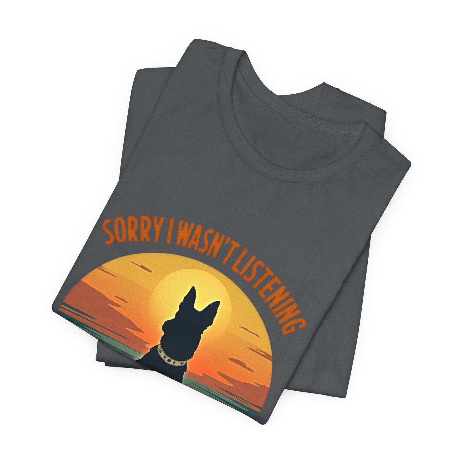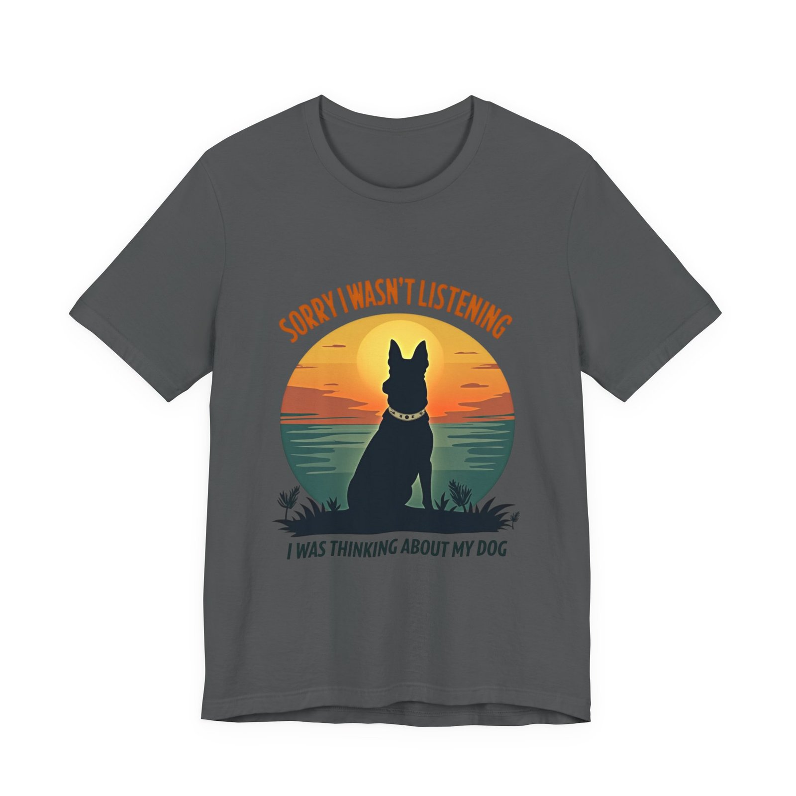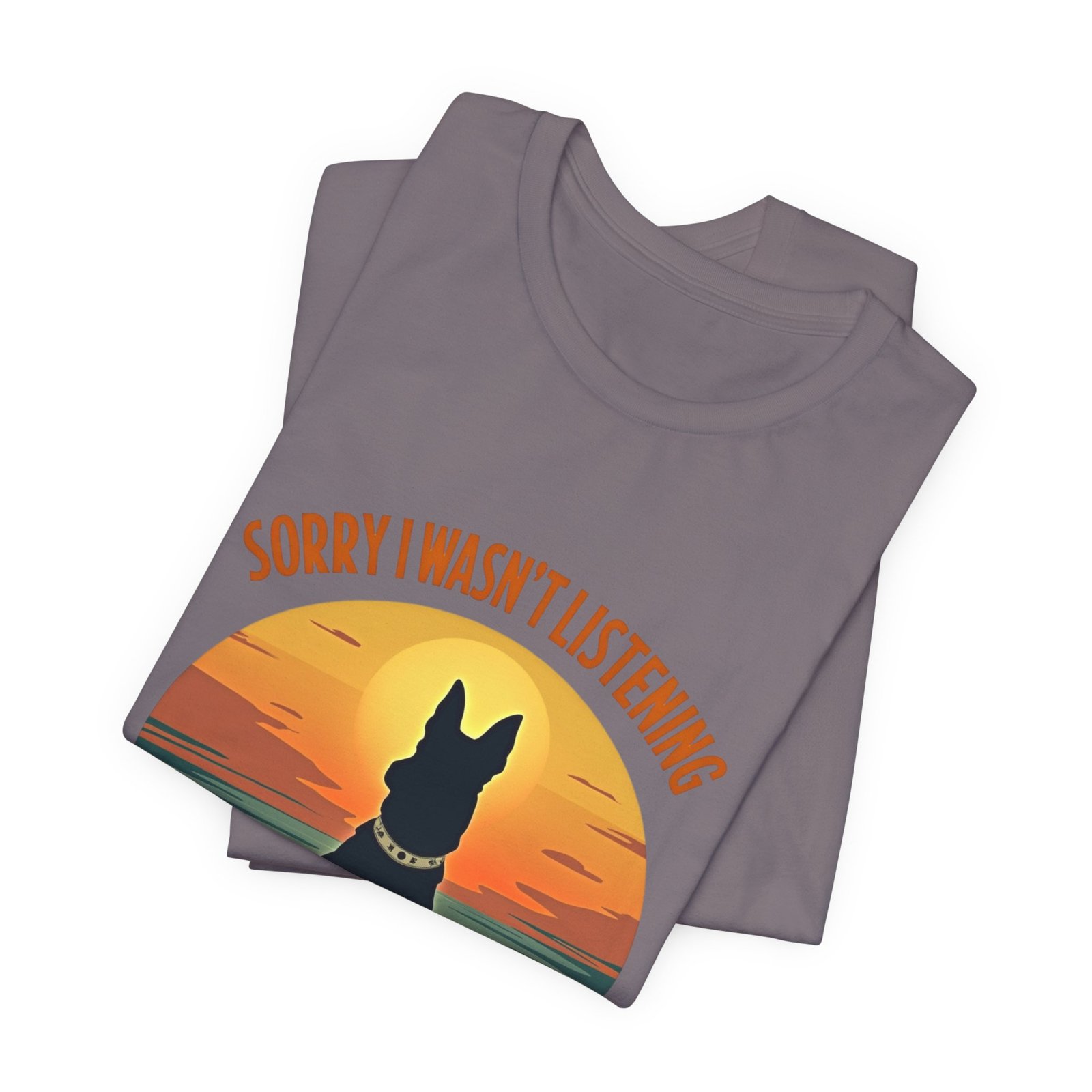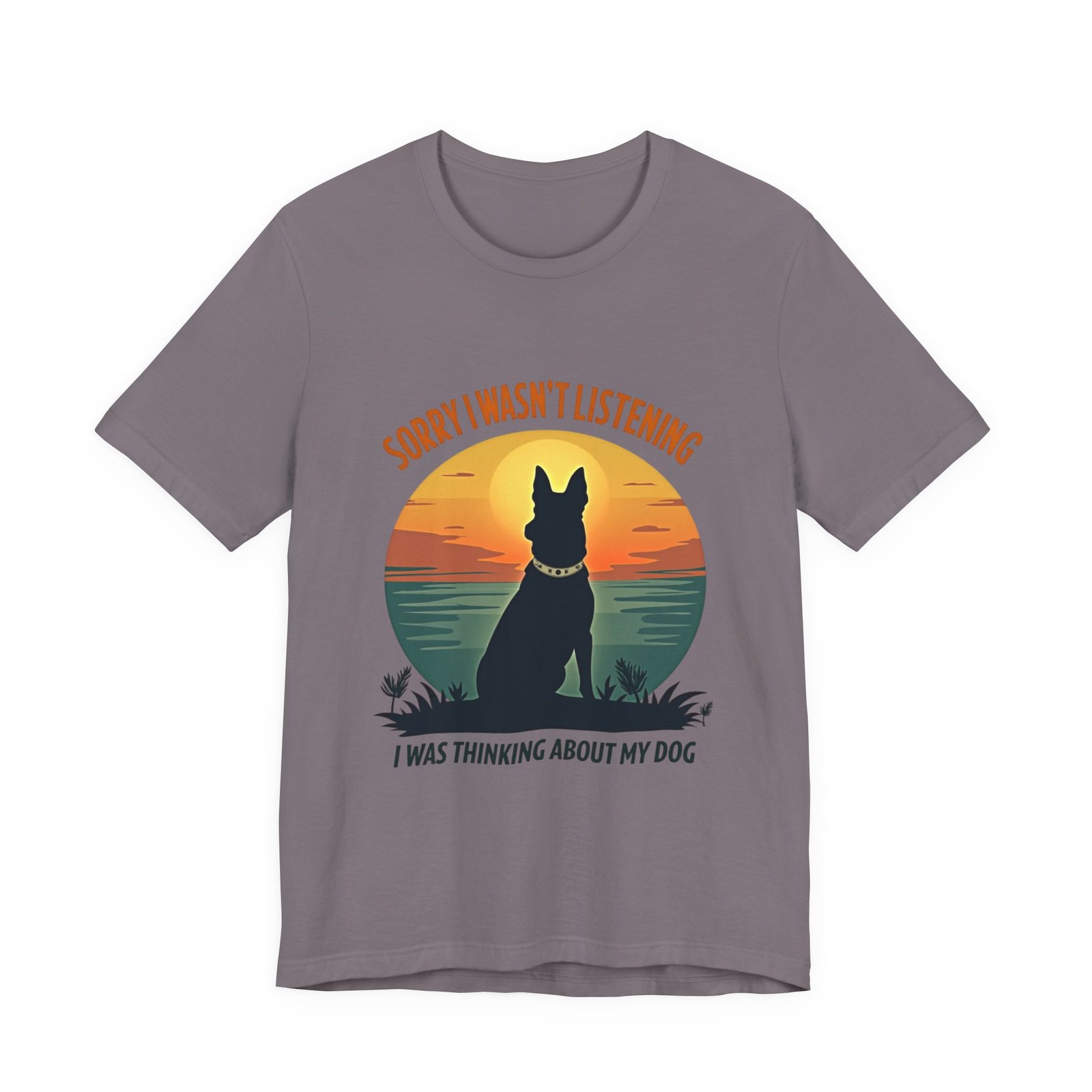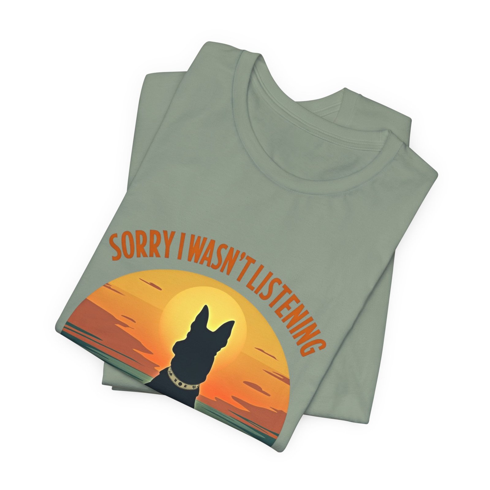 A funny dog T-shirt with the phrase “Sorry I wasn’t listening, I was thinking about my dog”. This T-shirt gives off a laid-back and humorous vibe, perfect for dog lovers to wear casually or as loungewear. Ideal for dog owners, pet lovers, and those who enjoy witty and playful designs. Relevant for dog-related holidays and occasions.