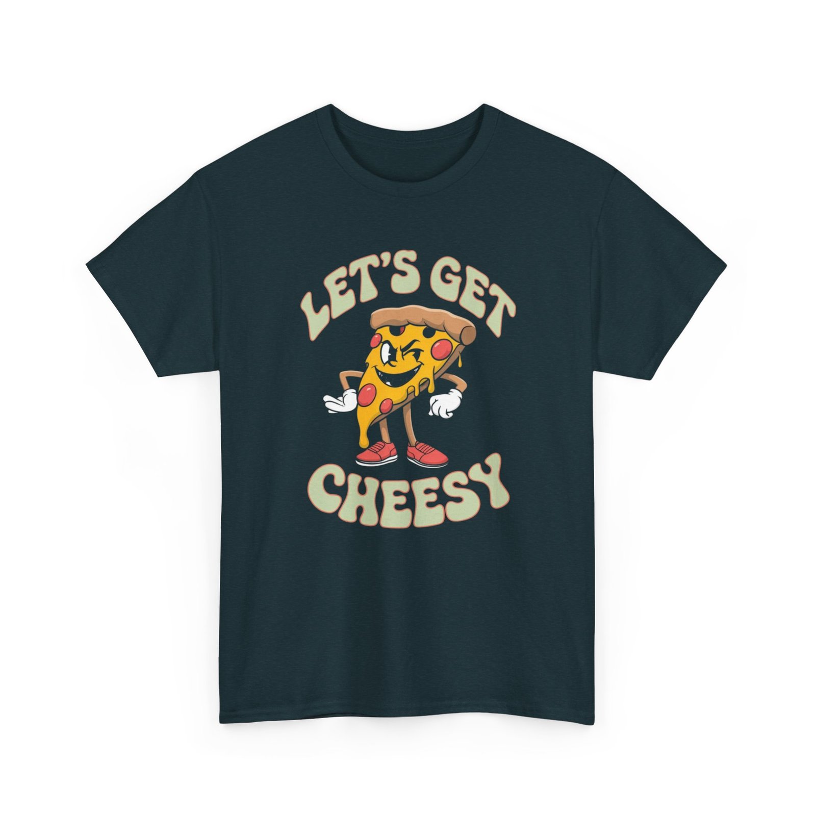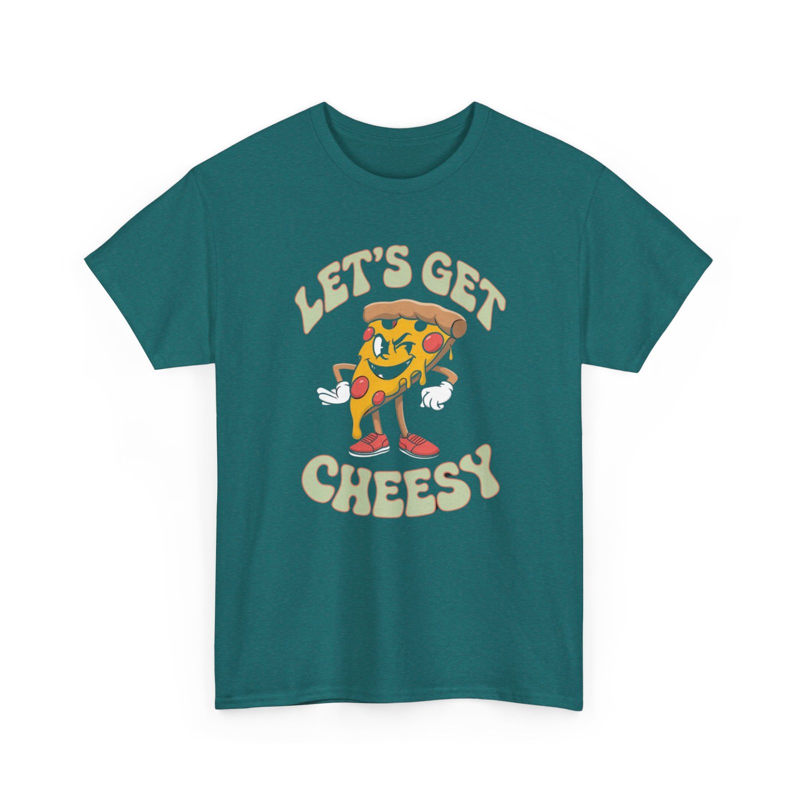 This funny pizza T-shirt is perfect for pizza lovers who enjoy adding a touch of humor to their wardrobe. The classic fit and high-quality fabric make it comfortable for everyday wear, while the ribbed knit collar ensures durability and shape retention. The ‘Let get cheesy’ design adds a playful vibe to any casual outfit, making it a great conversation starter. Ideal for adults looking for a fun and comfortable shirt to wear during casual outings, hangouts, or pizza-themed parties.