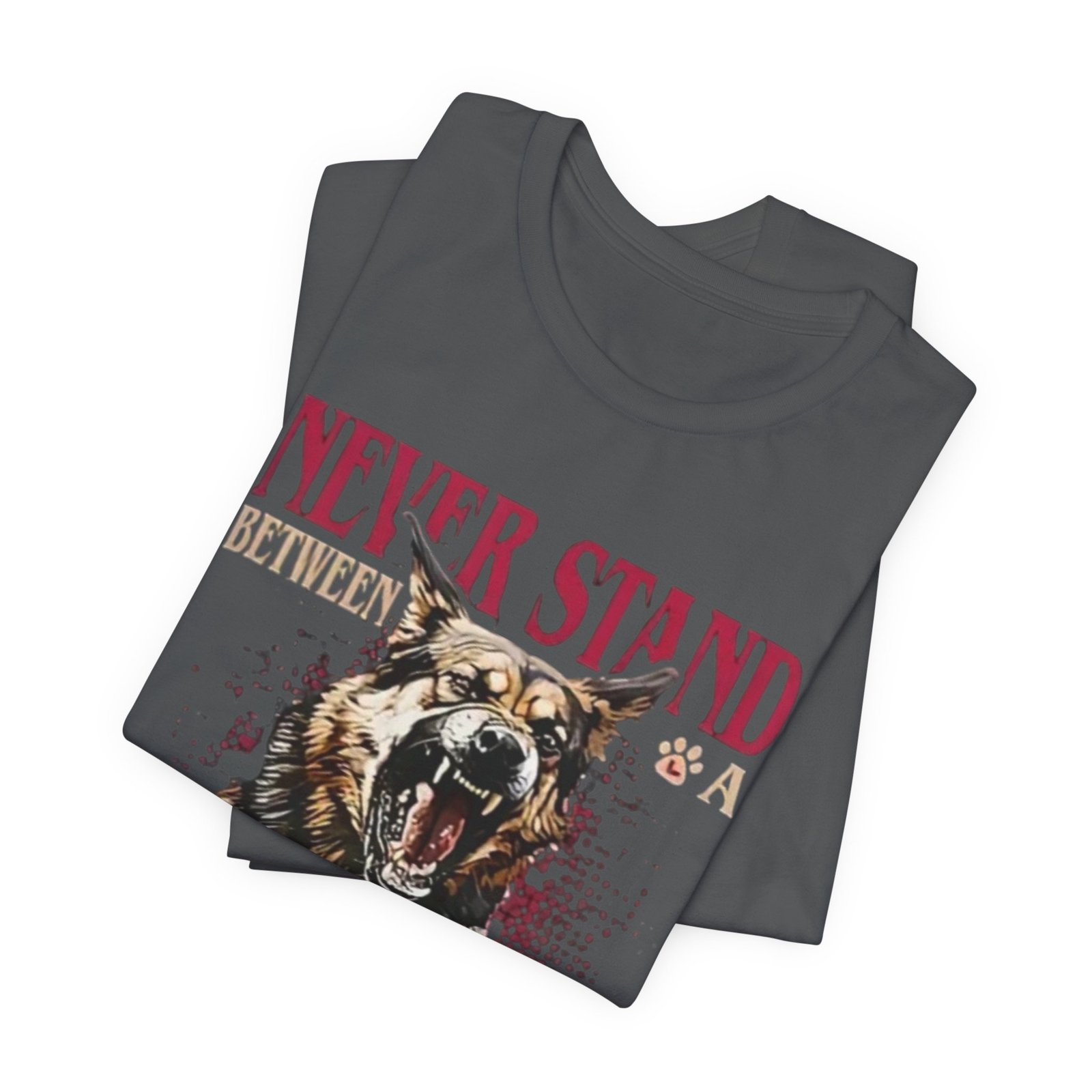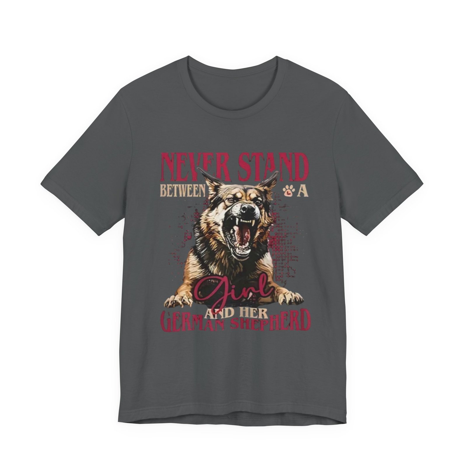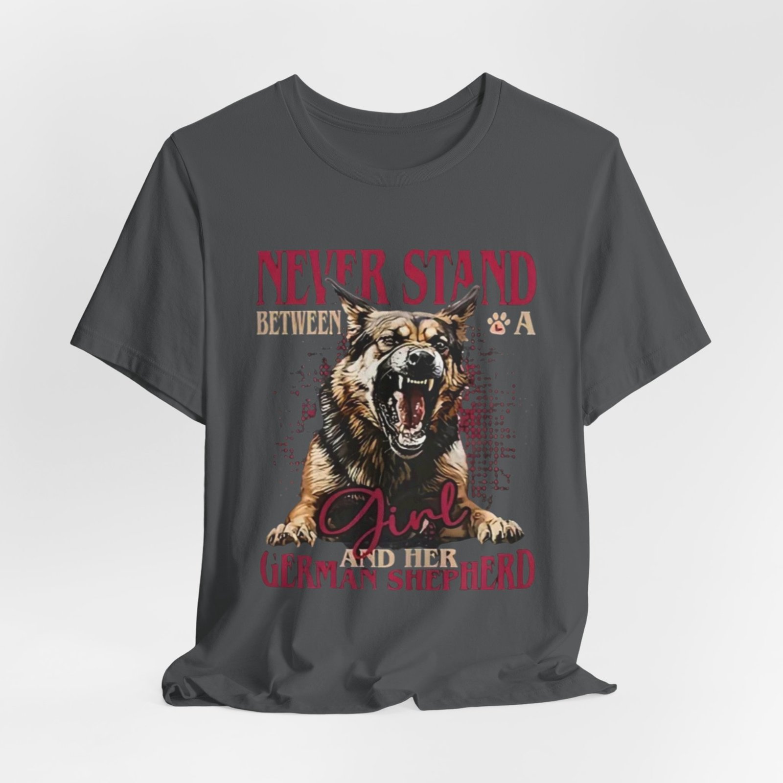 Wear your loyalty on your chest. This lightweight jersey tee pairs a bold, snarling German Shepherd graphic with strong typography to speak for you when words aren’t enough. The crew neck and retail fit give it a tidy silhouette that layers easily under jackets or stands on its own. Breathable Airlume combed ring-spun cotton keeps it comfortable for long walks, training sessions, or backyard hangs. Thoughtfully finished details — side seams, ribbed collar, shoulder tape and a tear-away label — help it keep shape and wear softer against the skin. It’s built to feel lived-in fast while honoring ethical, REACH-certified sourcing and responsible manufacturing practices.