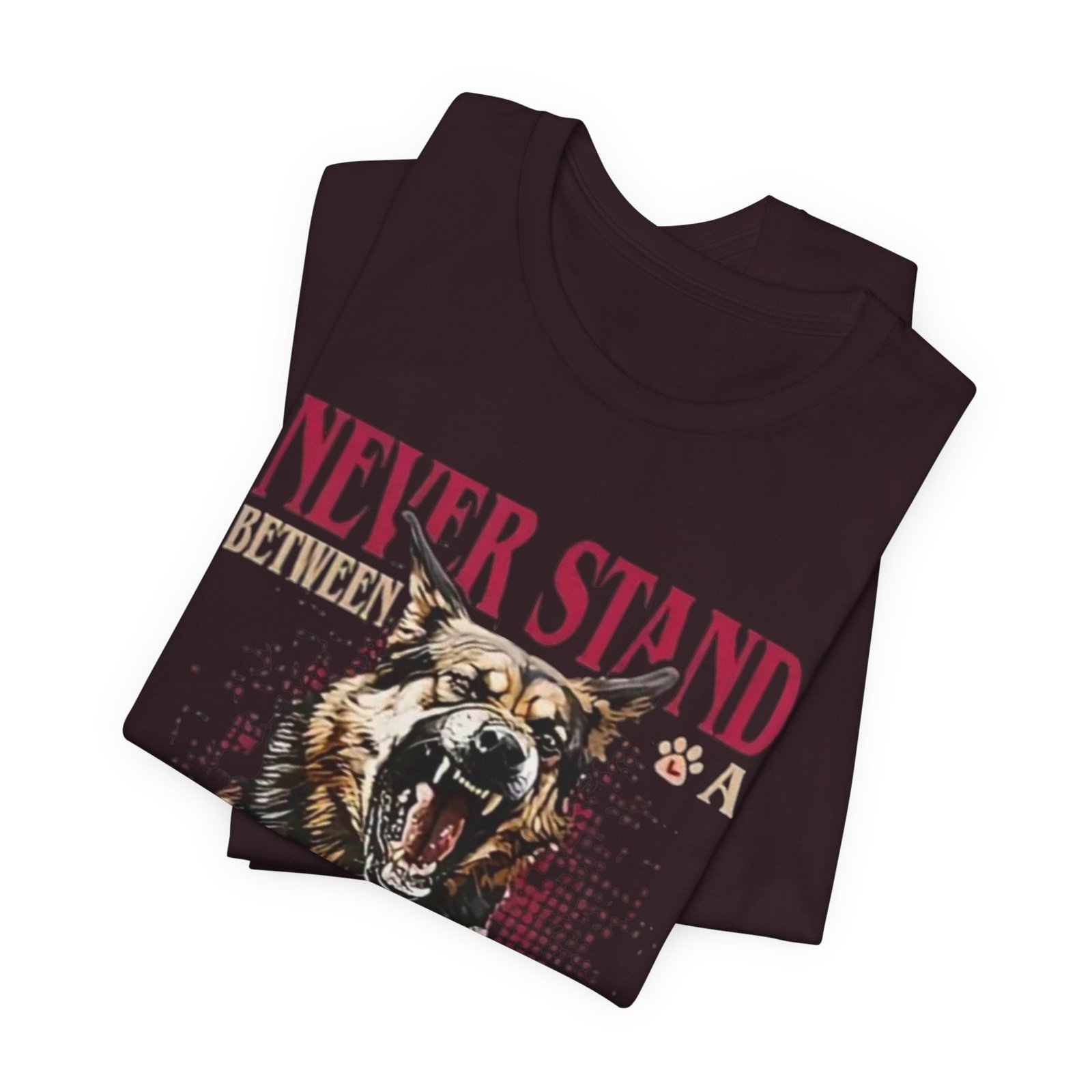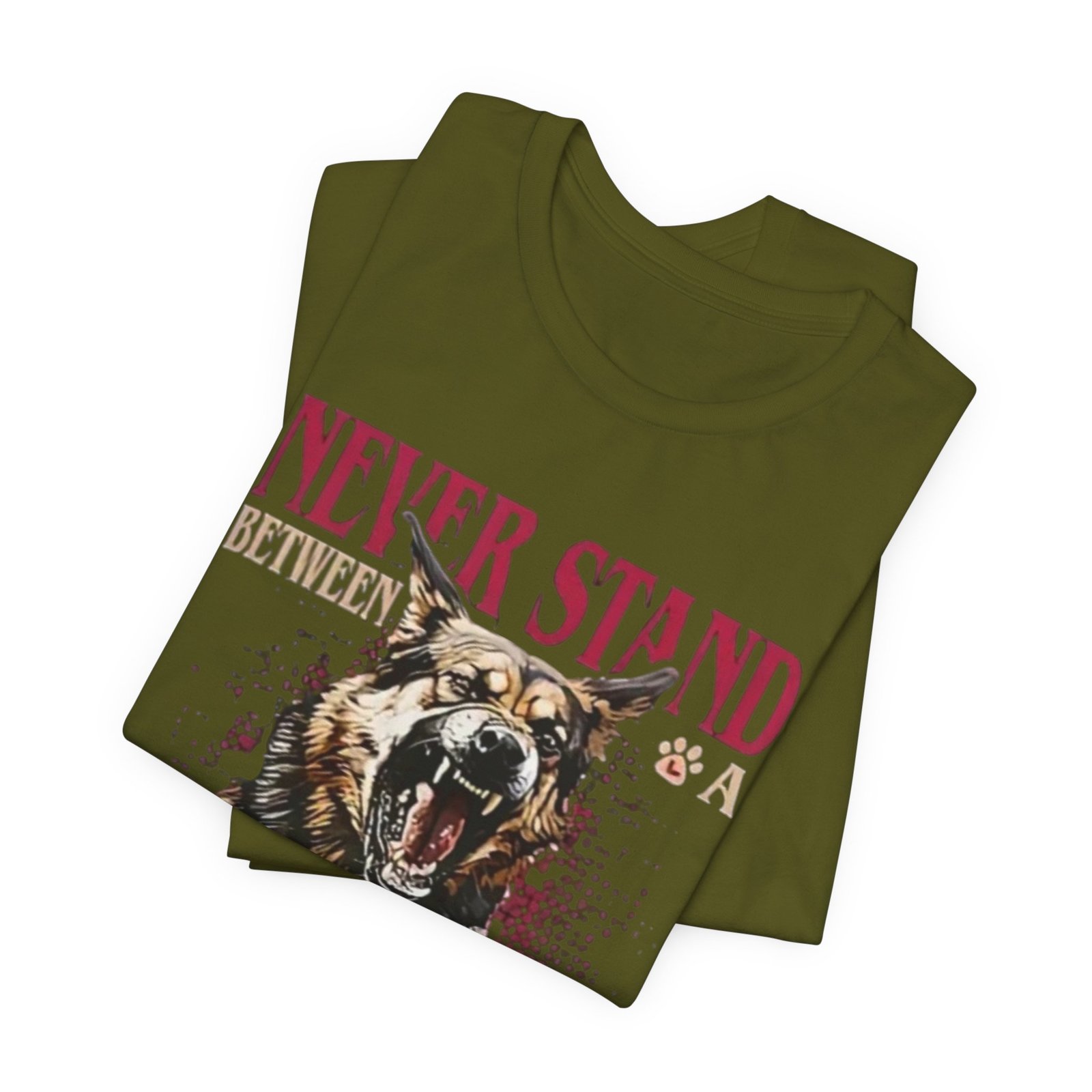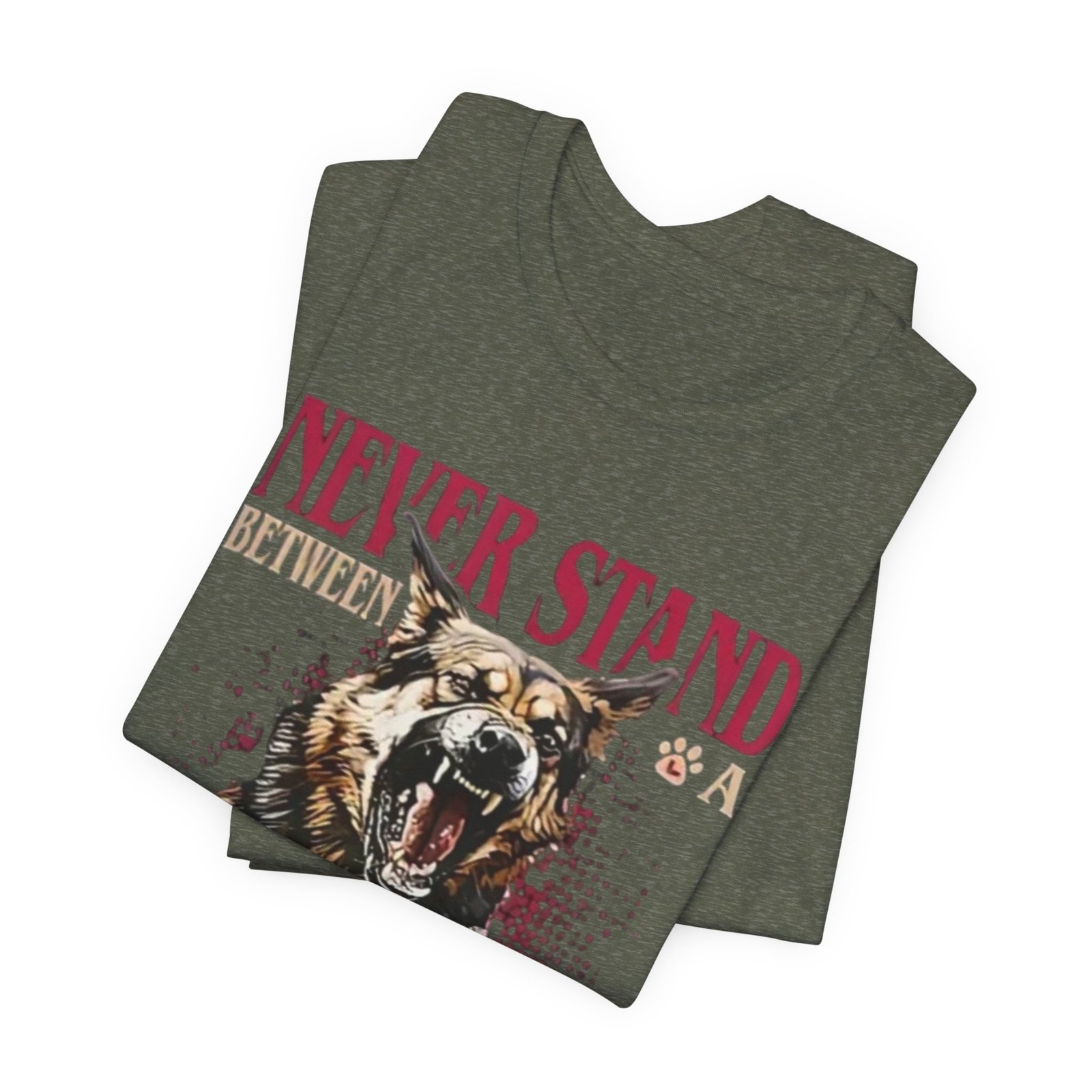 Wear your loyalty on your chest. This lightweight jersey tee pairs a bold, snarling German Shepherd graphic with strong typography to speak for you when words aren’t enough. The crew neck and retail fit give it a tidy silhouette that layers easily under jackets or stands on its own. Breathable Airlume combed ring-spun cotton keeps it comfortable for long walks, training sessions, or backyard hangs. Thoughtfully finished details — side seams, ribbed collar, shoulder tape and a tear-away label — help it keep shape and wear softer against the skin. It’s built to feel lived-in fast while honoring ethical, REACH-certified sourcing and responsible manufacturing practices.
