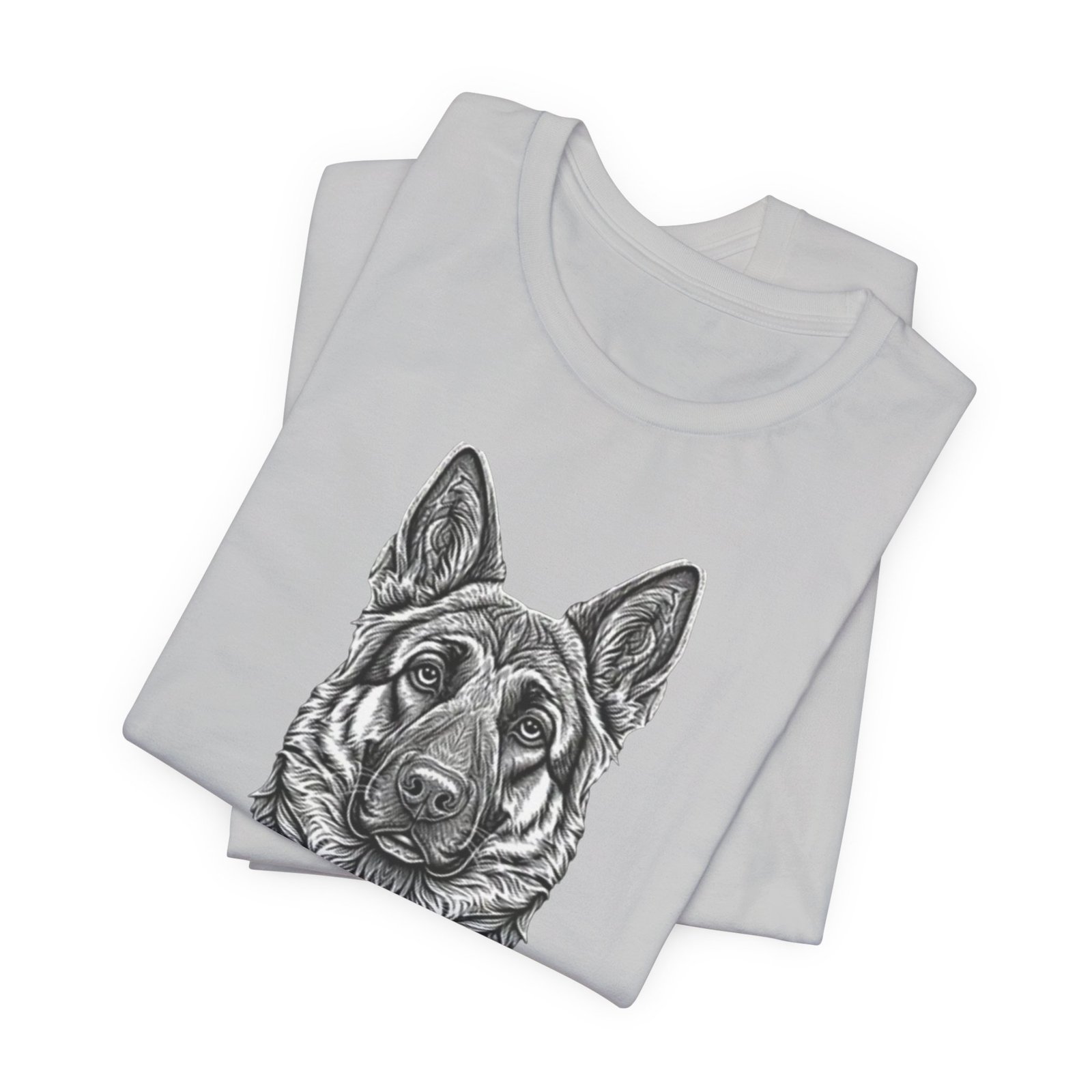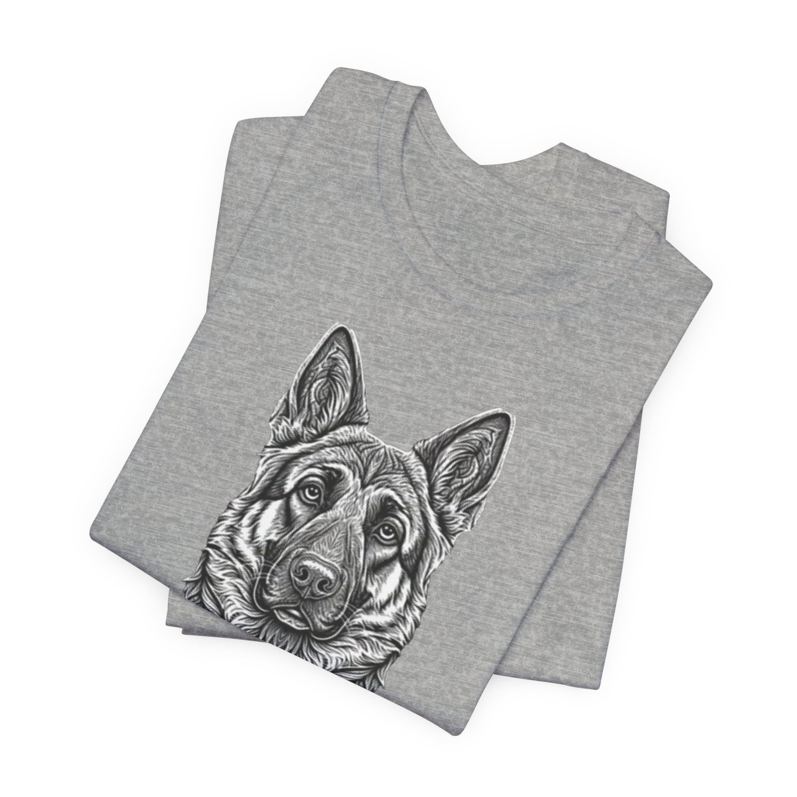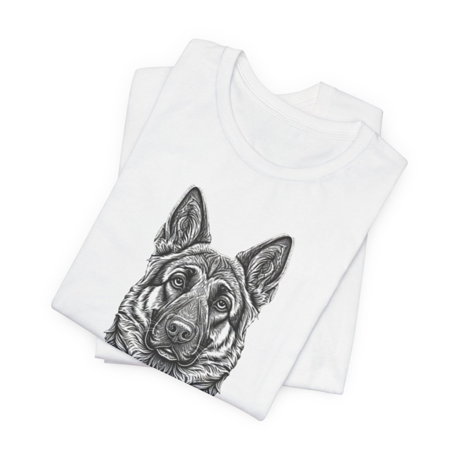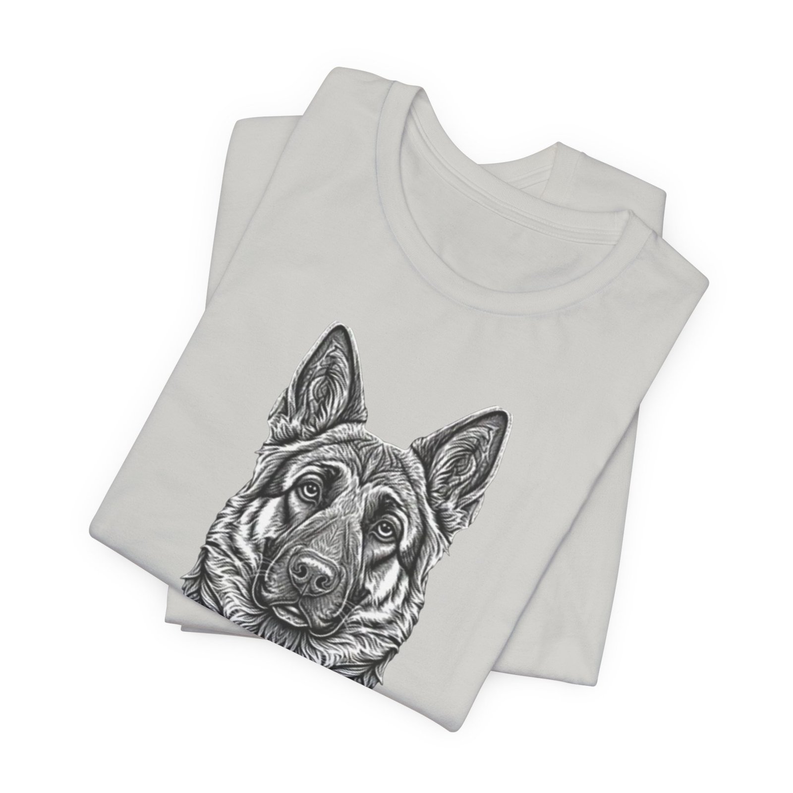 This lightweight jersey tee carries a hand-drawn German Shepherd portrait at the center — a quiet, confident statement for anyone who lives for loyal companions and outdoor moments. The soft, breathable Airlume combed cotton feels cool against the skin on long walks, training sessions, or layered under a jacket for weekend wanderings. The detailed monochrome illustration sits cleanly on a neat crew neckline, offering an artful, slightly rugged look that blends into everyday wear. Built with thoughtful construction — side seams, ribbed collar, and shoulder tape — it keeps its shape through frequent wear and washes. Choose this tee when you want to wear a reminder of that steady, watchful presence at your side.