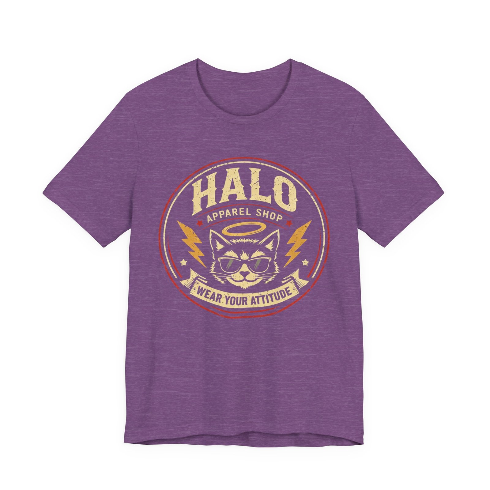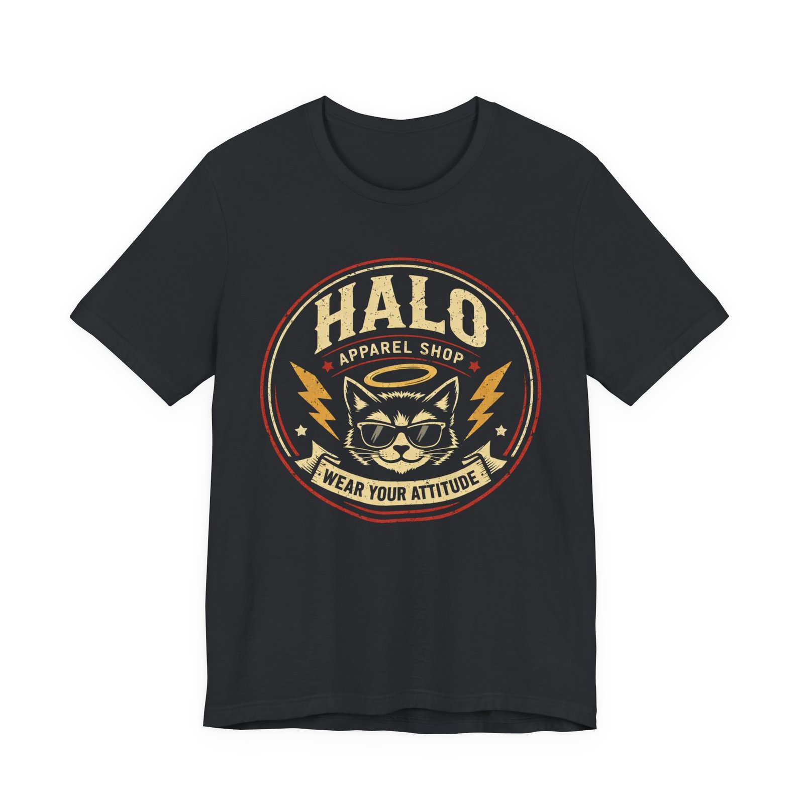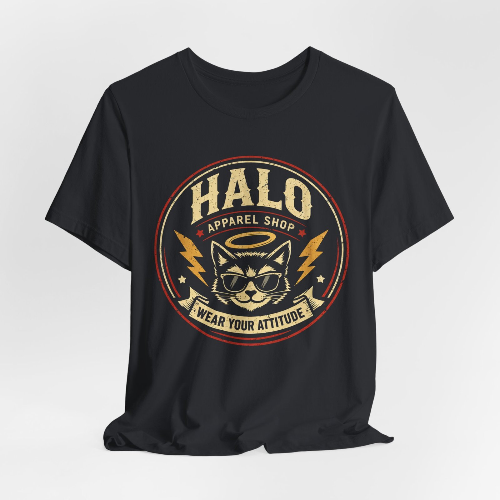 A soft, breathable tee that carries attitude without shouting. This lightweight jersey shirt features a vintage-inspired circular logo of a cool cat with a halo, lightning bolts, and the tagline “Wear Your Attitude.” The faded, retro print sits centered on the chest and reads like a backstage pass — relaxed, confident, a little mischievous. Built for everyday wear, it layers easily under jackets or stands alone with jeans. It’s the kind of shirt you reach for when you want to look effortlessly put-together while keeping things casual and expressive.