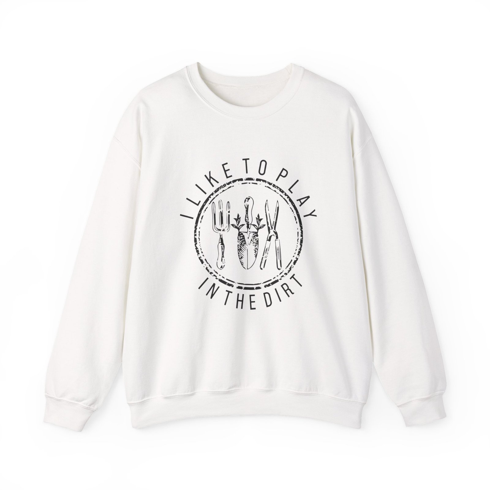 This crewneck sweatshirt carries a quiet, outdoorsy confidence. A soft cream backdrop frames a hand-drawn badge that reads “I like to play in the dirt,” with tiny garden tools clustered at the center — a tidy nod to soil, seedlings and slow afternoons outside. The medium-heavy cotton–poly blend feels substantial without being stiff; the classic fit and ribbed crew neck keep the silhouette simple and wearable. Wear it after a morning potting session, on a cool farmers’ market run, or while sipping coffee on the porch and planning the next planting. It’s for people who find joy in muck under their nails and pride in small, green wins.