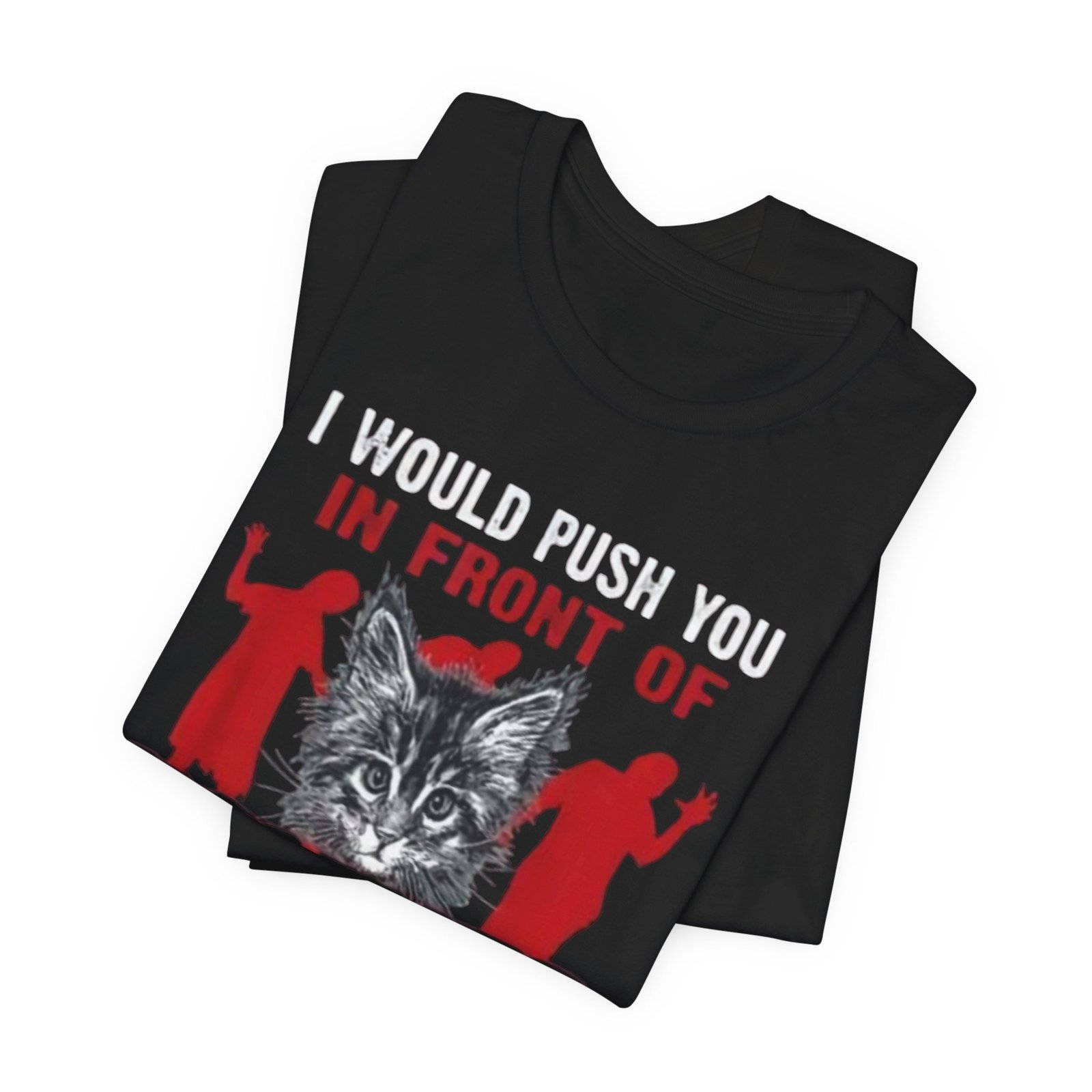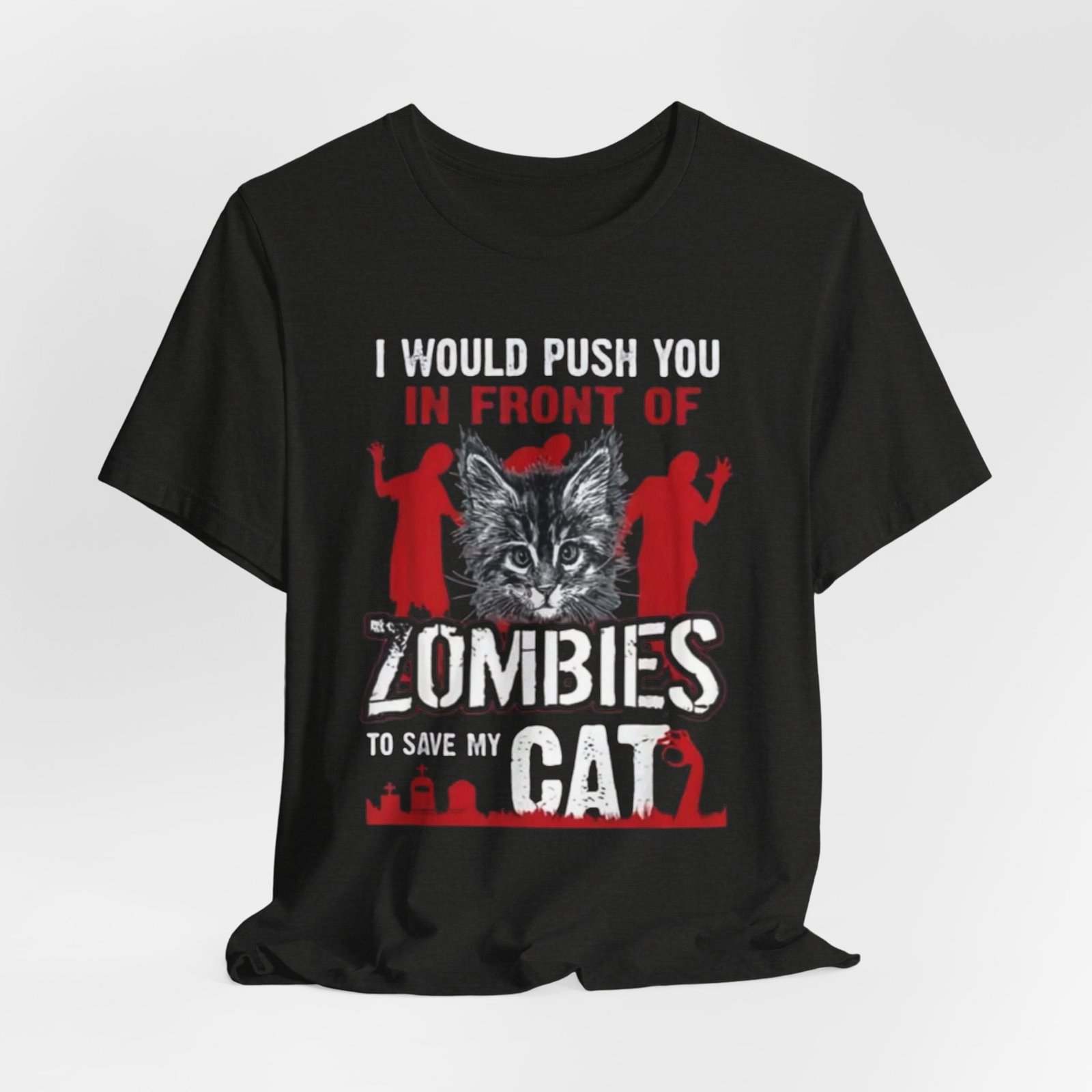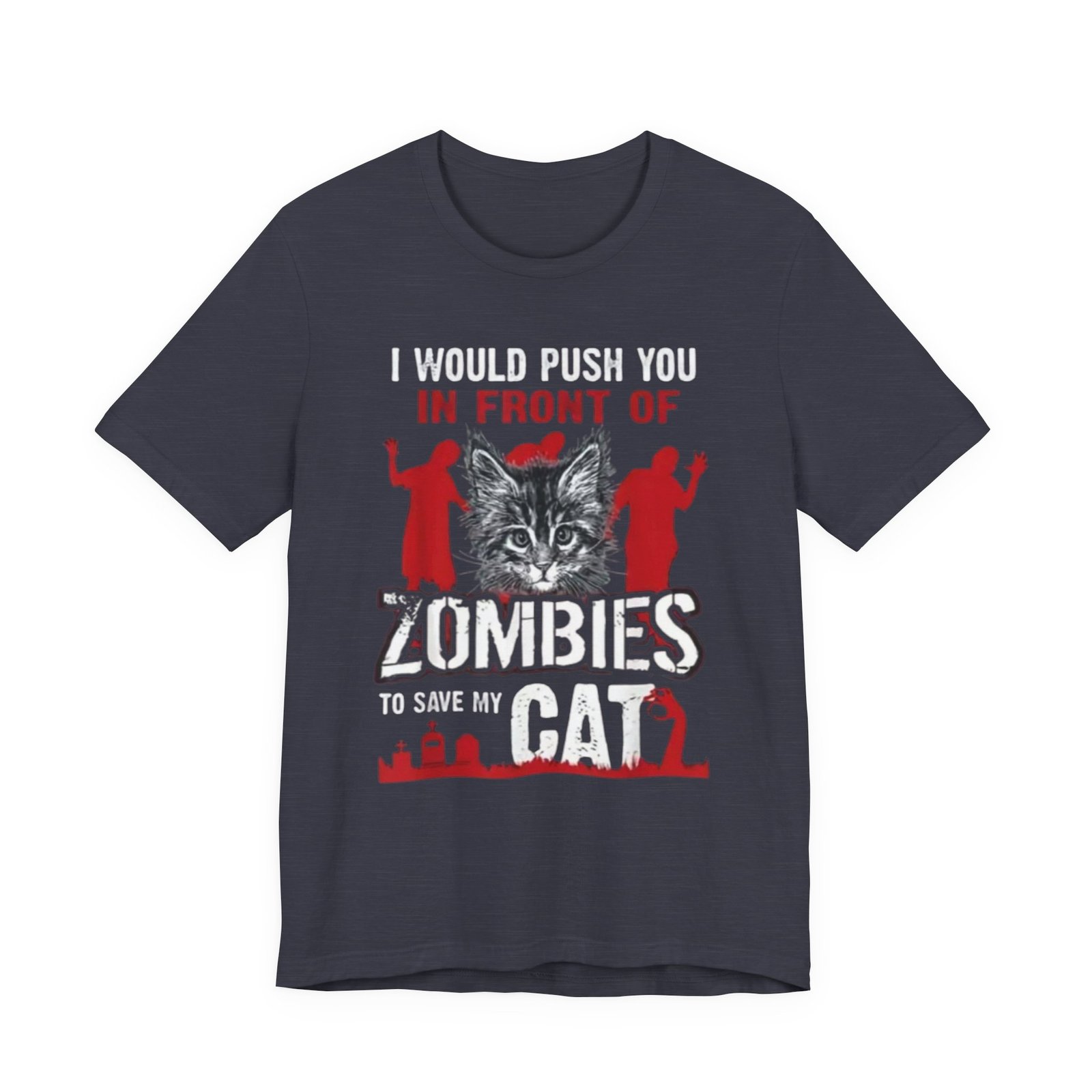 This lightweight jersey tee carries a bold, playful voice for anyone who loves their cat fiercely—maybe even more than fellow humans. The front print mixes distressed type, a detailed feline portrait, and zombie silhouettes in blood-red and white for a cheeky, horror-loving look. Wear it on lazy weekends, at comic-con meetups, or while plotting your next cozy night in with a purring sidekick. The breathable Airlume cotton feels soft against skin and layers cleanly under jackets or over long-sleeves; the retail crew neck and side seams keep a neat silhouette without feeling boxy. It’s made and finished with tear-away labels, ribbed collar, and shoulder tape so it stays comfortable wear after wear.