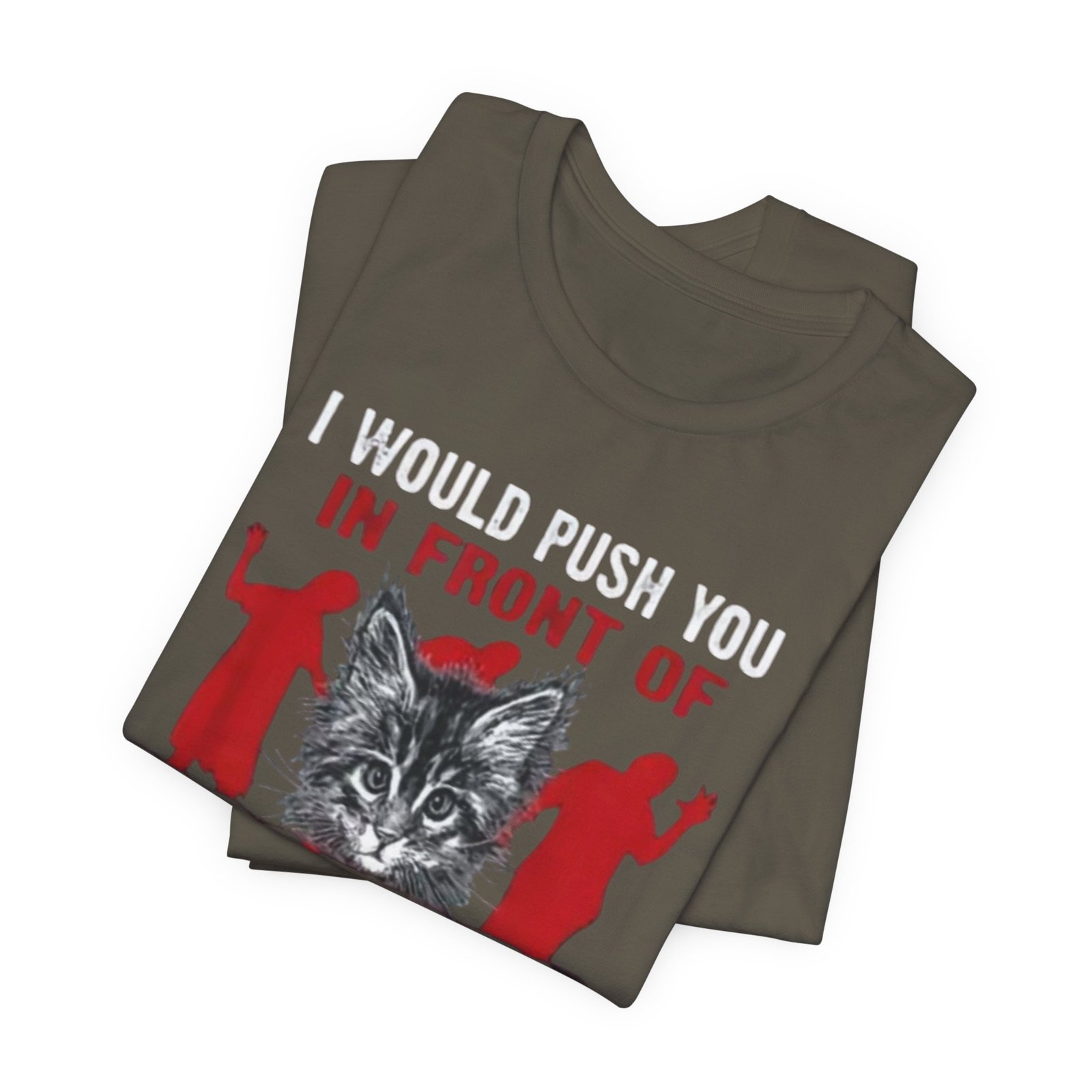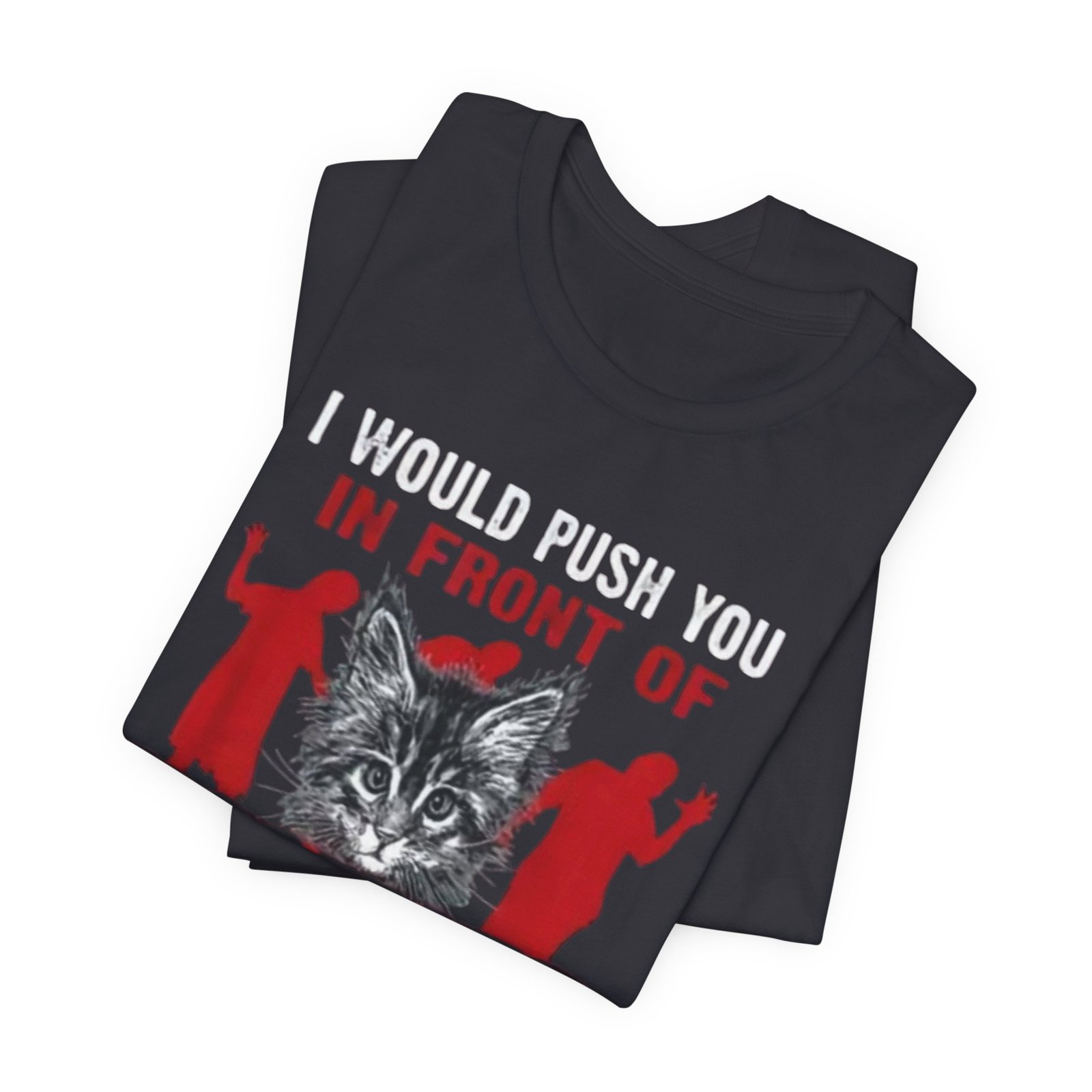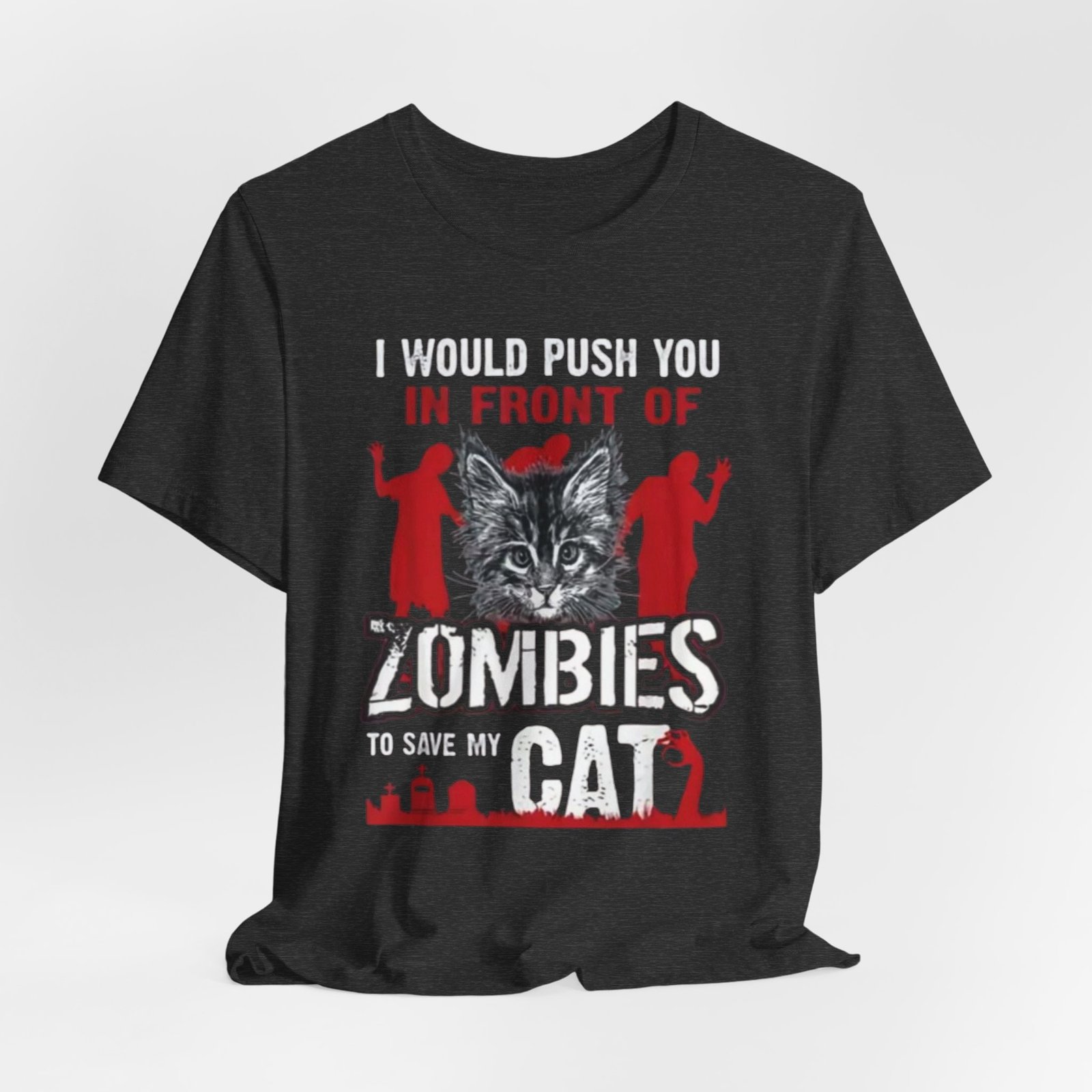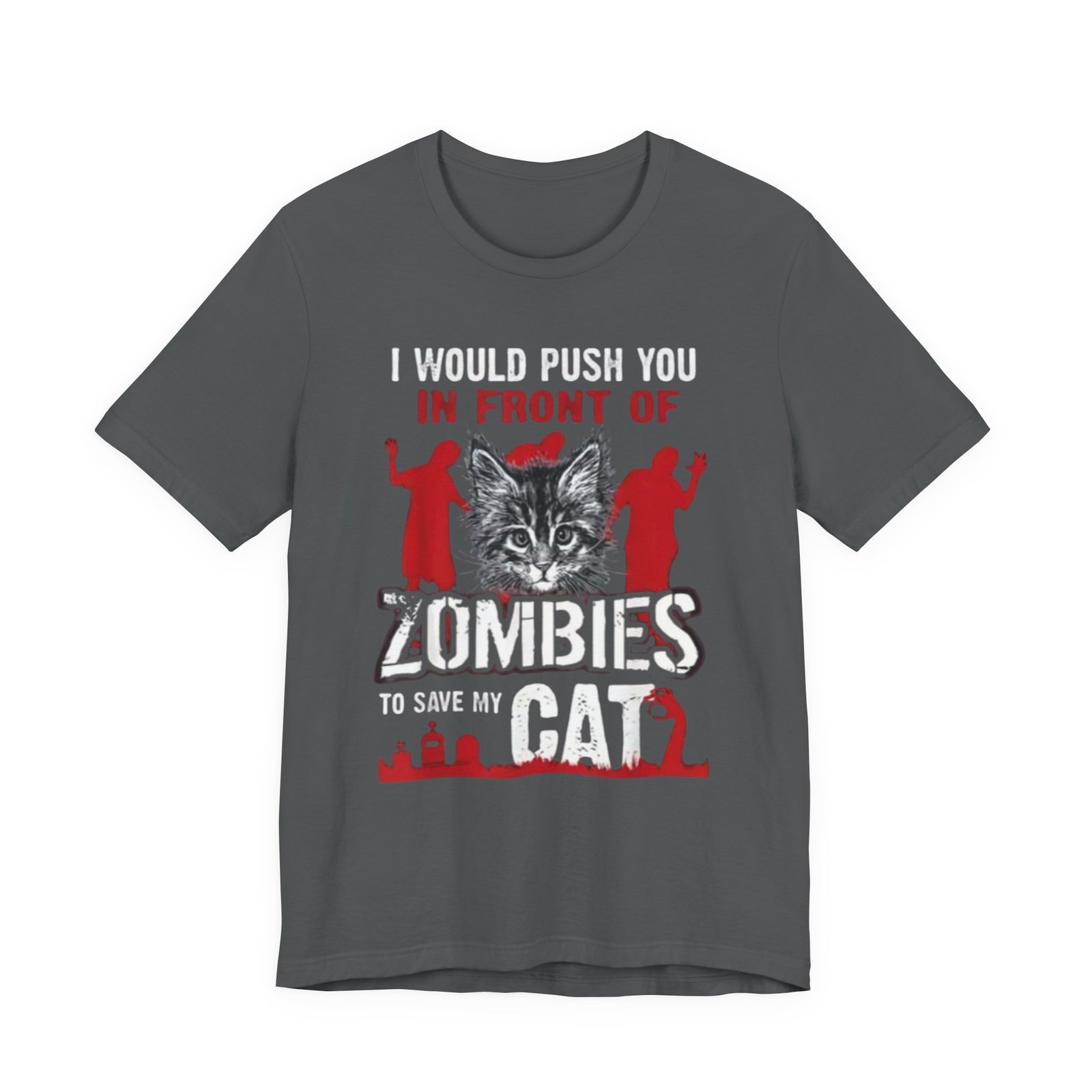 This lightweight jersey tee carries a bold, playful voice for anyone who loves their cat fiercely—maybe even more than fellow humans. The front print mixes distressed type, a detailed feline portrait, and zombie silhouettes in blood-red and white for a cheeky, horror-loving look. Wear it on lazy weekends, at comic-con meetups, or while plotting your next cozy night in with a purring sidekick. The breathable Airlume cotton feels soft against skin and layers cleanly under jackets or over long-sleeves; the retail crew neck and side seams keep a neat silhouette without feeling boxy. It’s made and finished with tear-away labels, ribbed collar, and shoulder tape so it stays comfortable wear after wear.