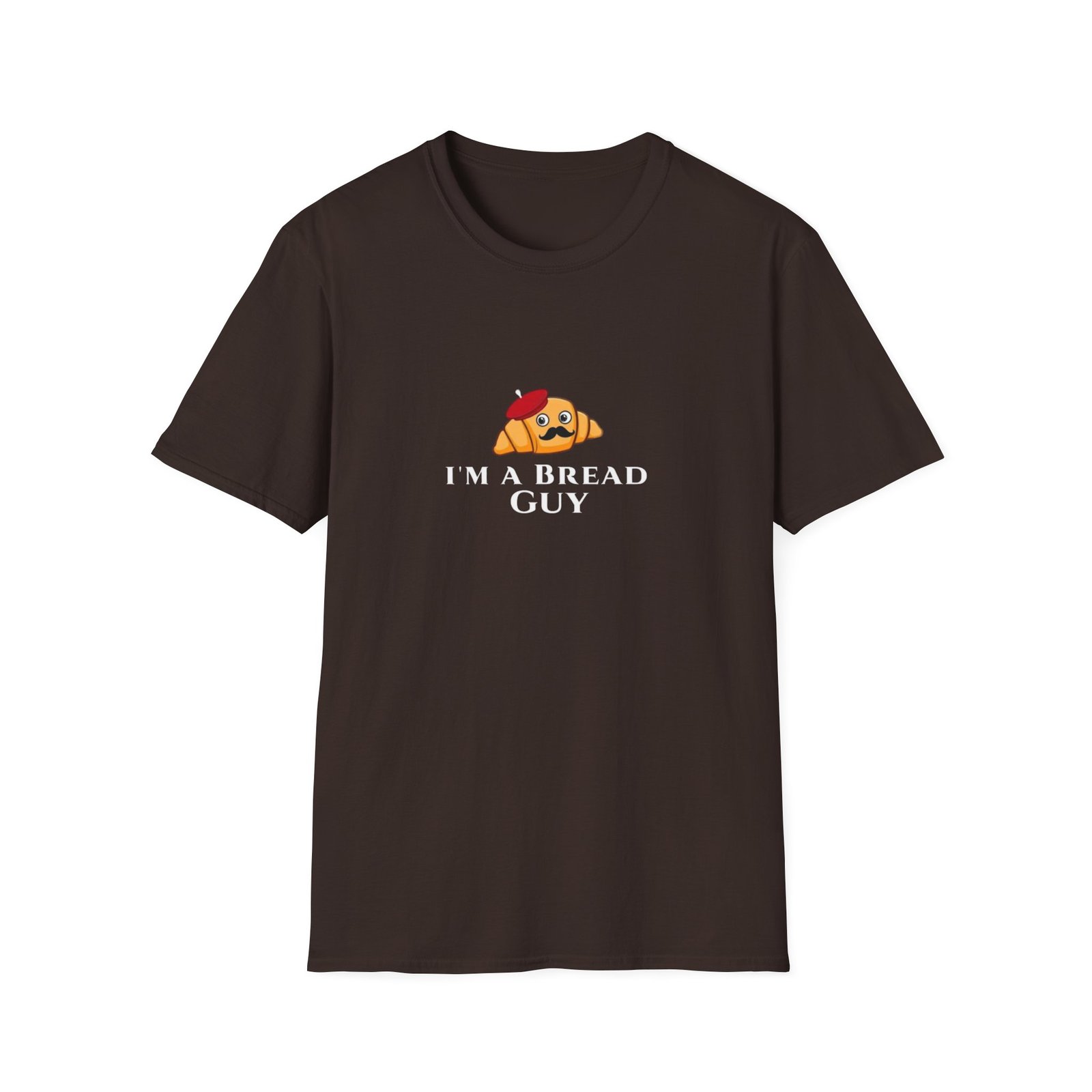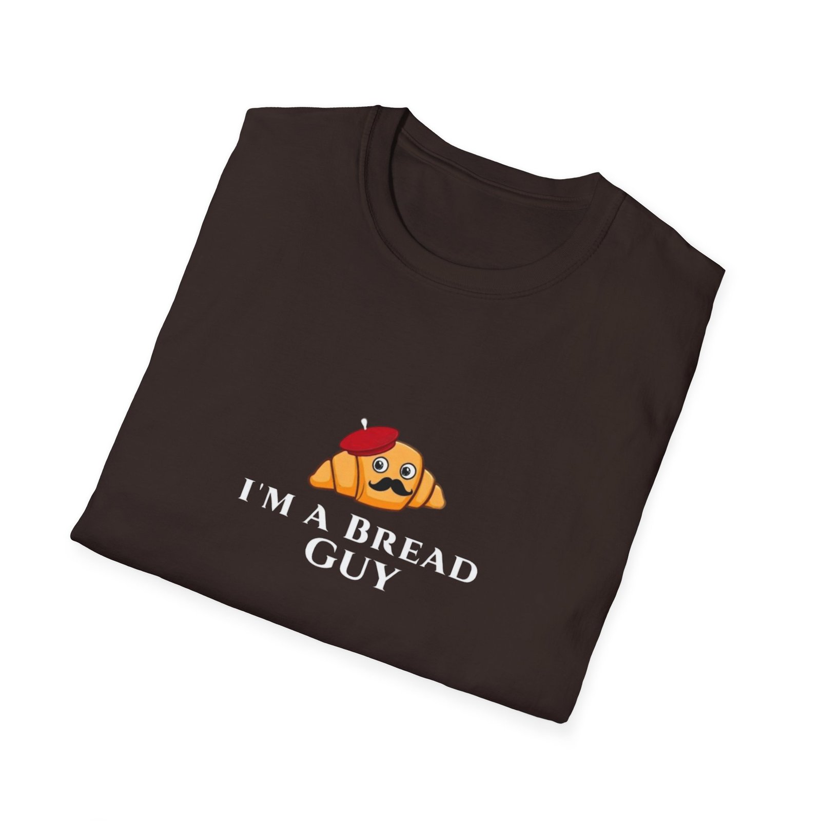 Soft, everyday tee with a playful, low-key vibe. A small, centered design shows a cozy loaf of bread wearing a tiny beret above the words “I’M A BREAD GUY,” bringing a wink of bakery-loving charm to a classic black shirt. The lightweight cotton drapes comfortably and keeps the graphic crisp so the illustration stays the focal point whether you’re grabbing coffee, running errands, or hanging out with friends. Wear it with jeans and a worn-in jacket for a casual, food-lover look that feels personal rather than loud.