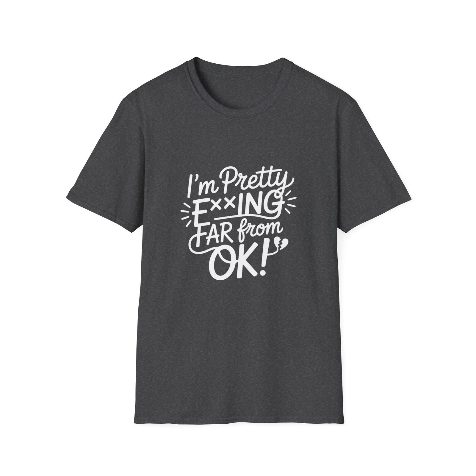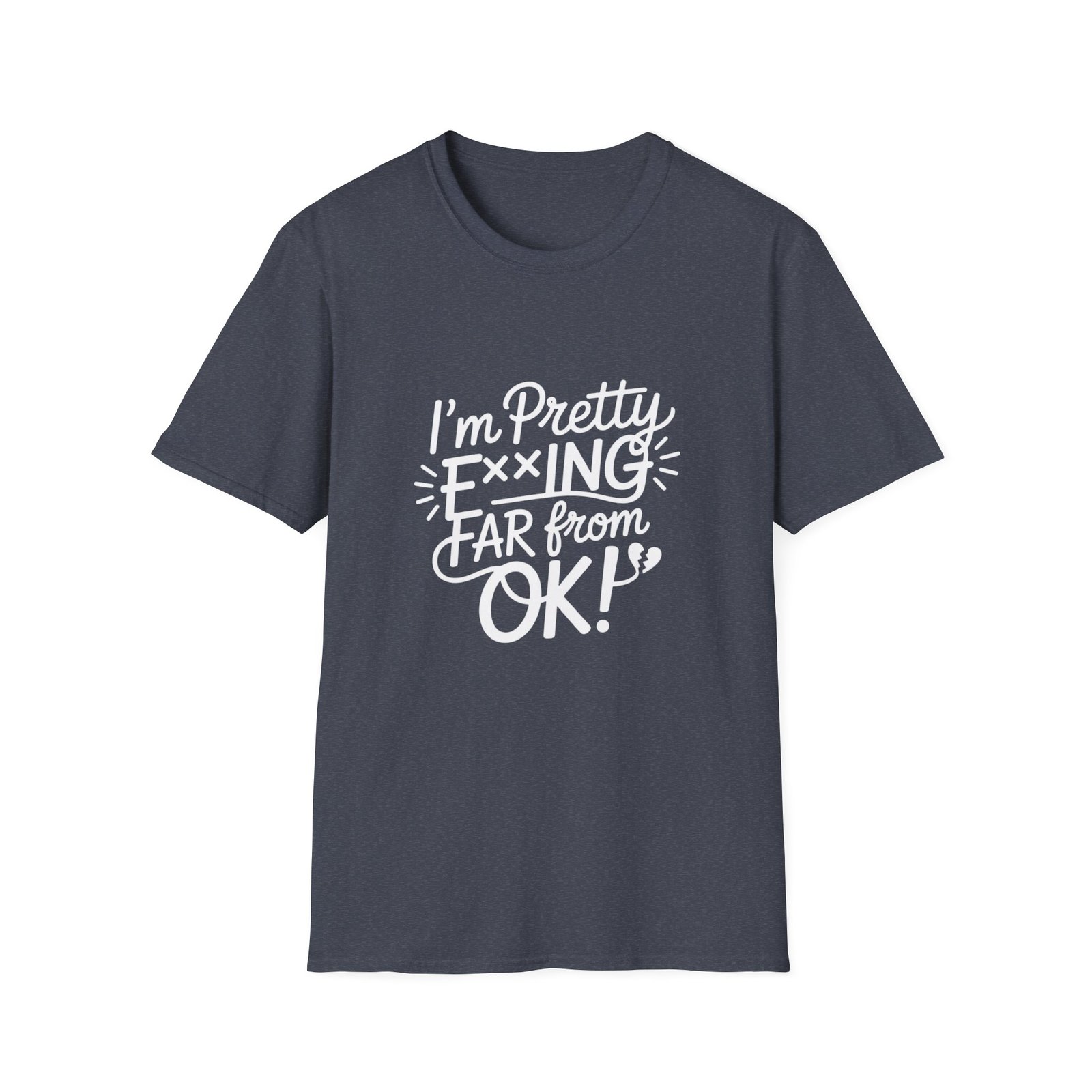 This lightweight, classic-fit tee speaks with honest humor. Soft ring-spun cotton drapes easily and holds a crisp print so the bold hand-lettered message reads cleanly day after day. Wear it when you want to let people know your mood without saying much—paired with jeans for a relaxed errand run, layered under a jacket for a night out, or worn at home during a rough week. The smooth fabric and tear-away label keep comfort front and center, while reinforced shoulder tape and a ribbed collar mean the shirt keeps its shape after many washes. The slightly lived-in Natural shades show tiny flecks in the yarn for a subtle, authentic look.