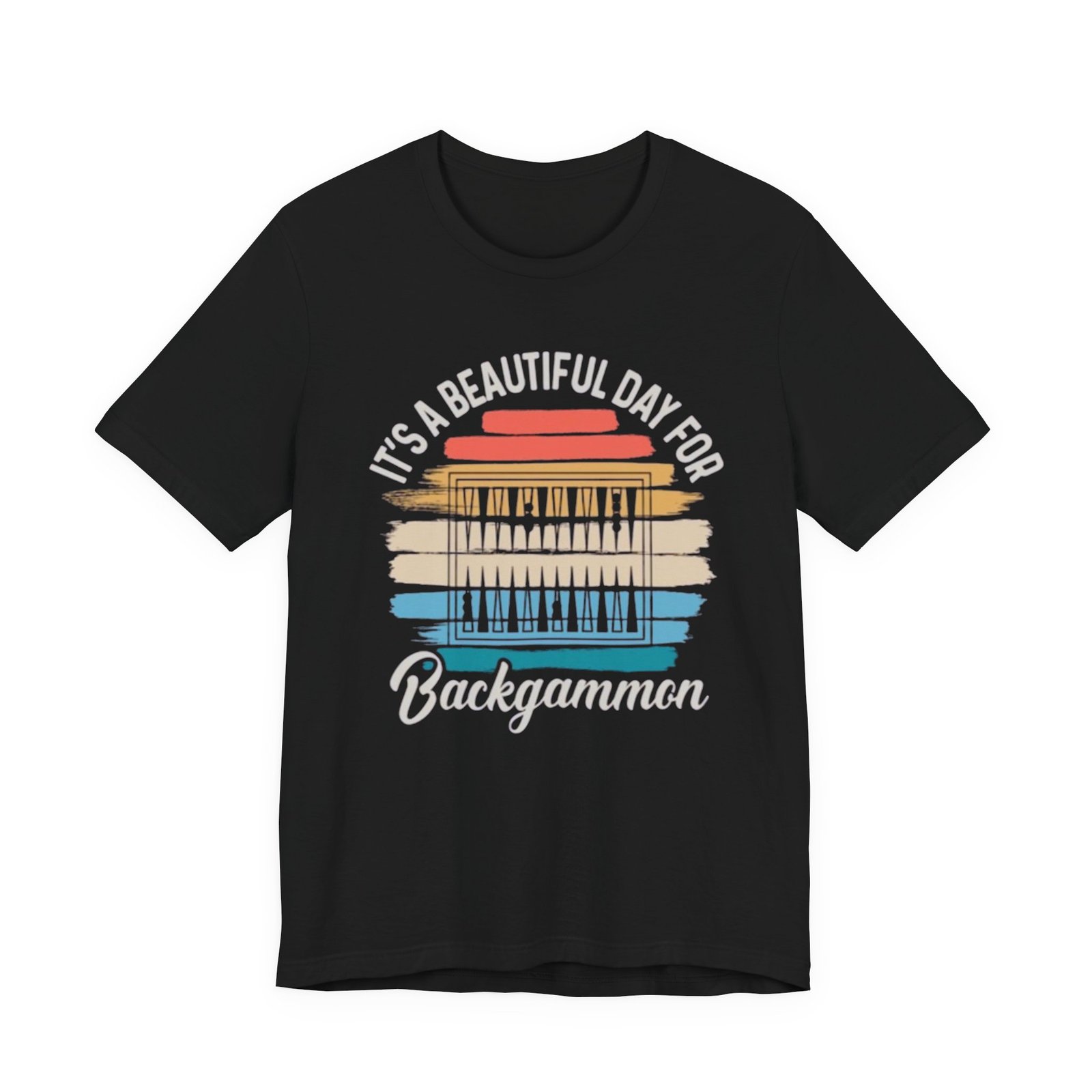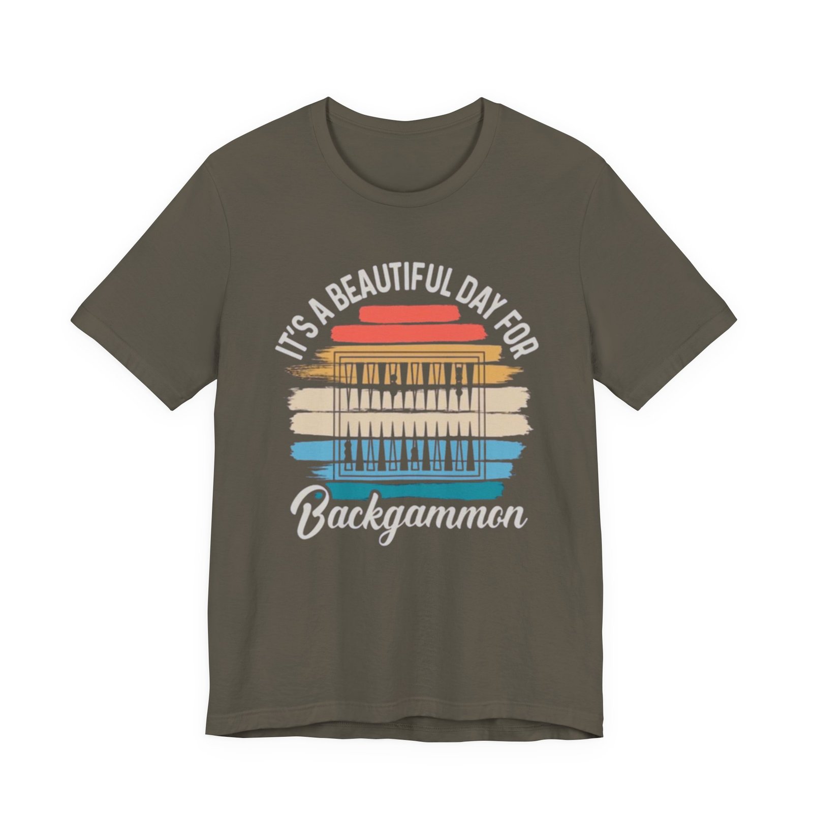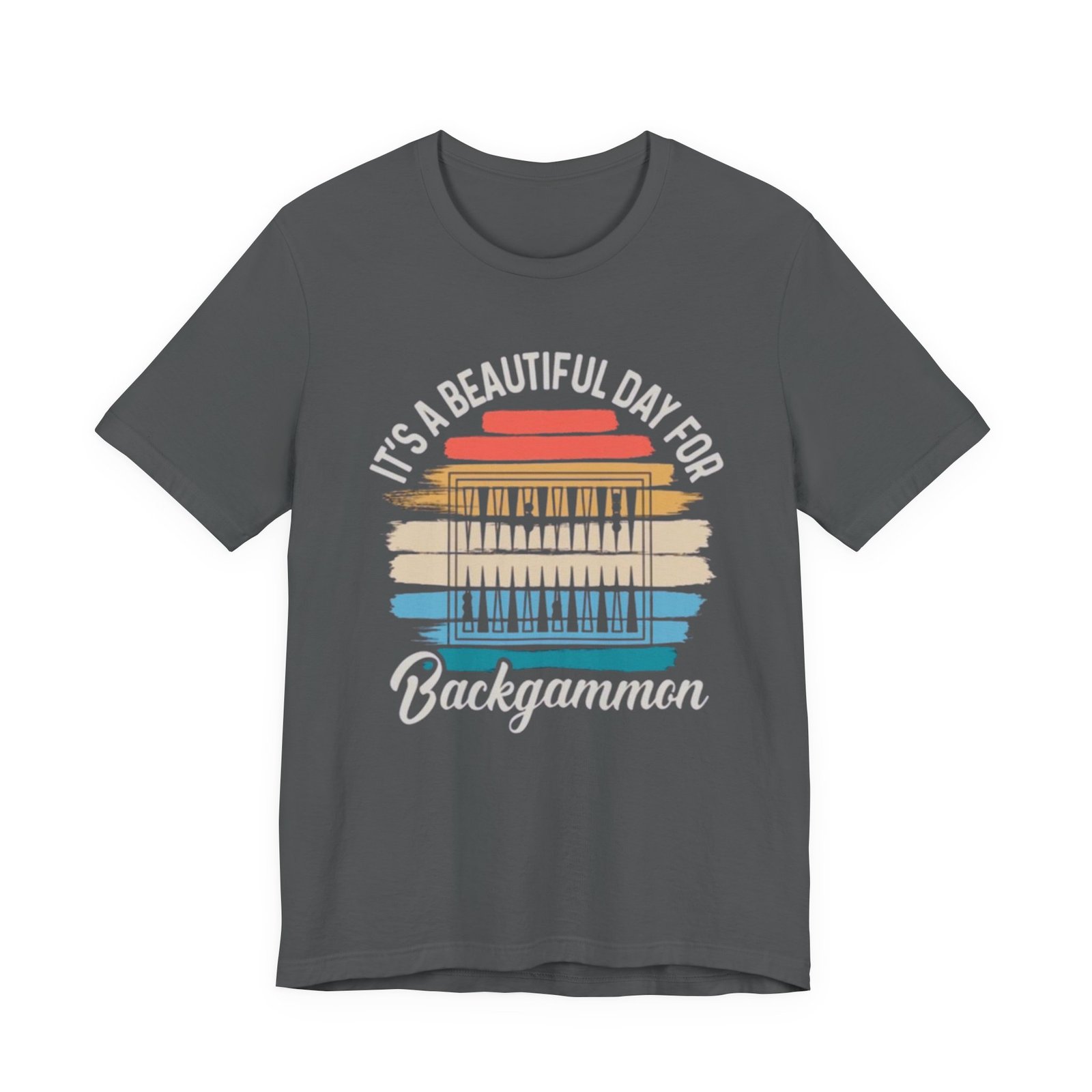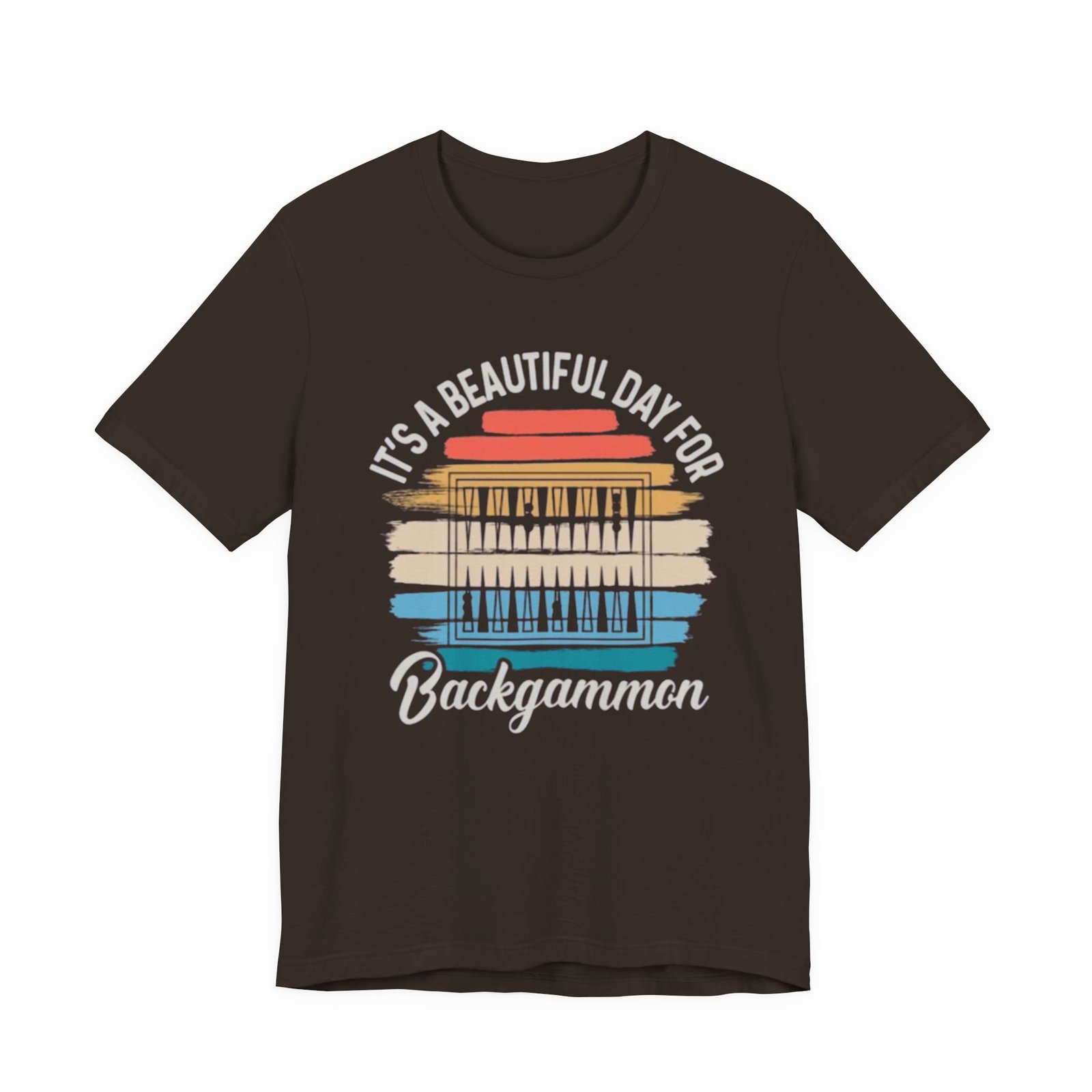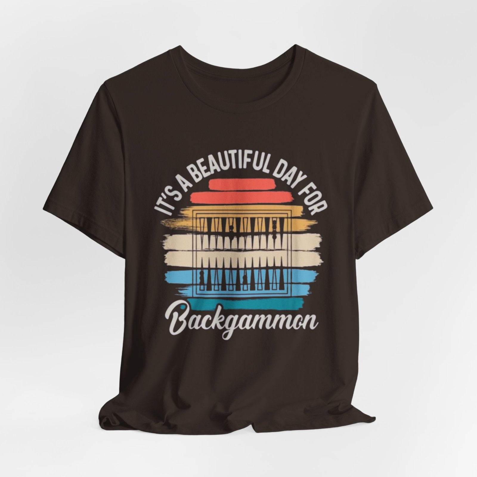 Lightweight, breathable tee made from 100% Airlume combed and ring-spun cotton that wears like a favorite from the first day. The front shows a warm, retro-styled backgammon board with the phrase “It’s a beautiful day for Backgammon,” evoking lazy afternoons, friendly rivalries, and long matches over coffee. Side seams and shoulder tape keep the shape crisp after many washes. The ribbed knit crew collar holds its form while the tear-away label prevents irritation. Thoughtfully produced by a Fair Labor Association–aligned manufacturer, this tee blends casual comfort with durable construction — the kind of shirt you reach for when you want to relax, play, and savor good company.