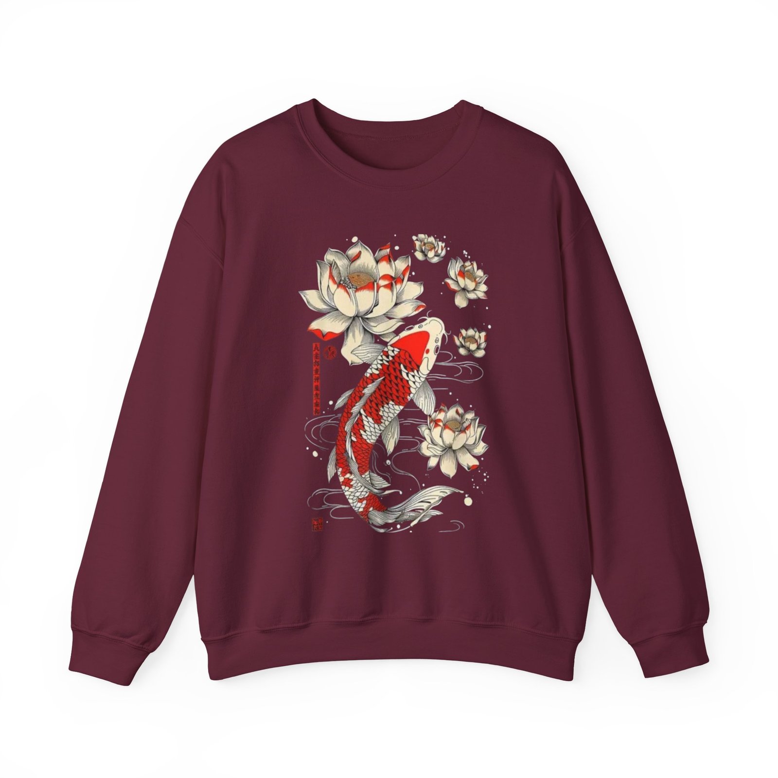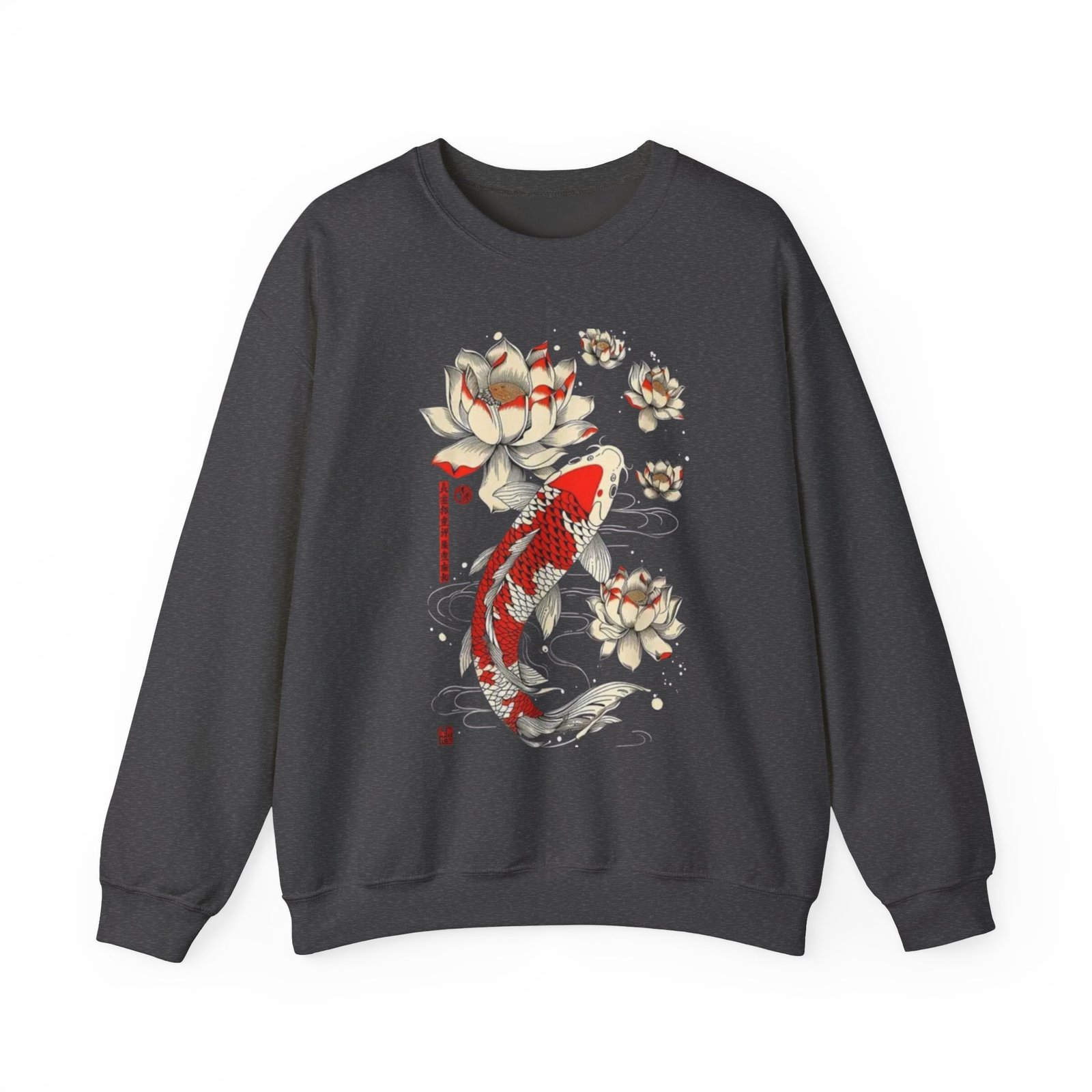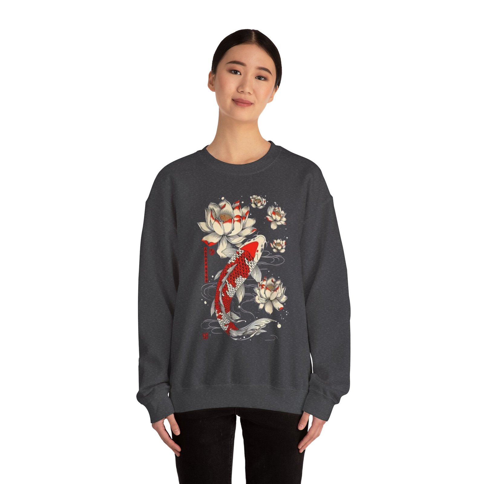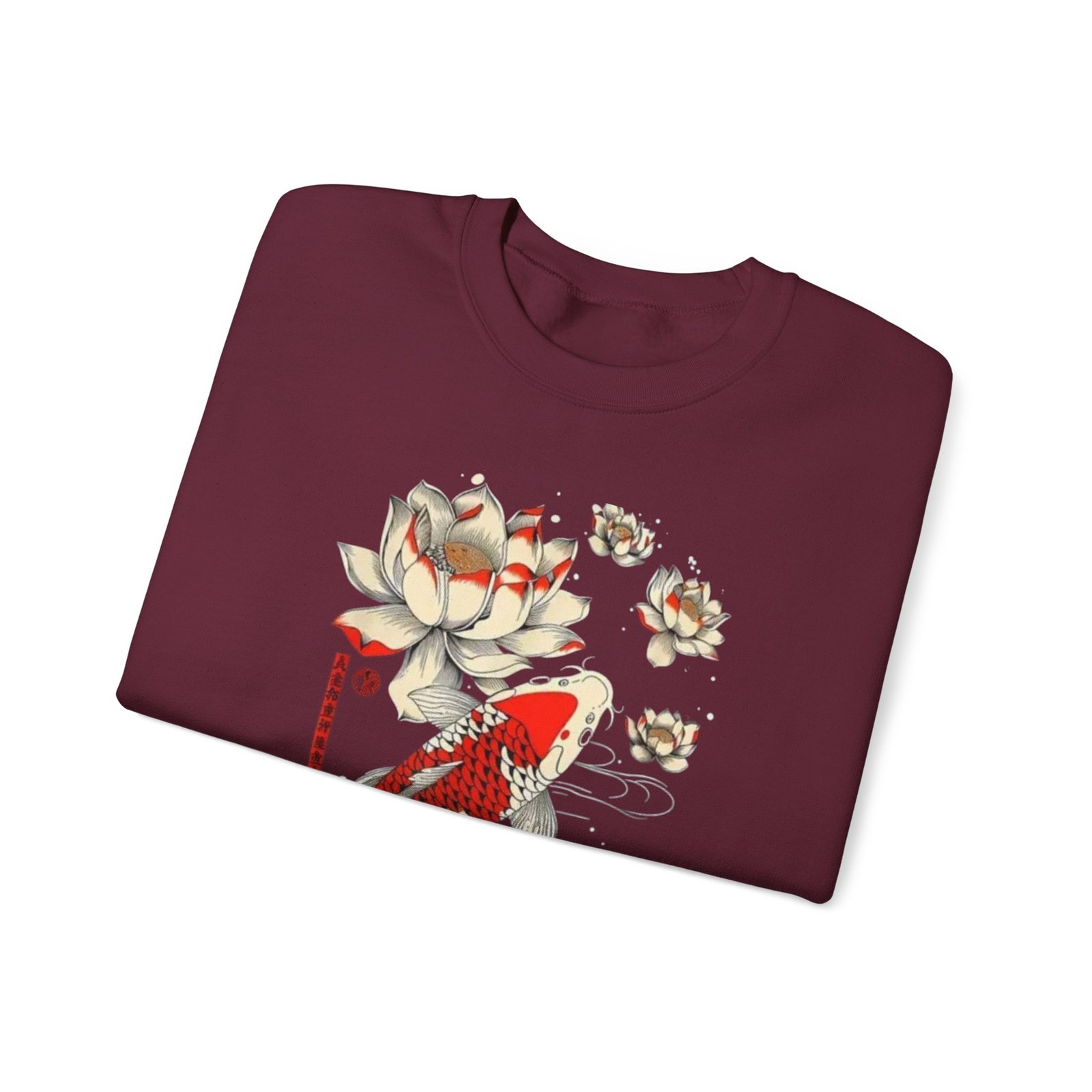 Koi Fish & Lotus Sweatshirt – Cozy Unisex Crewneck for Nature Lovers, Perfect for Casual Wear, Gifts, and Celebrations