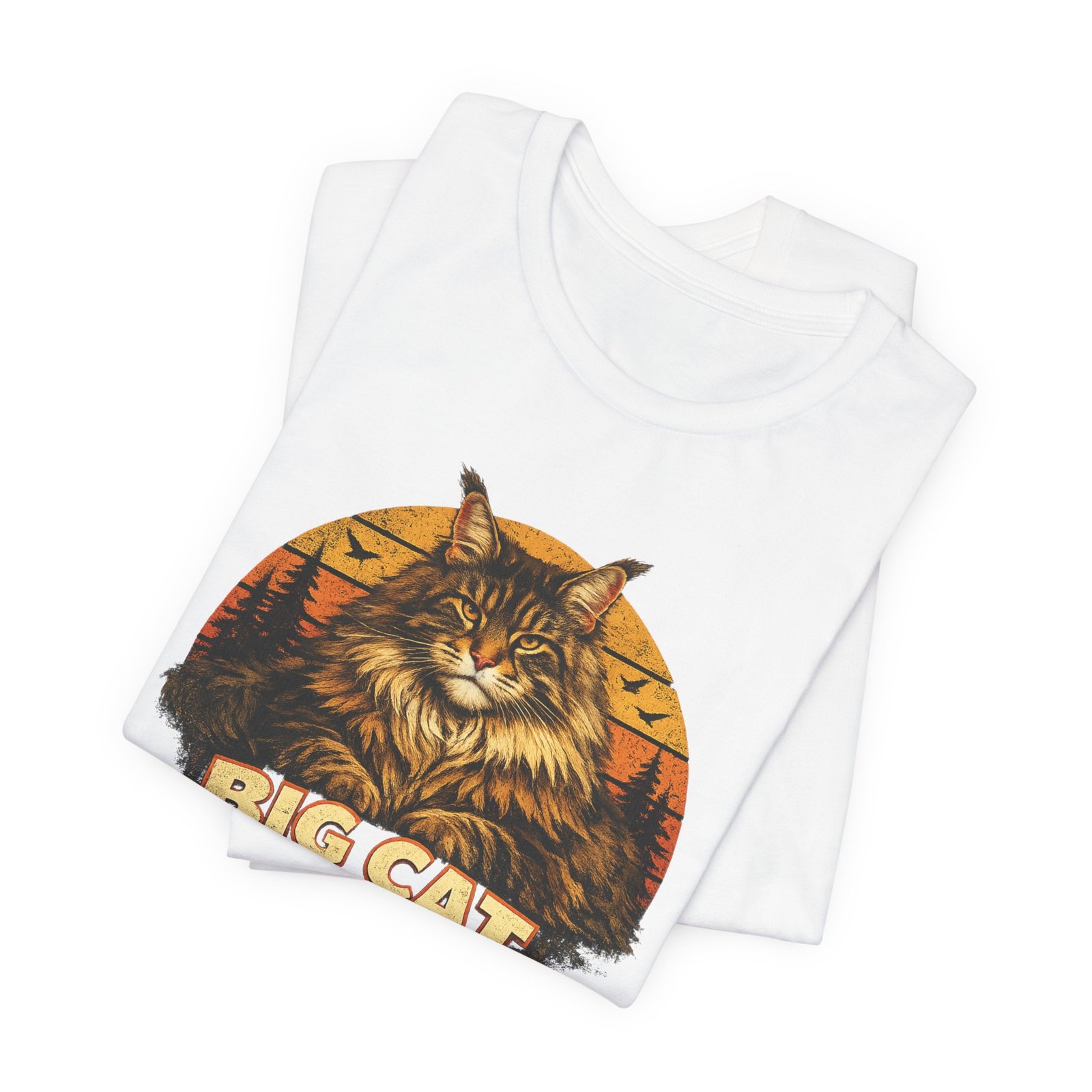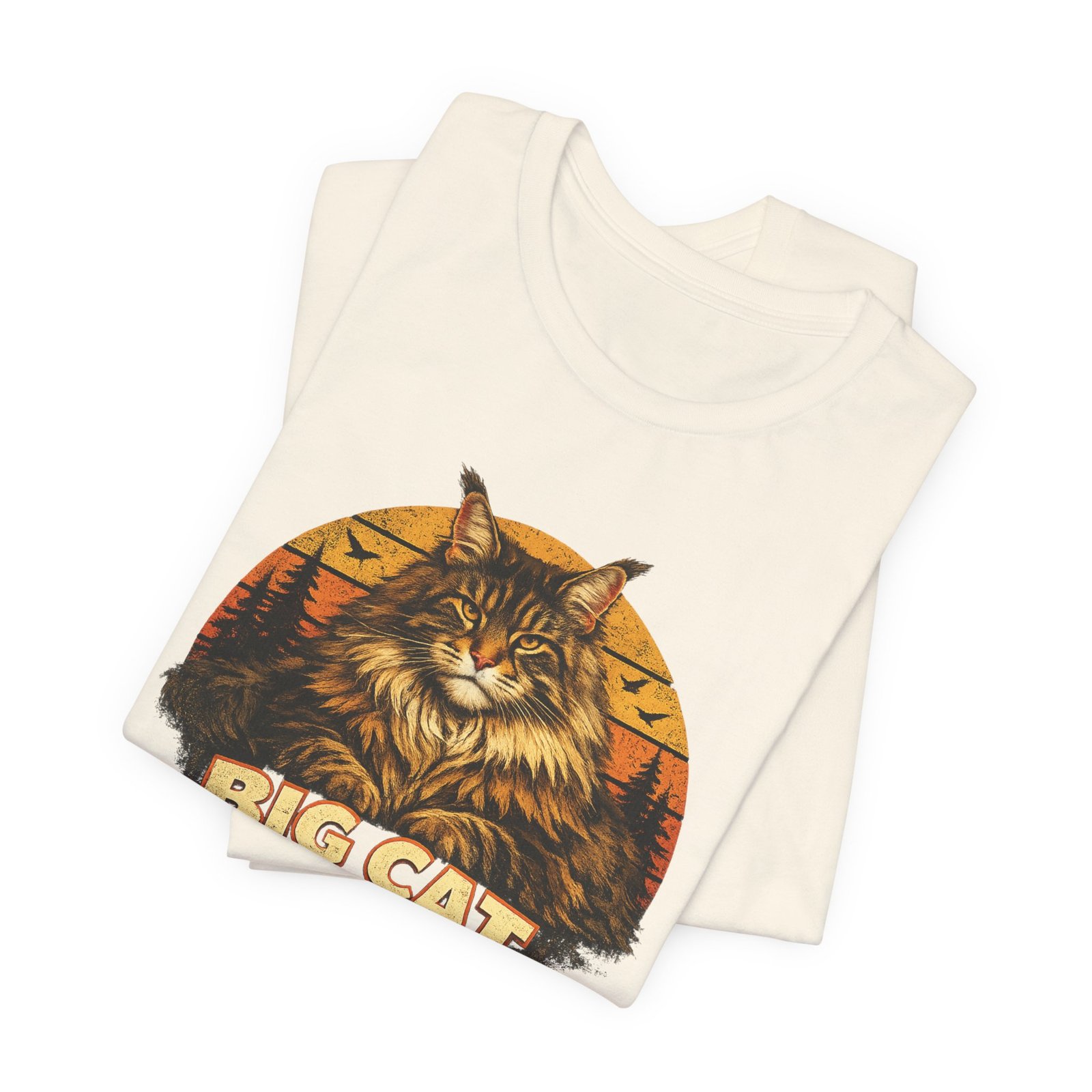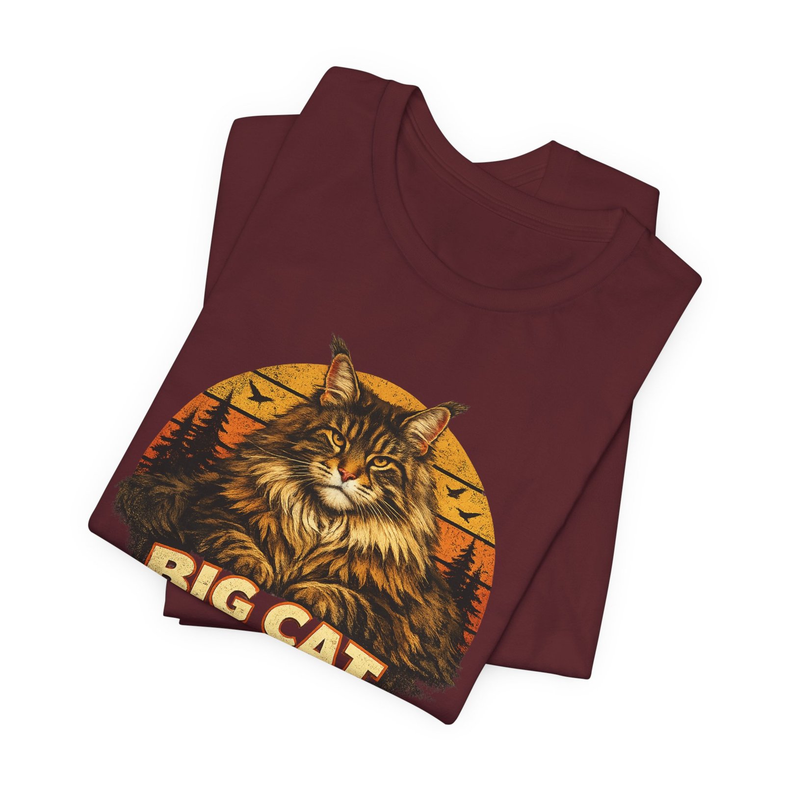 Maine Coon Big Cat Energy T-Shirt | Vintage Lynx Illustration, Retro Sunset Wildlife Tee