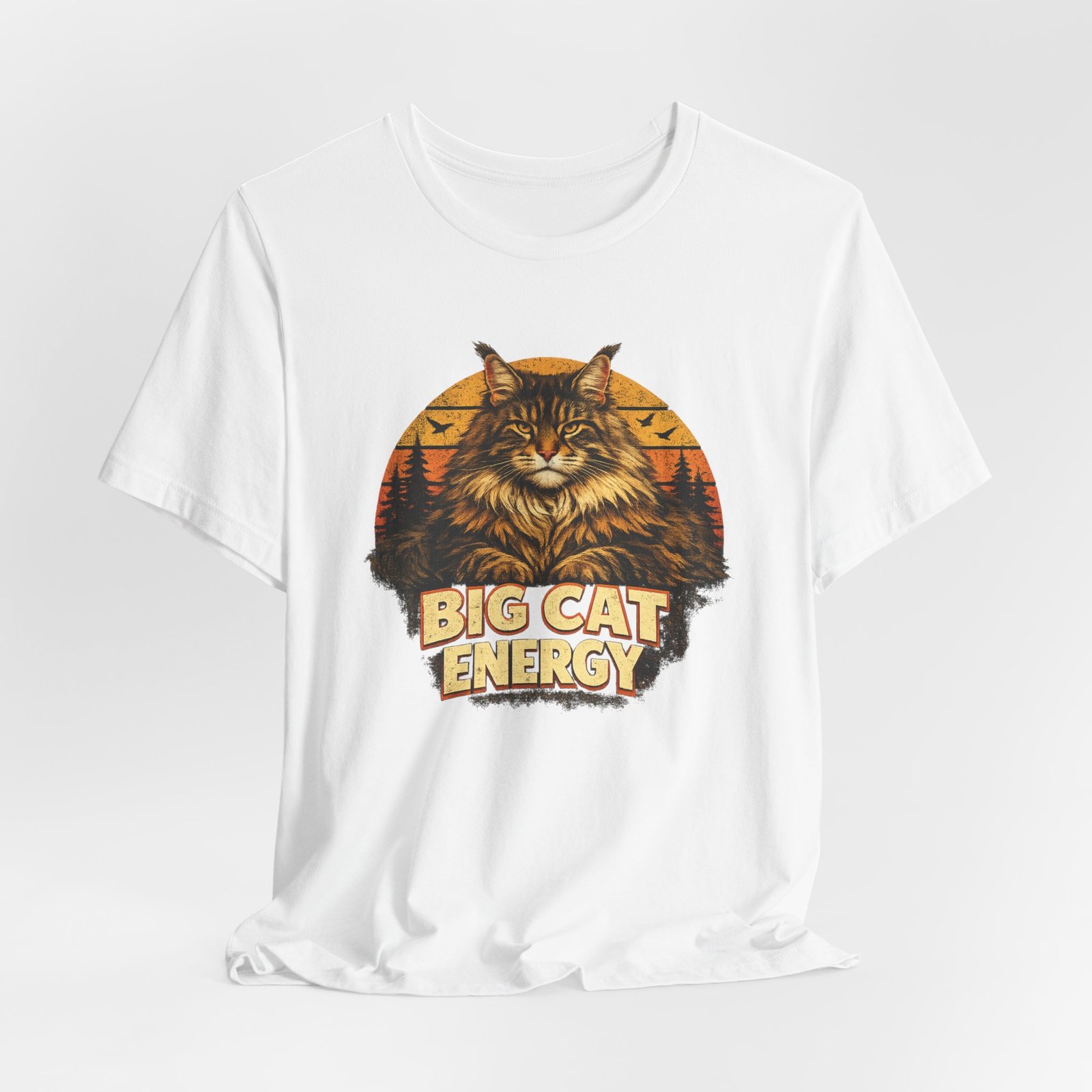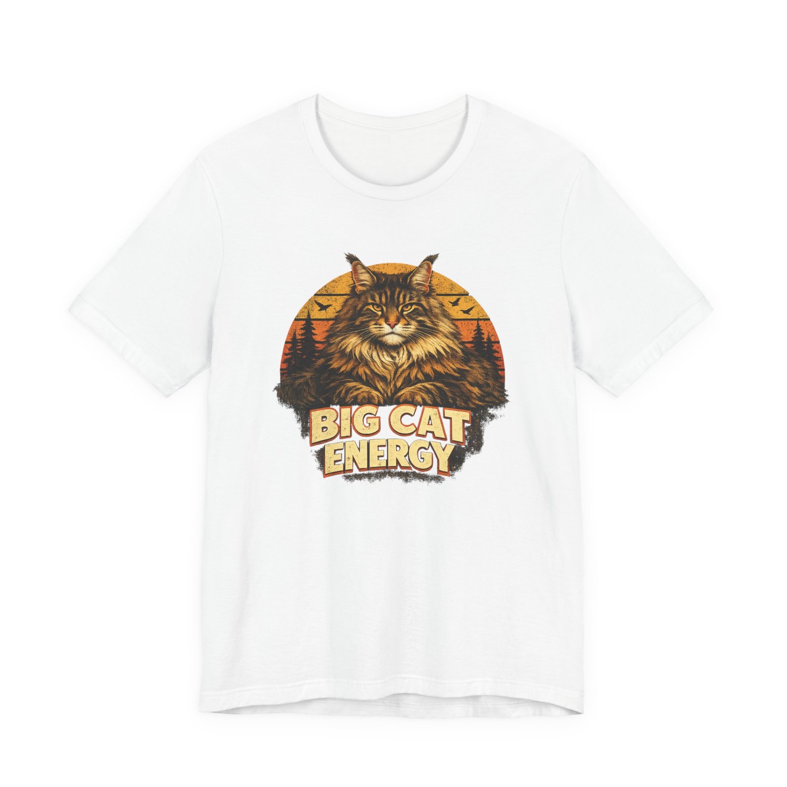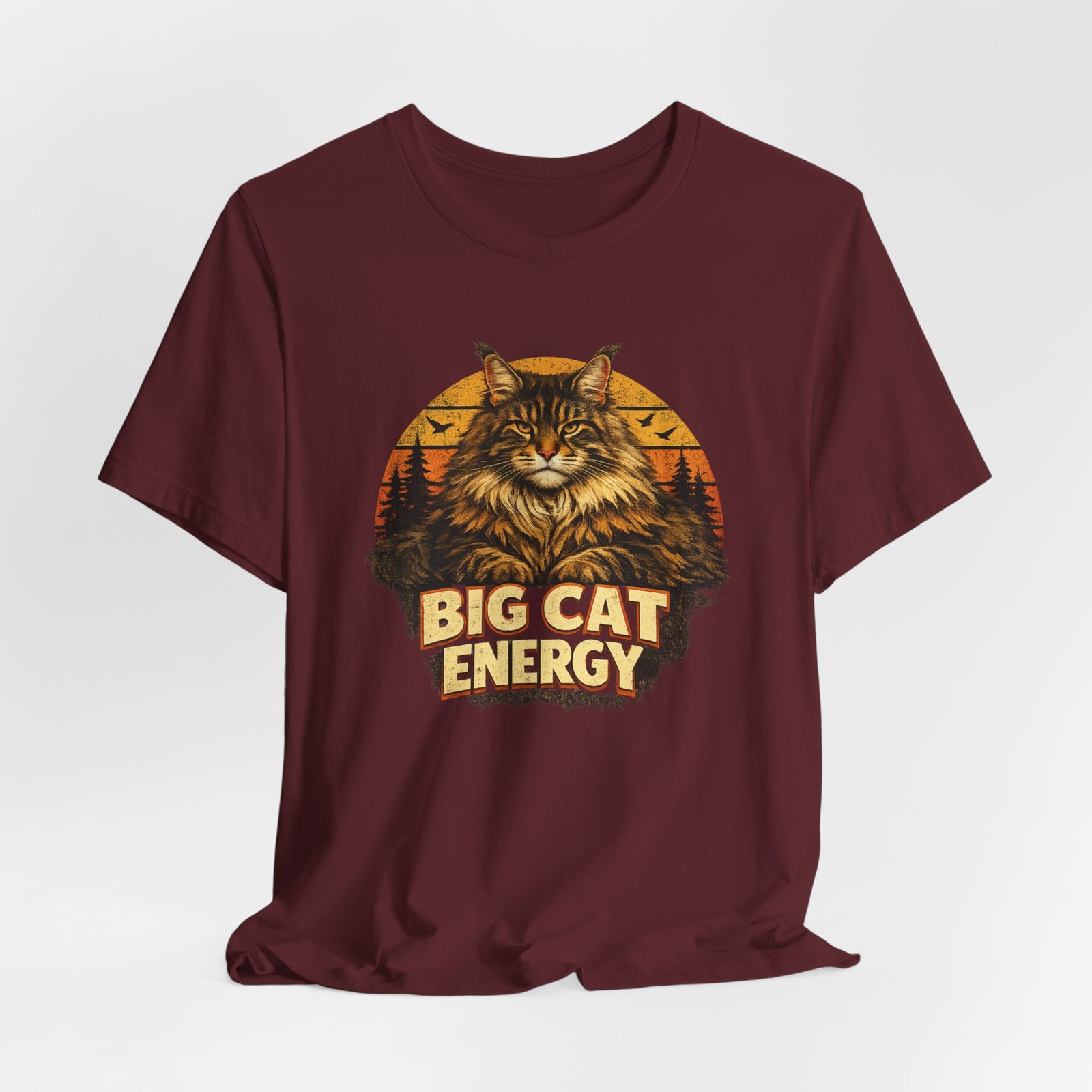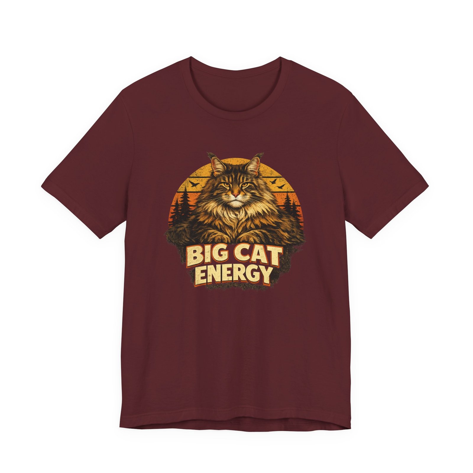 Maine Coon Big Cat Energy T-Shirt | Vintage Lynx Illustration, Retro Sunset Wildlife Tee