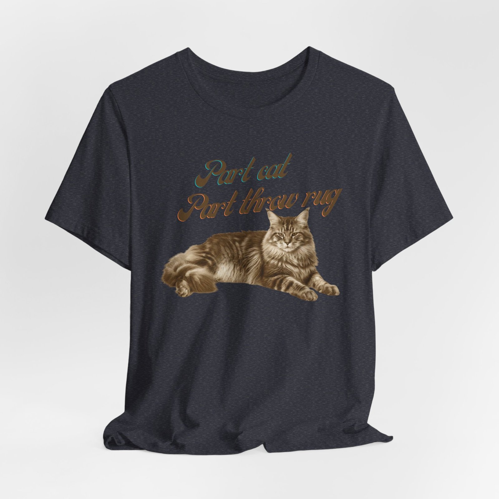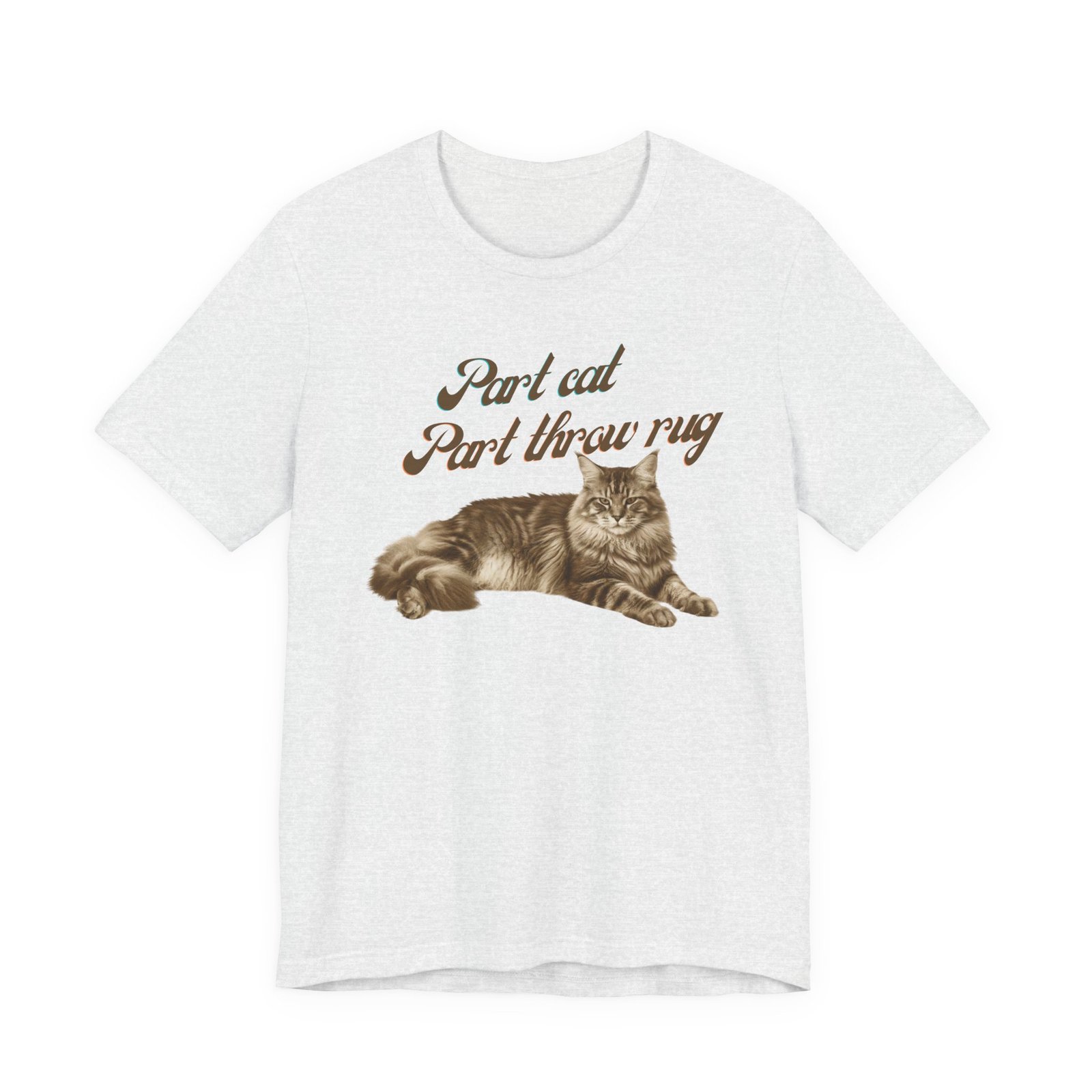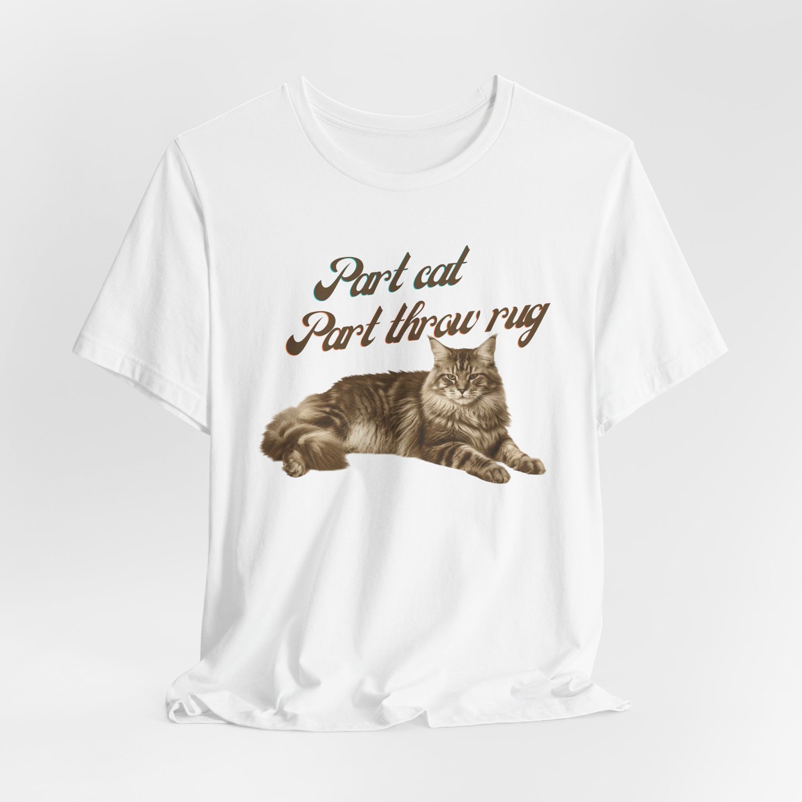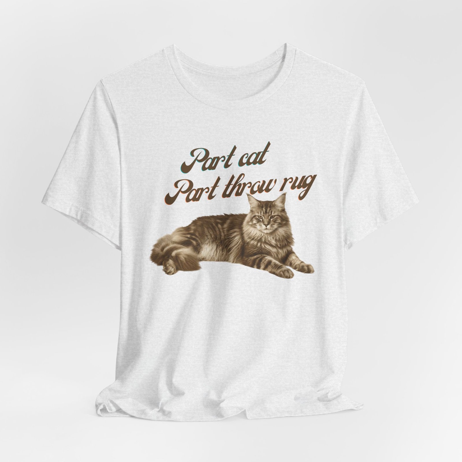 Soft, breathable cotton meets low-key, whimsical charm. This lightweight jersey tee features a vintage-style illustration of a relaxed tabby paired with hand-lettered text that reads like a private joke for cat lovers. It drapes easily for everyday wear — from slow mornings with coffee to afternoons curled up on the couch — and keeps its shape thanks to side seams, ribbed collar, and shoulder tape. Subtle, neutral artwork sits on a clean background so the design feels muted and personal rather than loud. Wear it alone for a casual look or layer under a cardigan when evenings turn cool.
