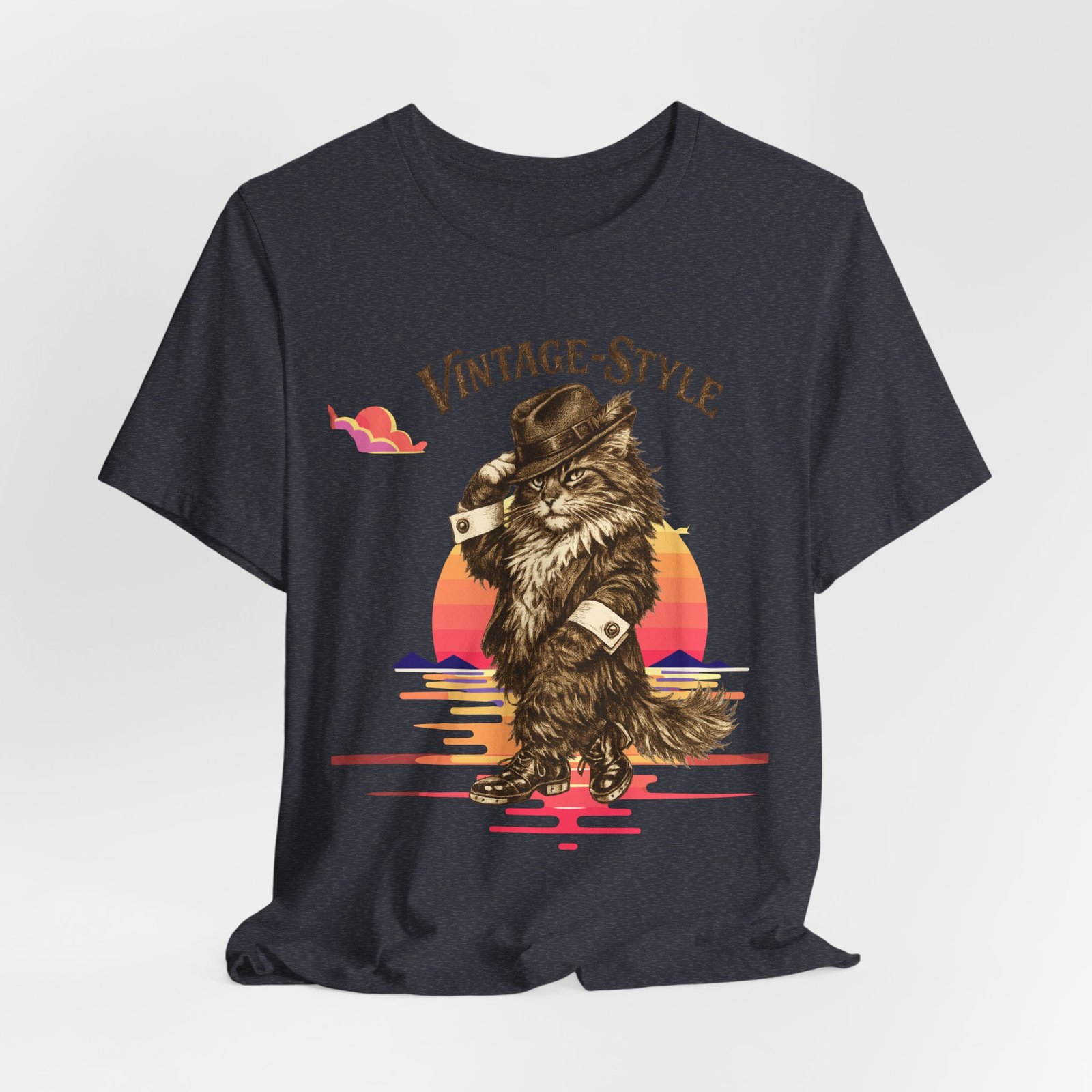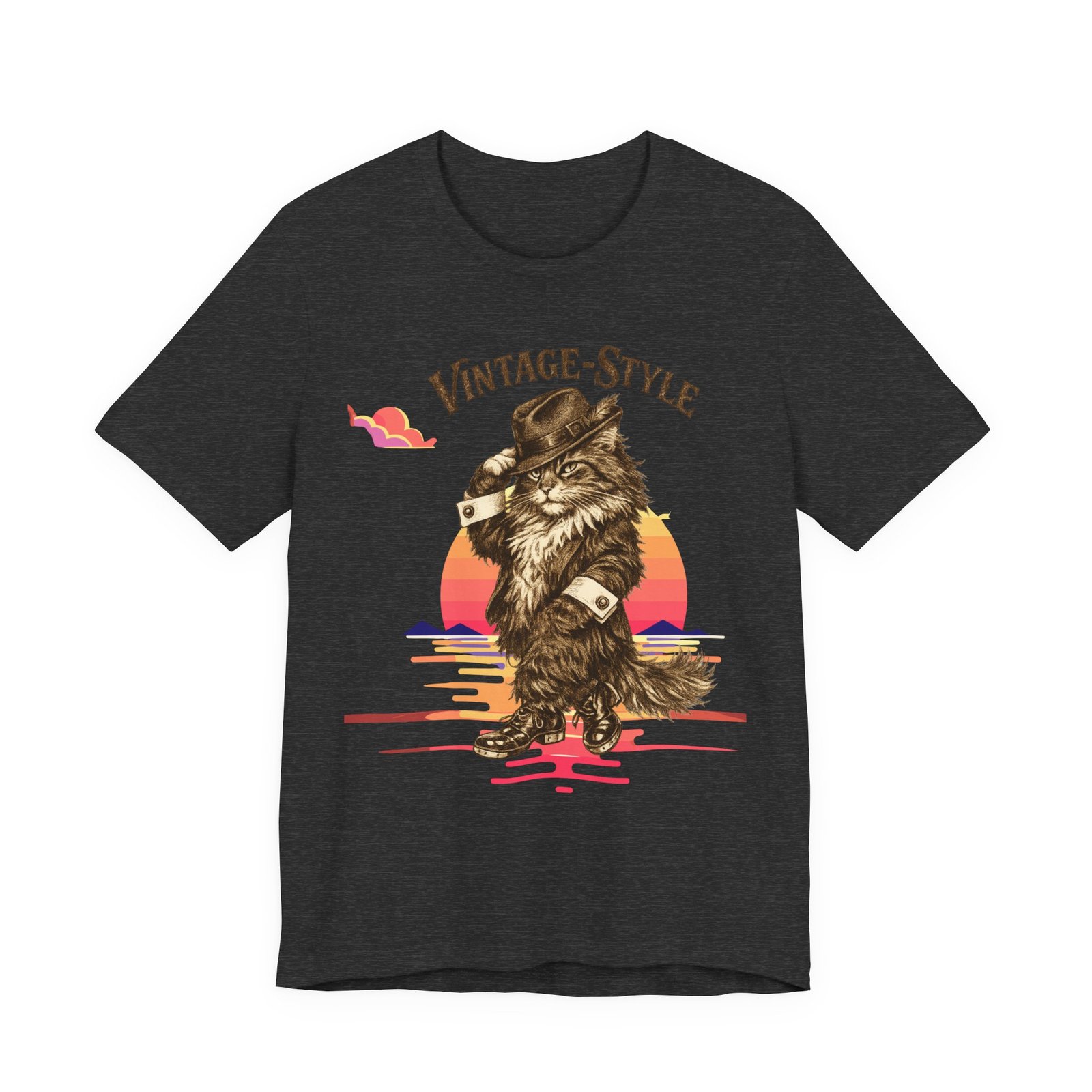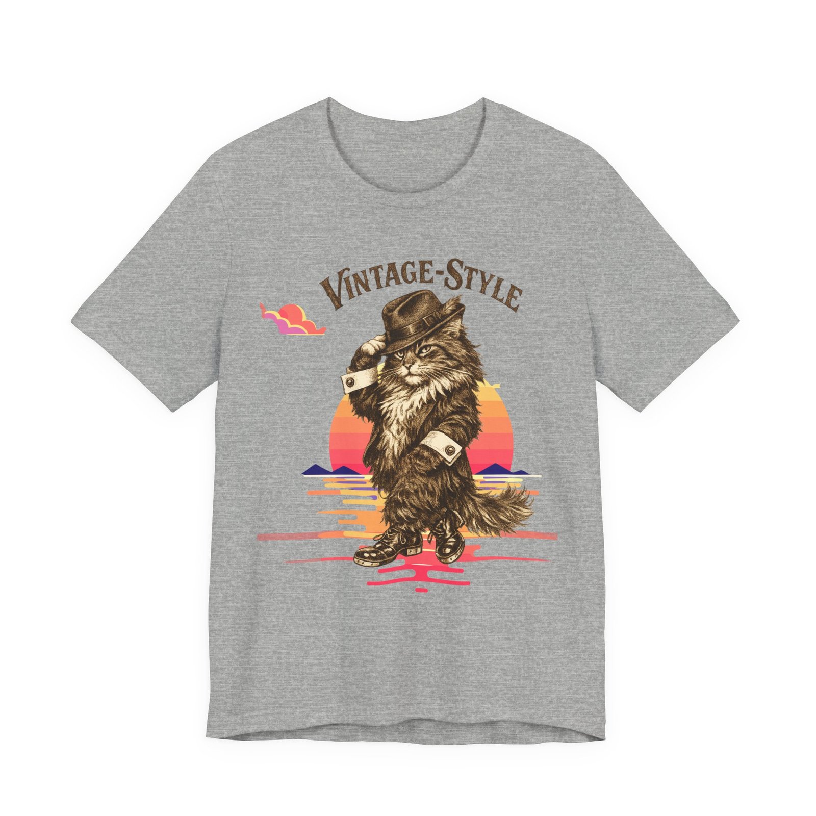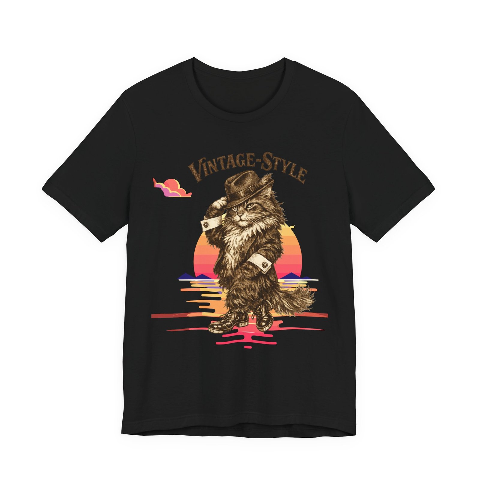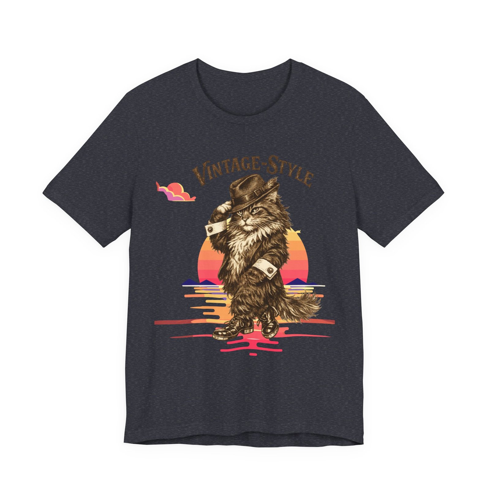 This lightweight jersey tee brings together vintage charm and everyday wearability. A hand-drawn, retro-style wolf in a fedora strolls across a warm sunset palette — it feels like a summer evening road trip stopped for a slow, smiling moment. The soft, breathable Airlume cotton keeps you comfortable all day, while the retail crew neckline and side seams give a neat, structured silhouette that layers easily under a jacket or wears alone. Subtle, high-detail printing preserves the illustration’s texture and color depth, so the design reads like an old poster with modern clarity. Wear it to evoke a laid-back, nostalgic mood that fits casual hangouts, festival evenings, or long drives down coastal highways.