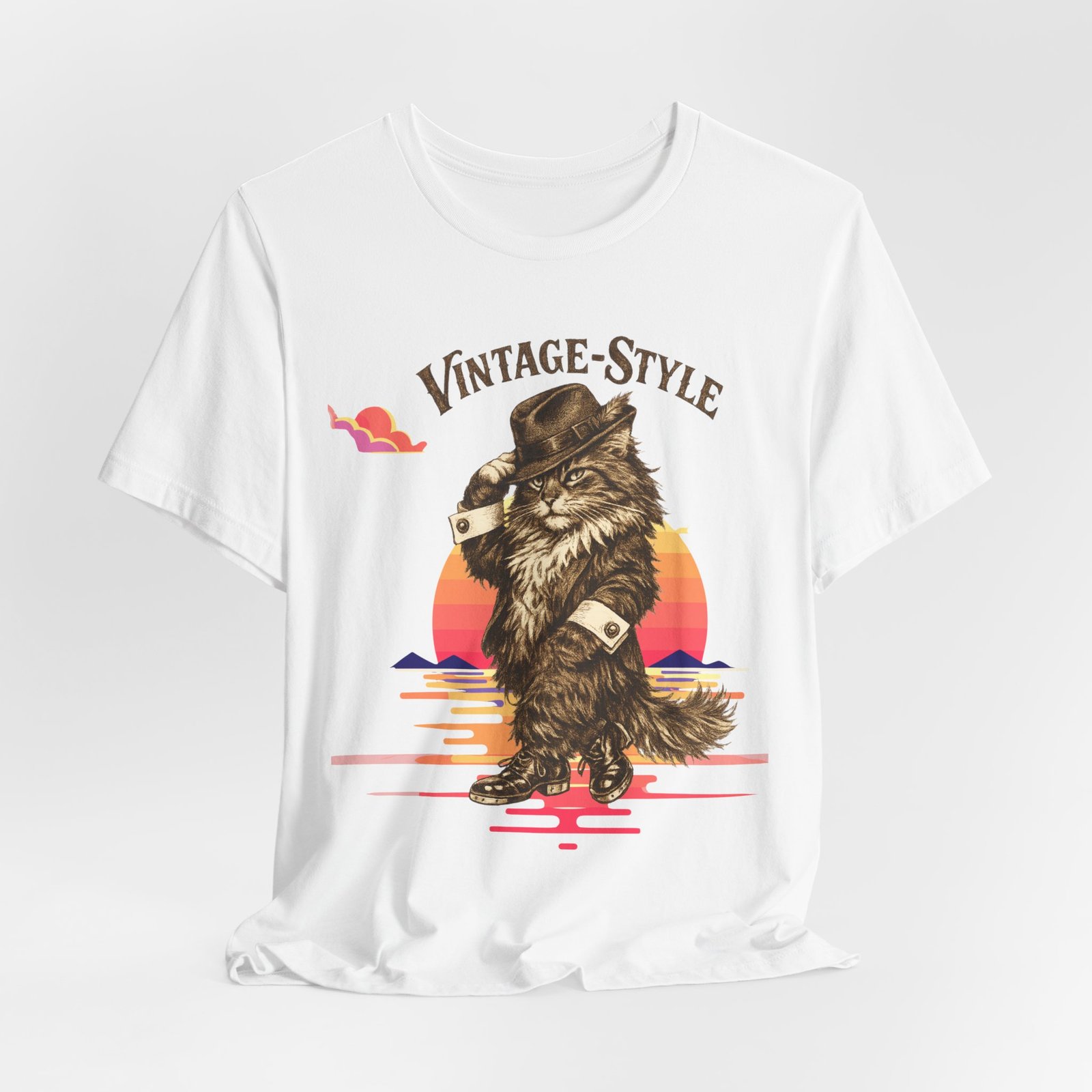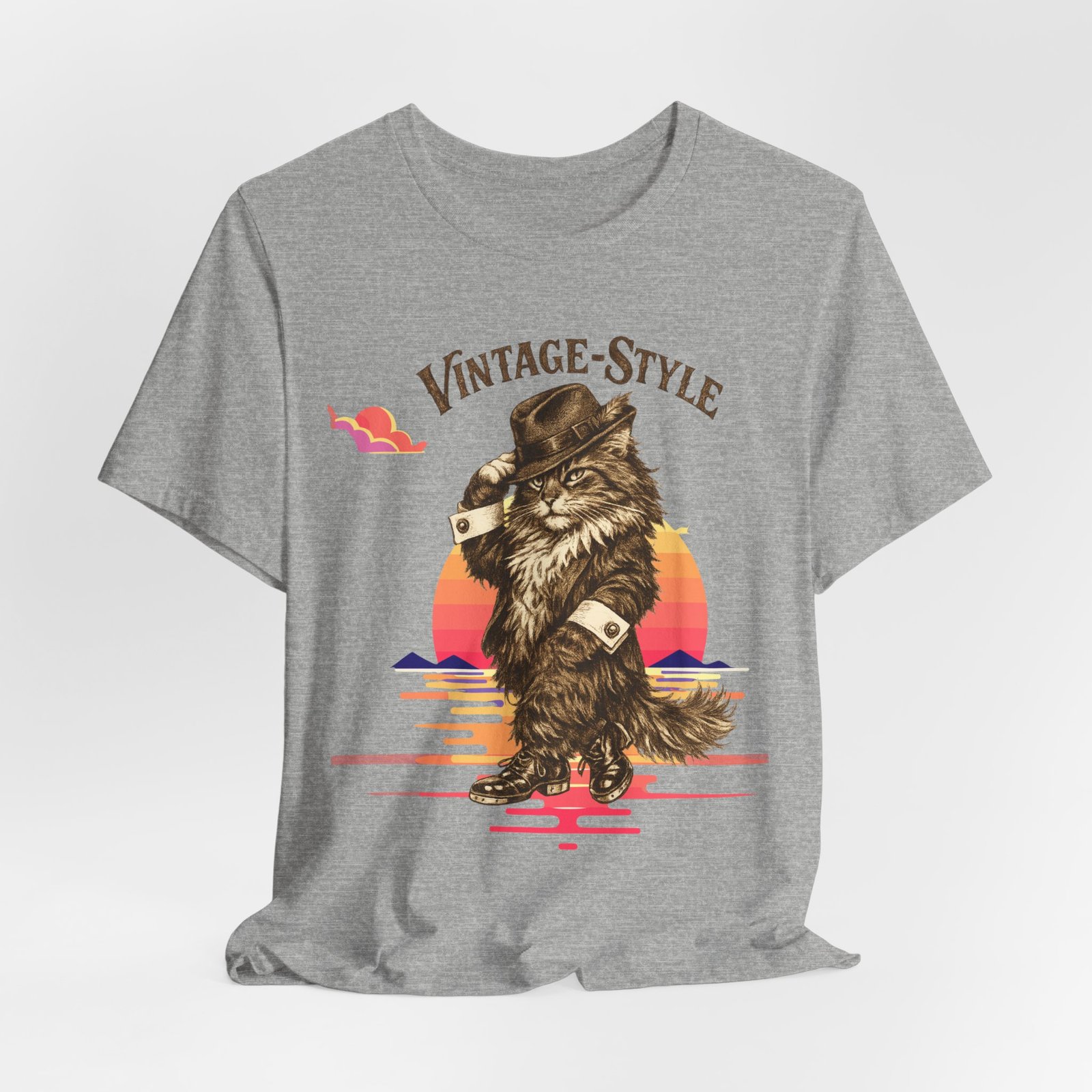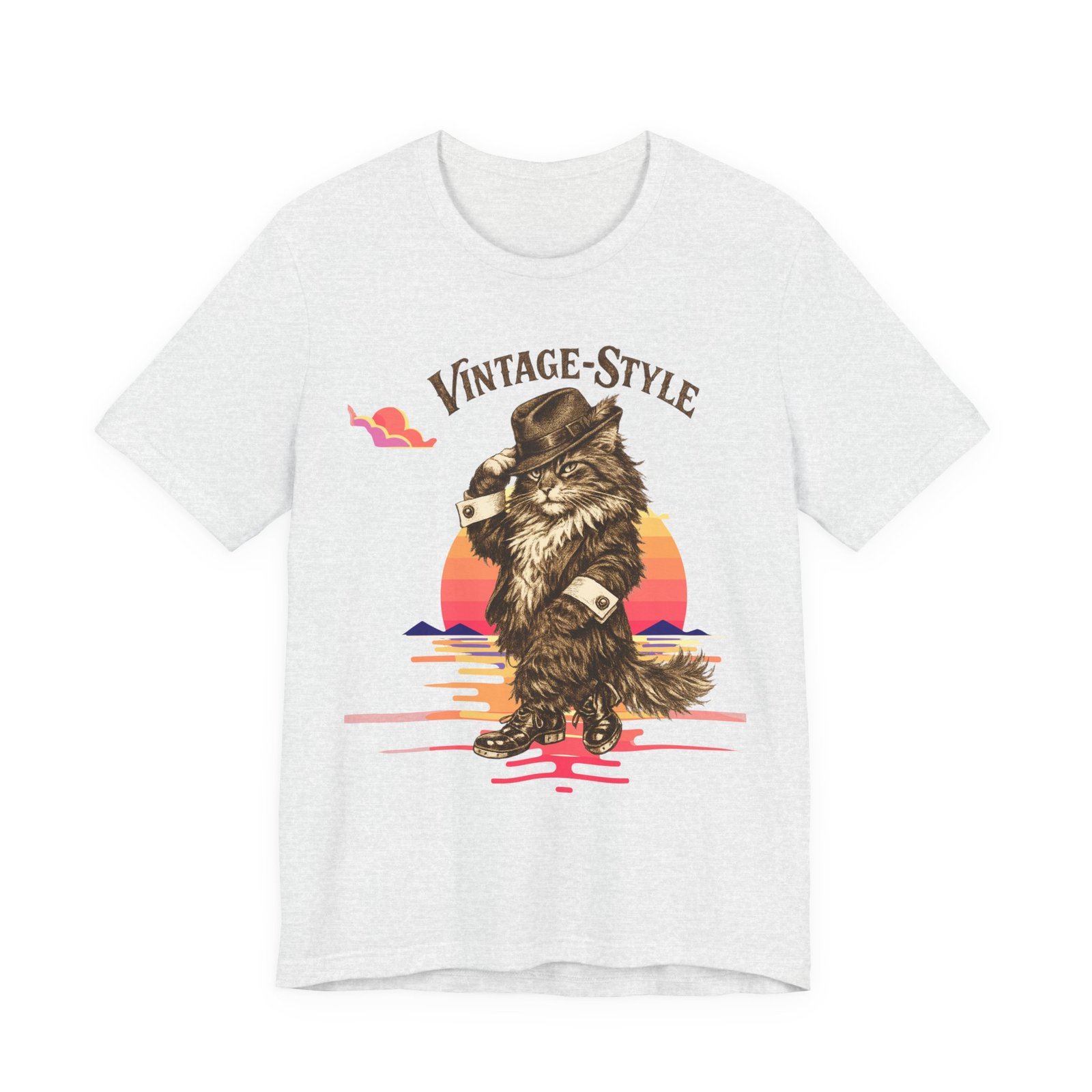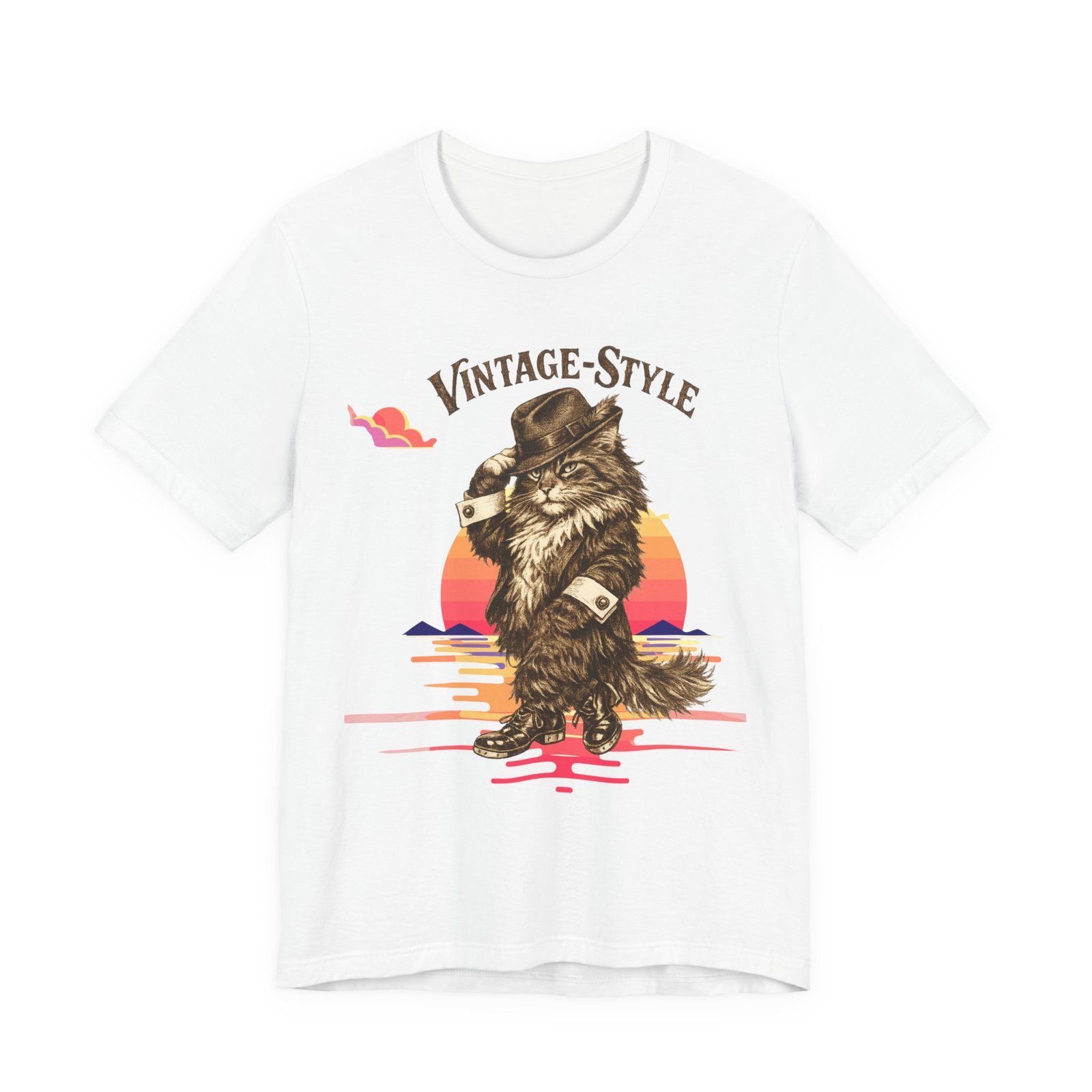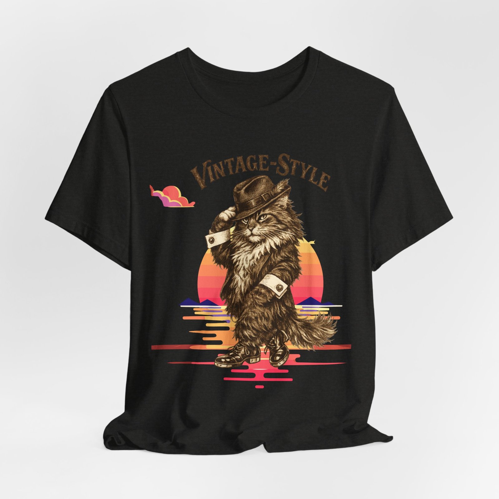 This lightweight jersey tee brings together vintage charm and everyday wearability. A hand-drawn, retro-style wolf in a fedora strolls across a warm sunset palette — it feels like a summer evening road trip stopped for a slow, smiling moment. The soft, breathable Airlume cotton keeps you comfortable all day, while the retail crew neckline and side seams give a neat, structured silhouette that layers easily under a jacket or wears alone. Subtle, high-detail printing preserves the illustration’s texture and color depth, so the design reads like an old poster with modern clarity. Wear it to evoke a laid-back, nostalgic mood that fits casual hangouts, festival evenings, or long drives down coastal highways.