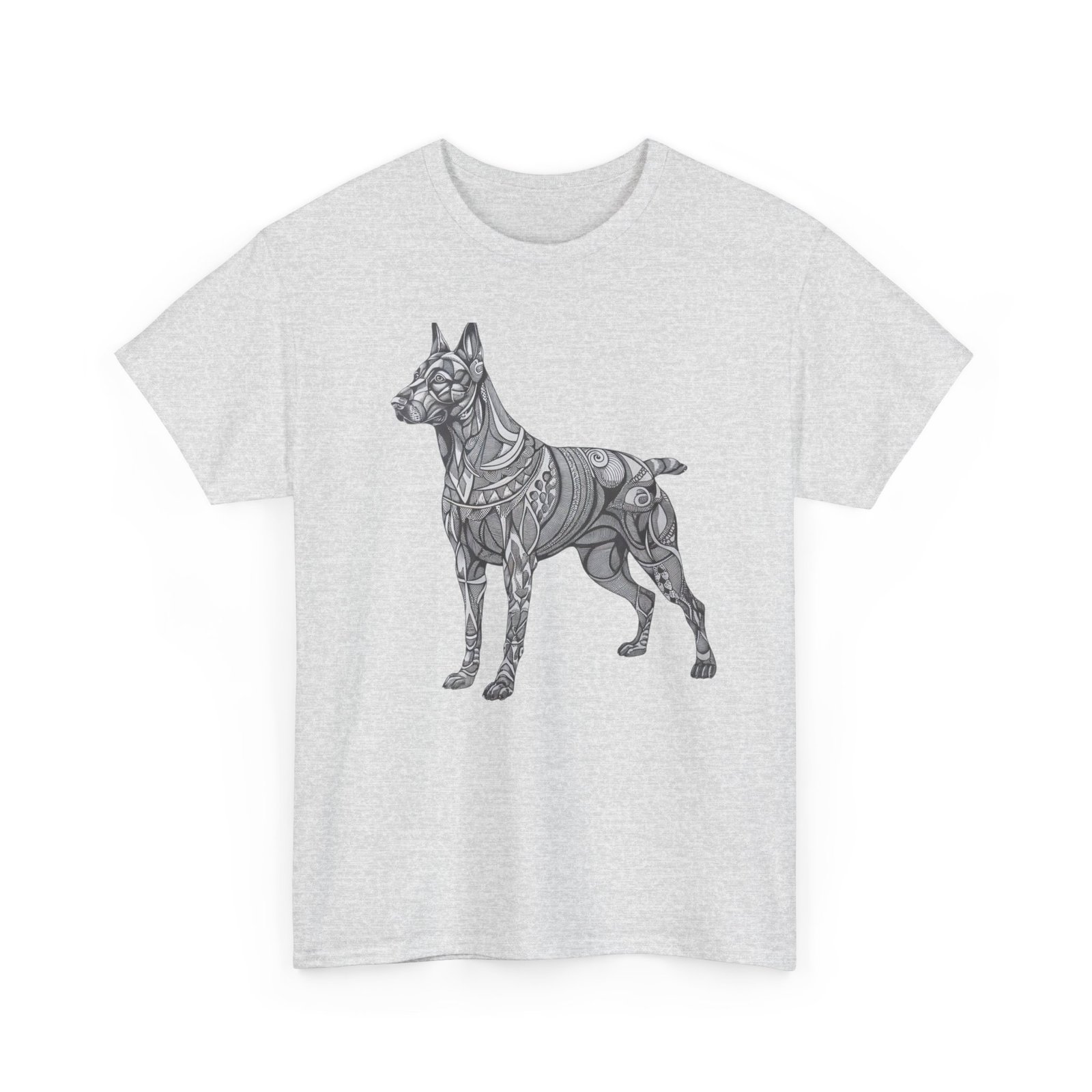 This Malinois dog tribal style tee is perfect for dog lovers who appreciate unique designs. It exudes a cool and edgy vibe, fitting seamlessly into a casual wardrobe for everyday wear. Ideal for those who celebrate Dog Appreciation Day or love showcasing their love for dogs.