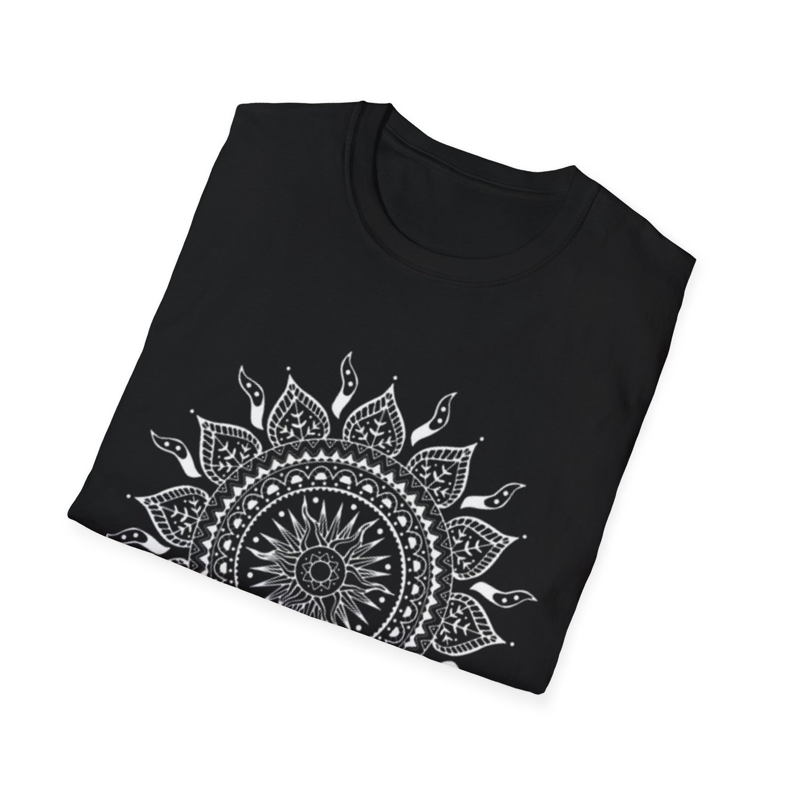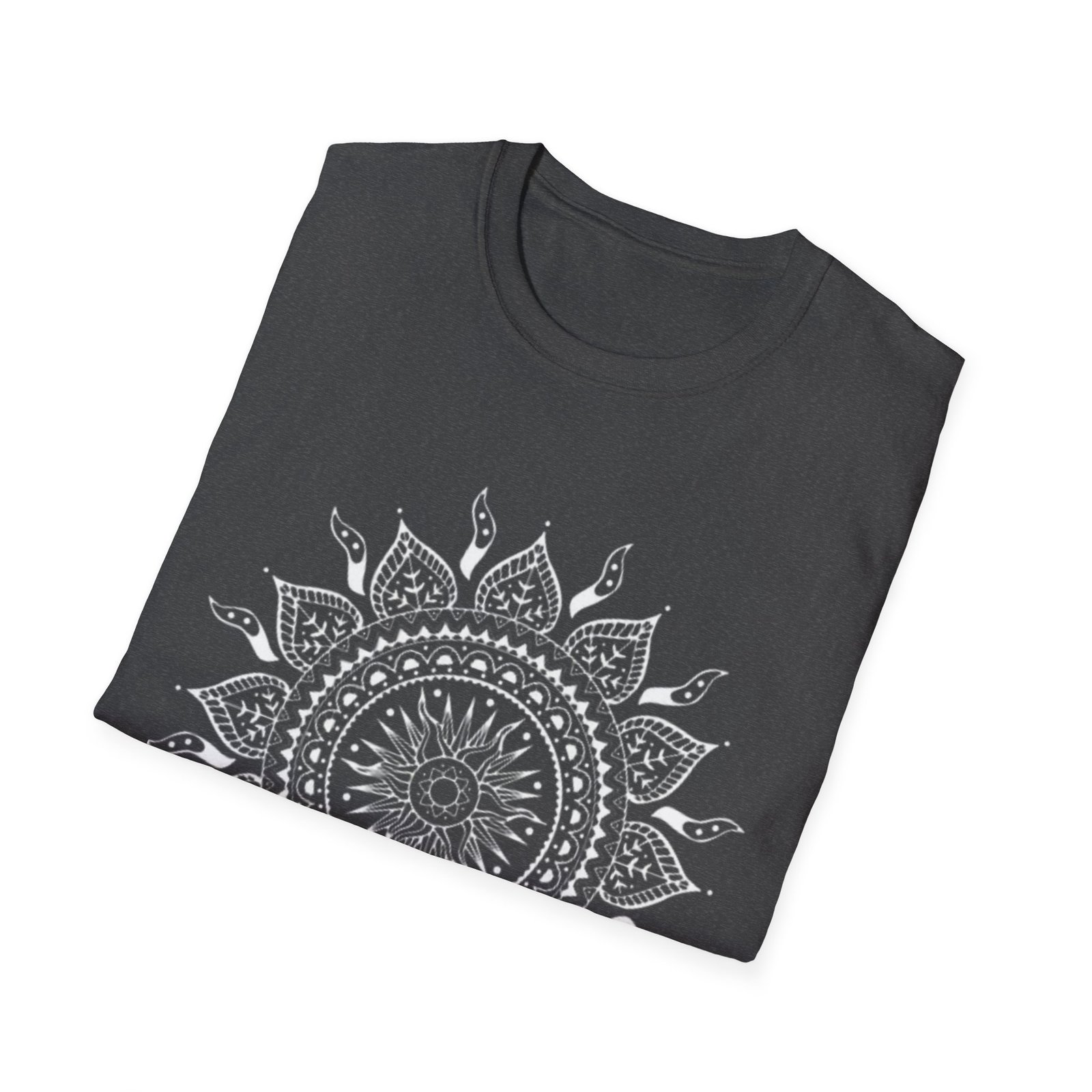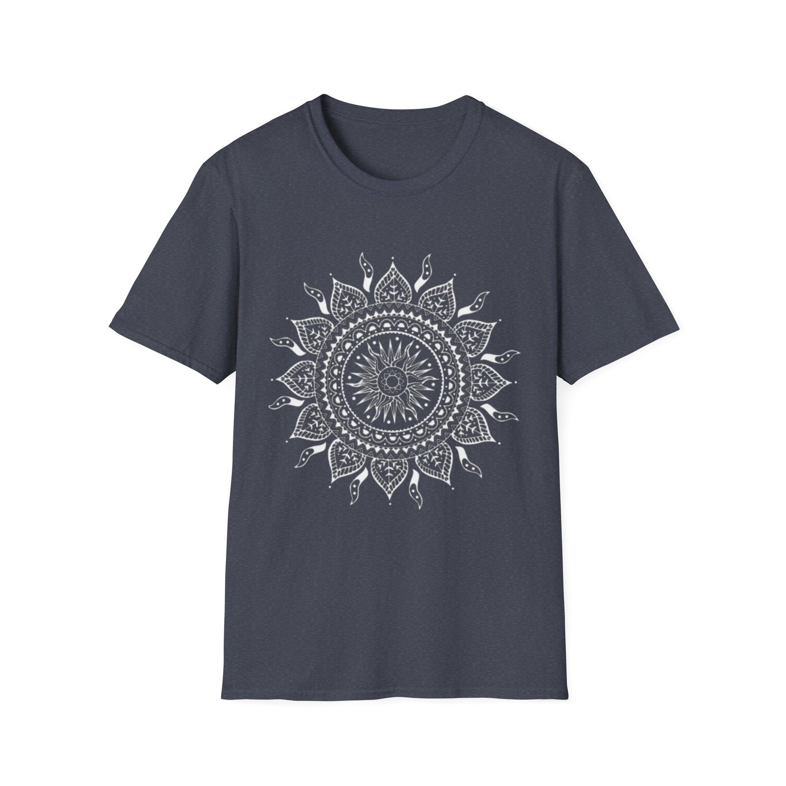 Lightweight, breathable, and softly structured — this tee wears like a quiet companion. A finely detailed mandala rests at the center, drawn in delicate lines that catch the eye without shouting. It settles easily into everyday life: layered under a cardigan for cool mornings, worn solo for sunlit walks, or paired with denim at a weekend market. The crew neckline and classic fit keep the silhouette simple so the artwork can do the talking. For people who favor calm, intentional style, this shirt reads as thoughtful and lived-in from the first wear.